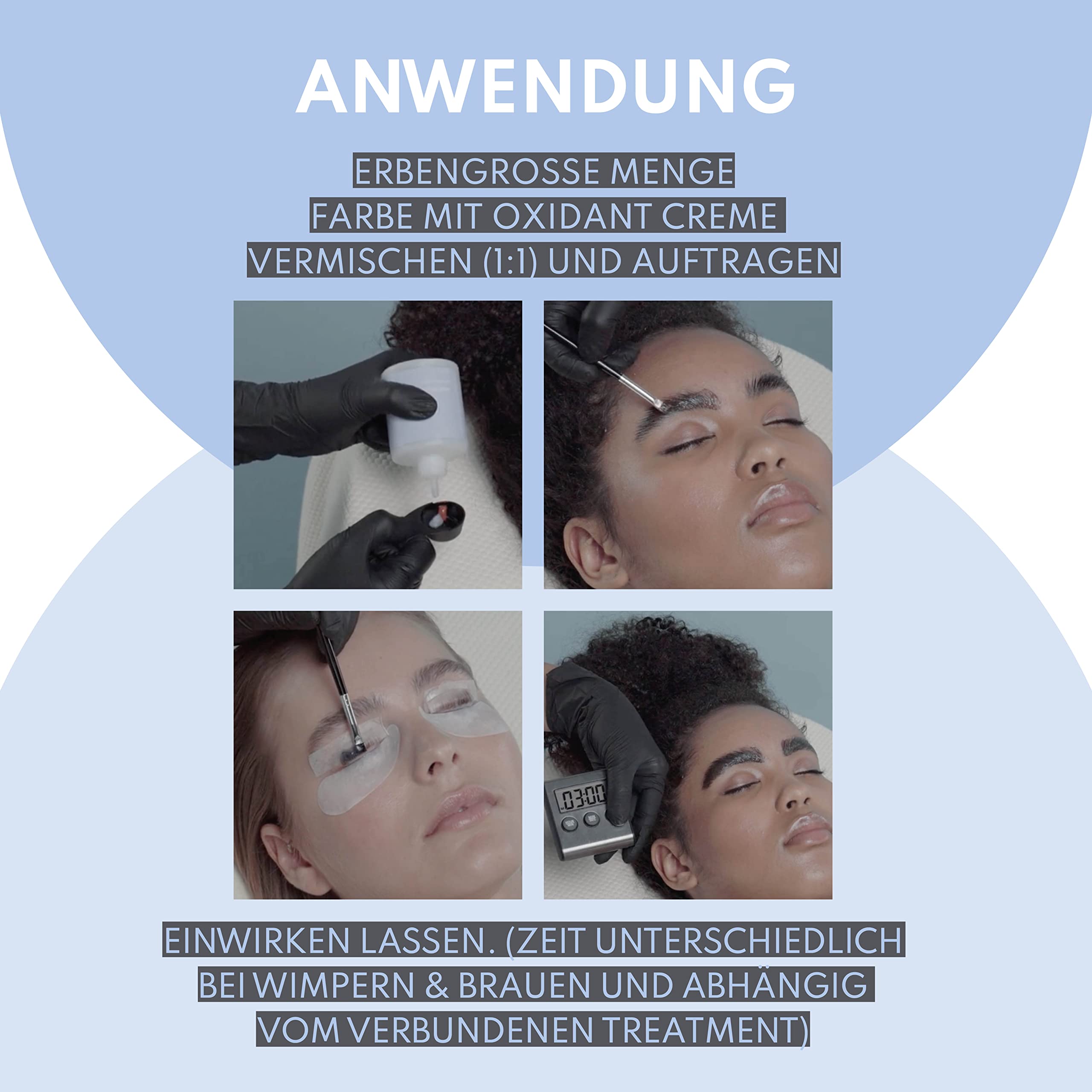 • Langanhaltend: Durch unsere wirkungsstarke Oxidant Creme lassen sich Wimpern und Augenbrauen dauerhaft färben. Das Ergebnis ist eine wisch- und wasserfeste Farbauffrischung von 6 - 8 Wochen
