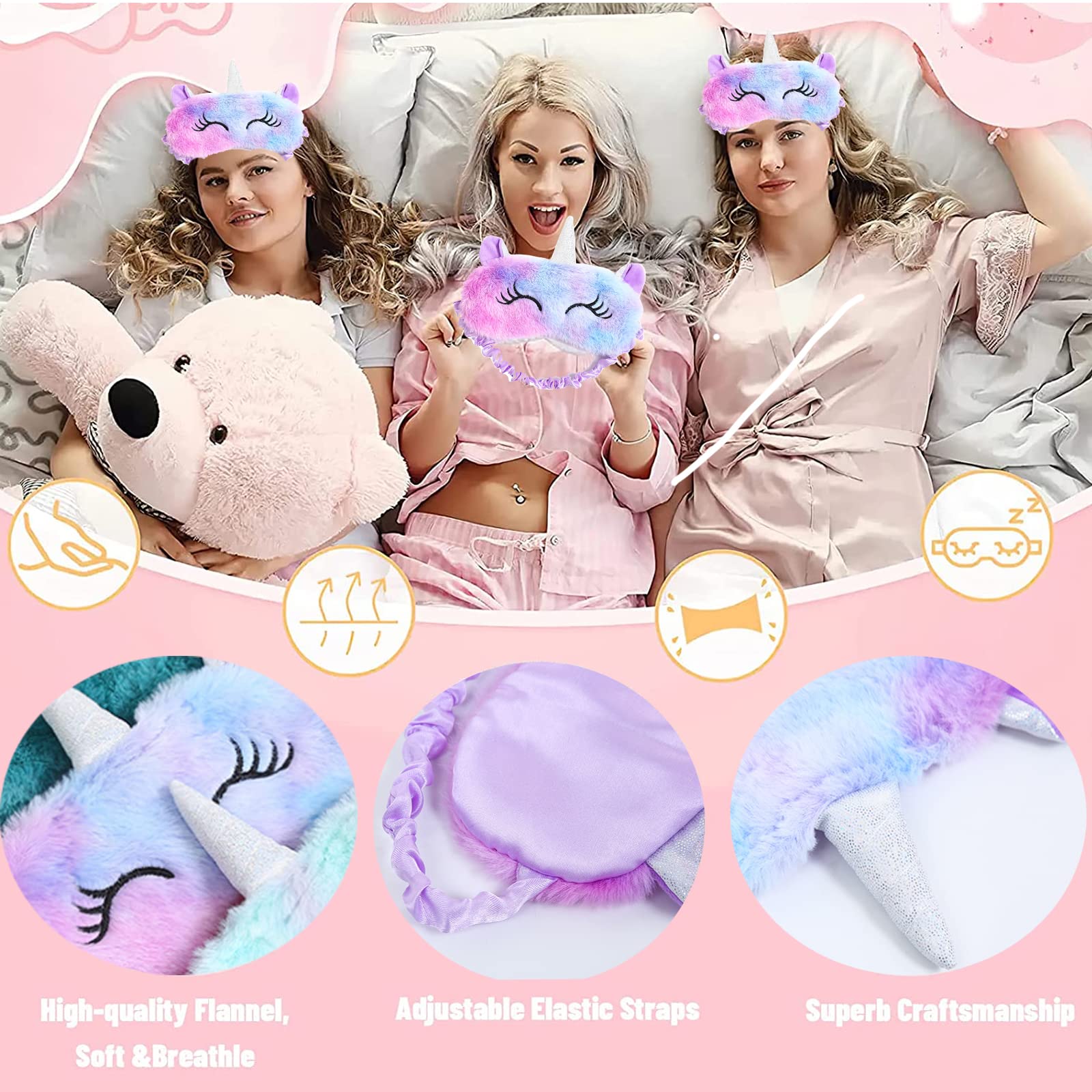 Augenmaske zum Schlafen Annimal Eye Mask Plüsch Cartoon Einhorn für erwachsene Kinder, 3D Süsse Augenmaske Einhorn Breathable Eyeshade Ideal für Reisen Nickerchen … (lila)