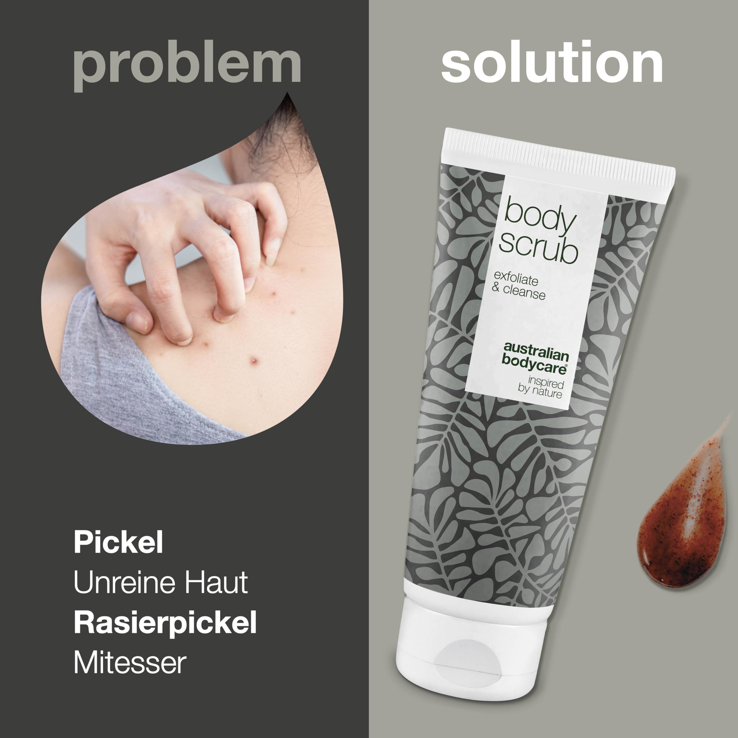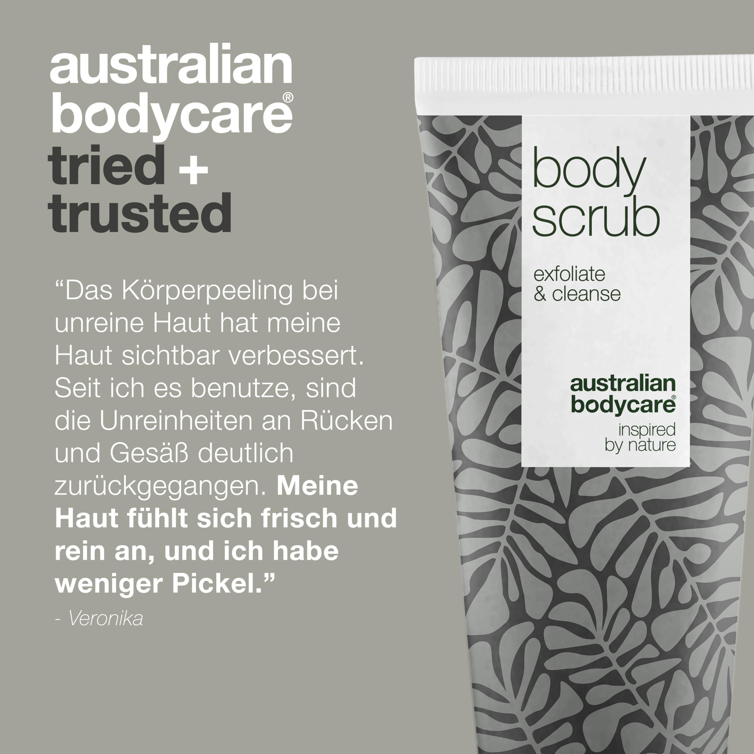 Australian Bodycare Body Scrub 200ml bei Pickeln an Rücken & Körper, Unreiner Haut, Eingewachsenen Haaren, Reibeisenhaut, erdbeerbeine | 100% Natürliches Teebaumöl | 100% Vegan