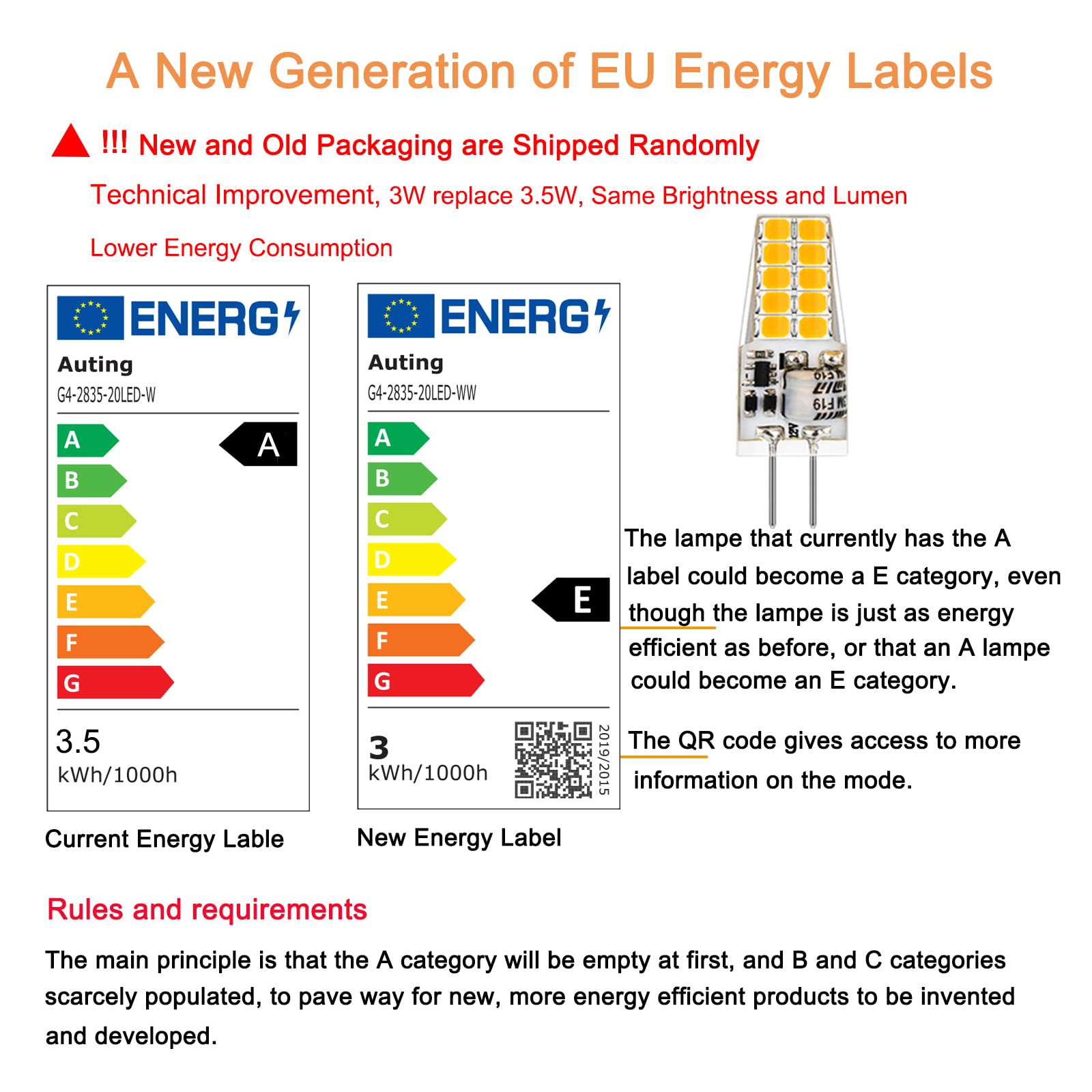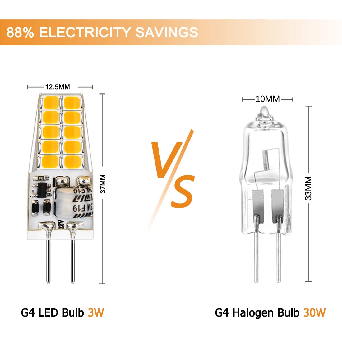 Auting LED G4 Lampen,3W G4 LED Birnen 3000K Warmweiss 300lm, Ersatz für 30W Halogenlampen,Kein Flackern Nicht Dimmbar 360° Lichtwinkel,12V AC/DC,10er Pack