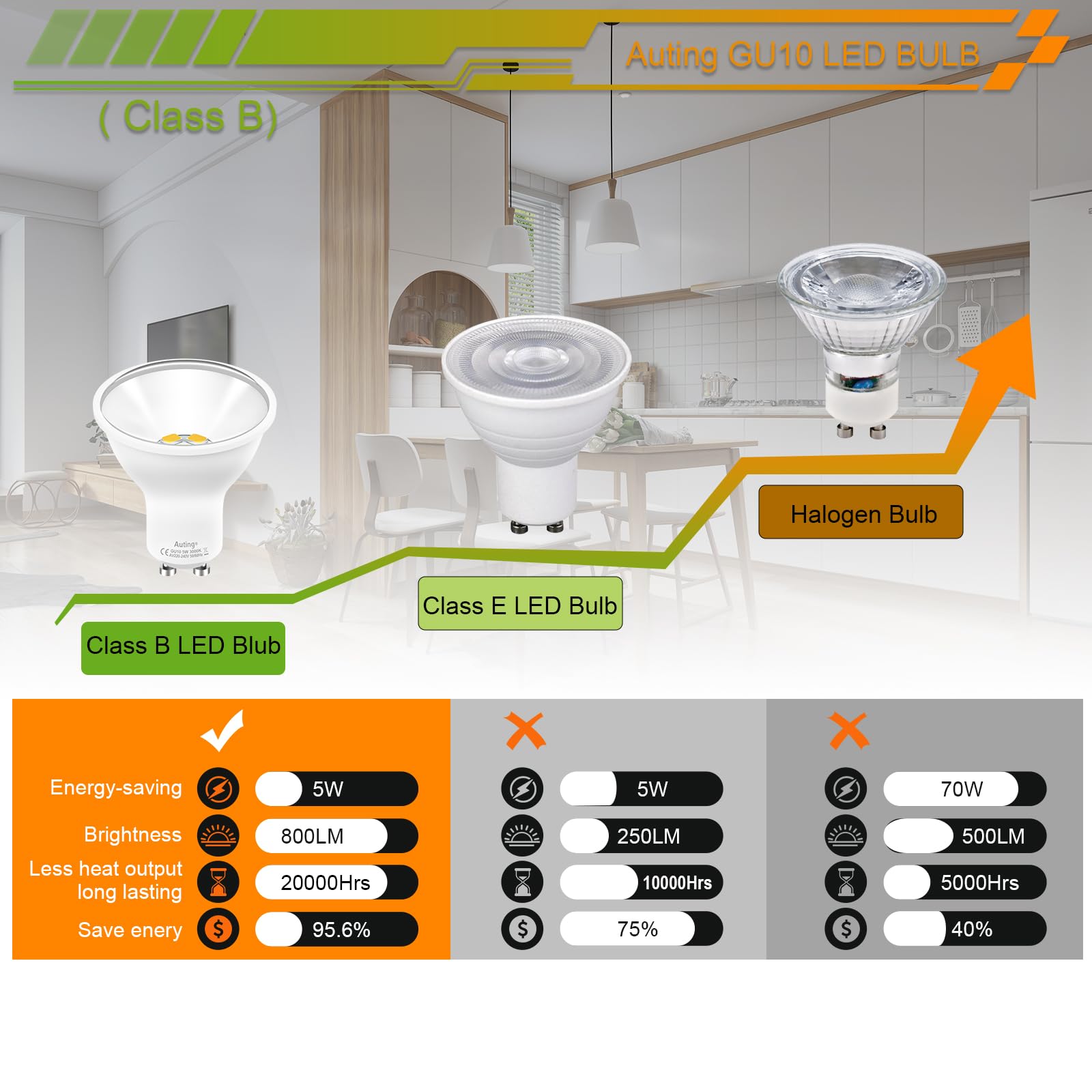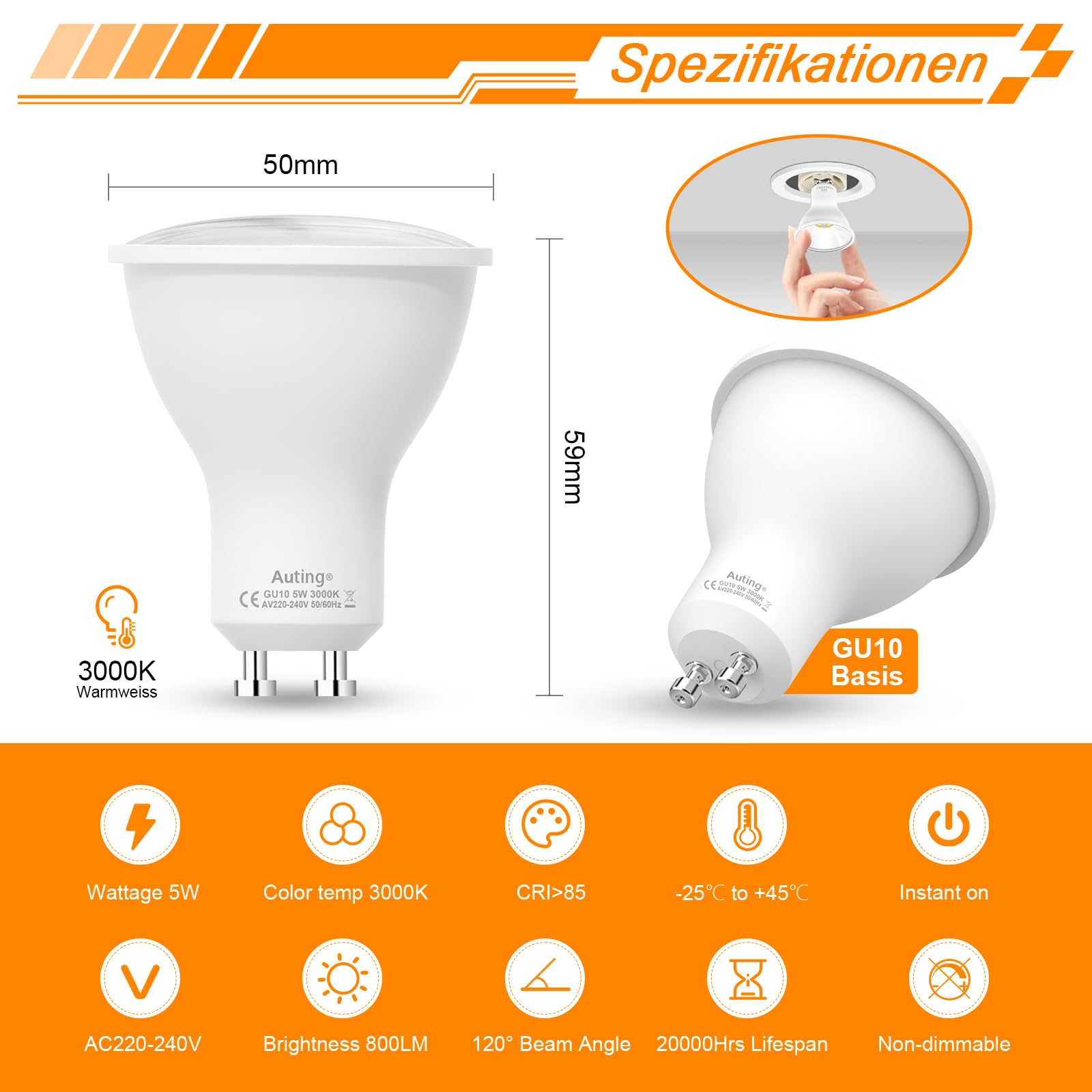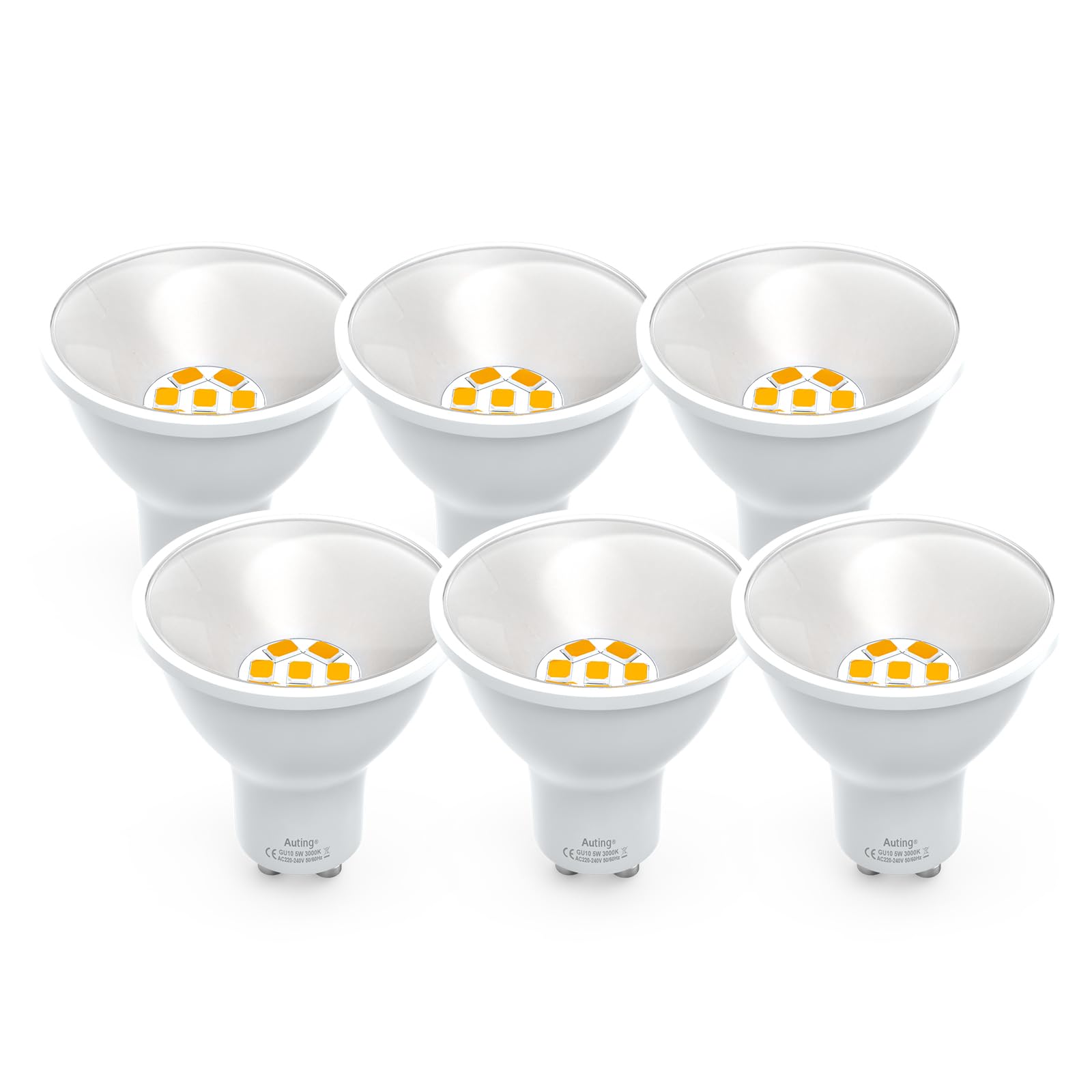 Auting gu10 LED Warmweiss 800 Lumen, 6-er Pack 5W GU10 led, Ersetzen 70W-80W Halogenlampen, 3000K Abstrahlwinkel 120° Leuchtmittel Reflektor led Spots, Nicht Dimmbar