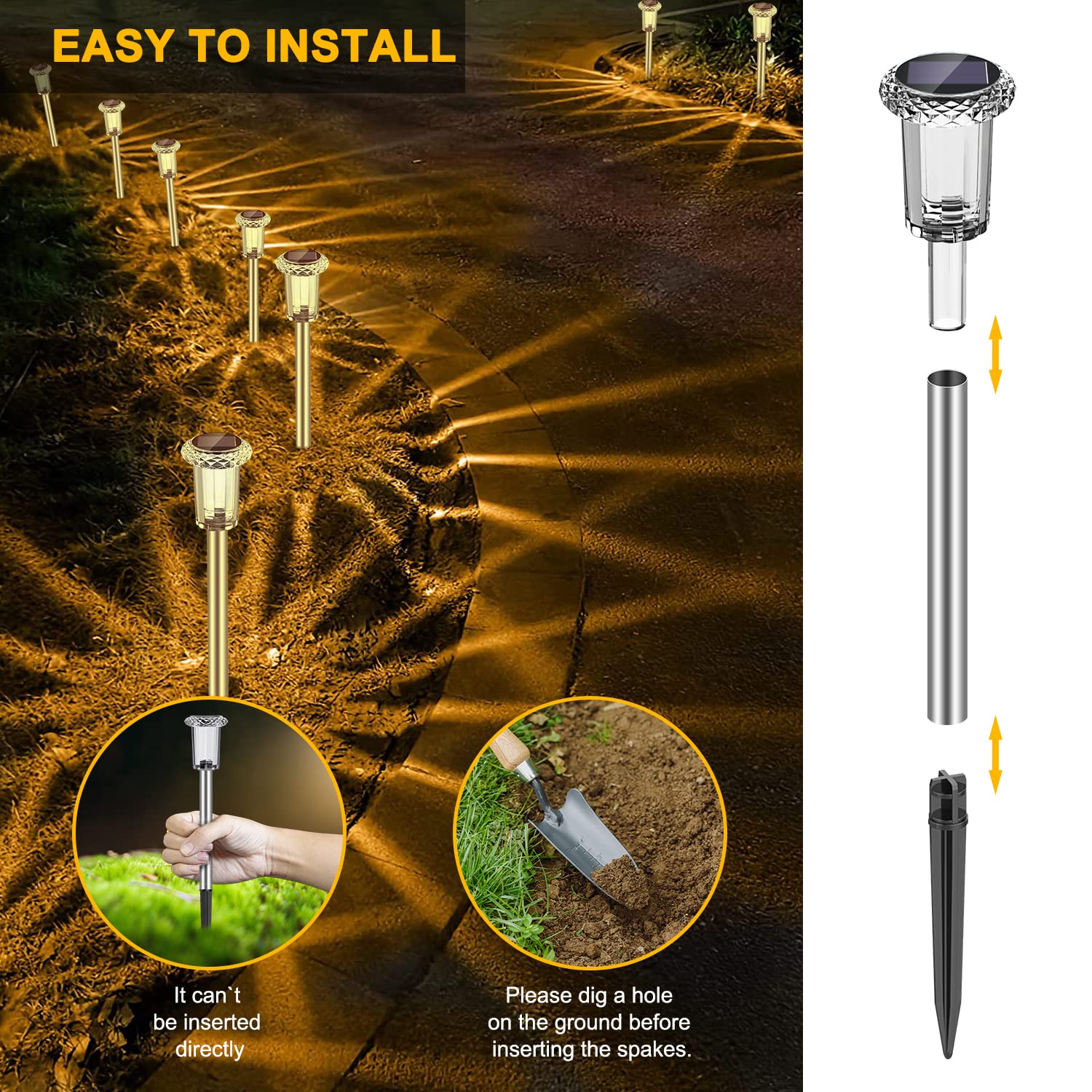 LED Solarleuchten für Garten, 6 Stück Warmweiss Farben wasserdichte Solarlampe für aussen, Terrasse, Rasen, Garten, Hof, Wege