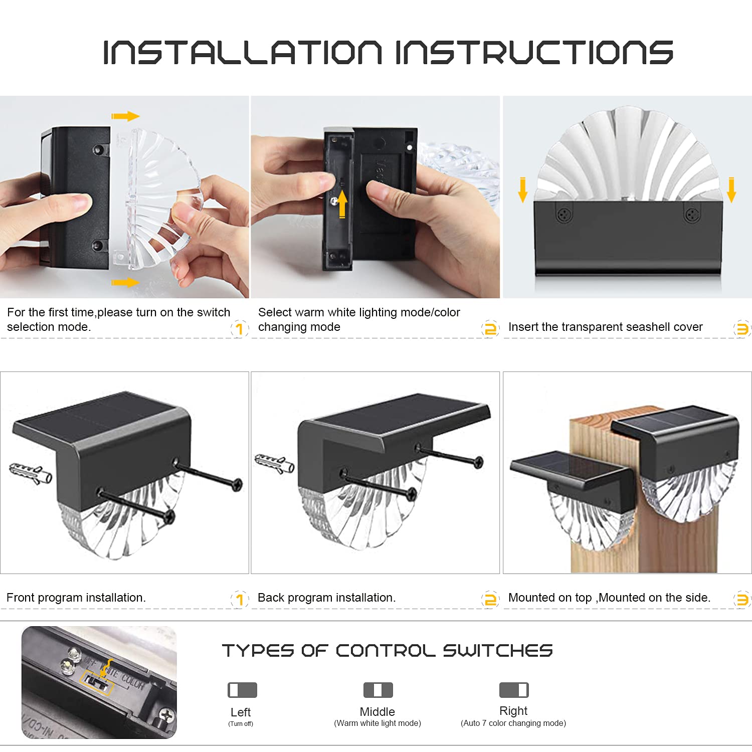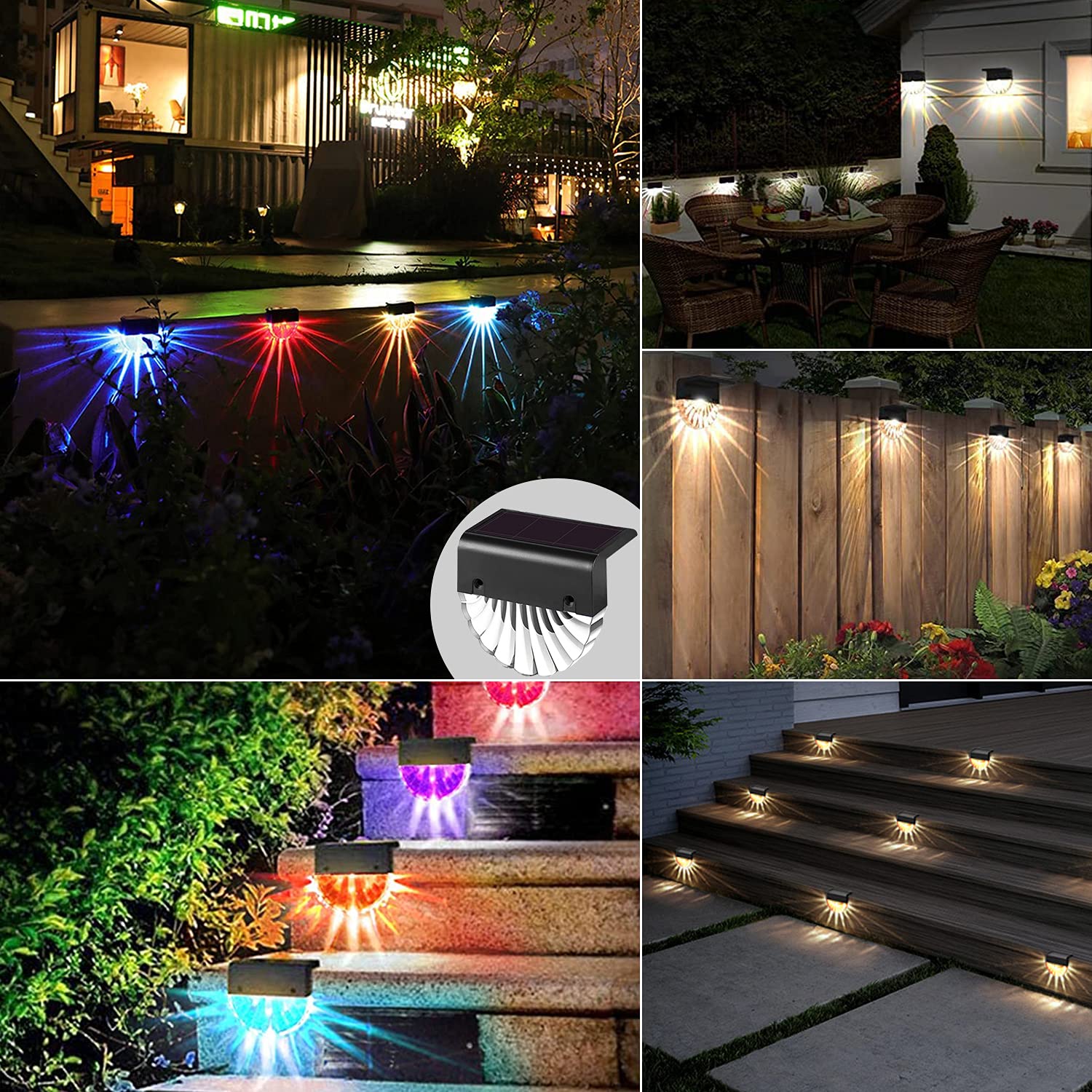 Solarlampen für Aussen Garten, Wasserdichte Solar Lampe für die Garten dekoration 4 Stück LED Gartenlampen für Terrasse, Stufen und Treppen, 2 Modi LED Warmweiss/Farbwechselnde Beleuchtung