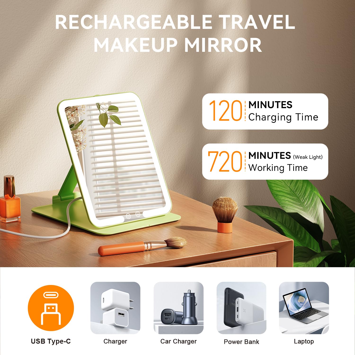 Der integrierte Akku wird bequem per USB-Kabel aufgeladen. Nach dem Laden ist der Spiegel kabellos einsatzbereit – perfekt für flexible Nutzung ohne Steckdose.