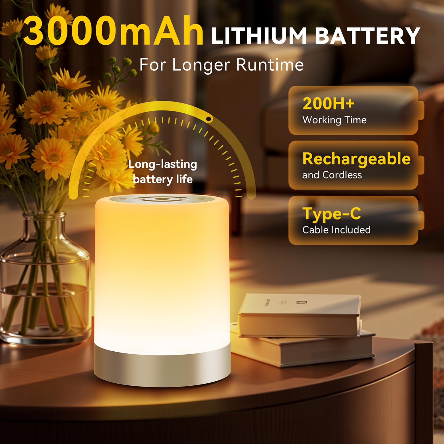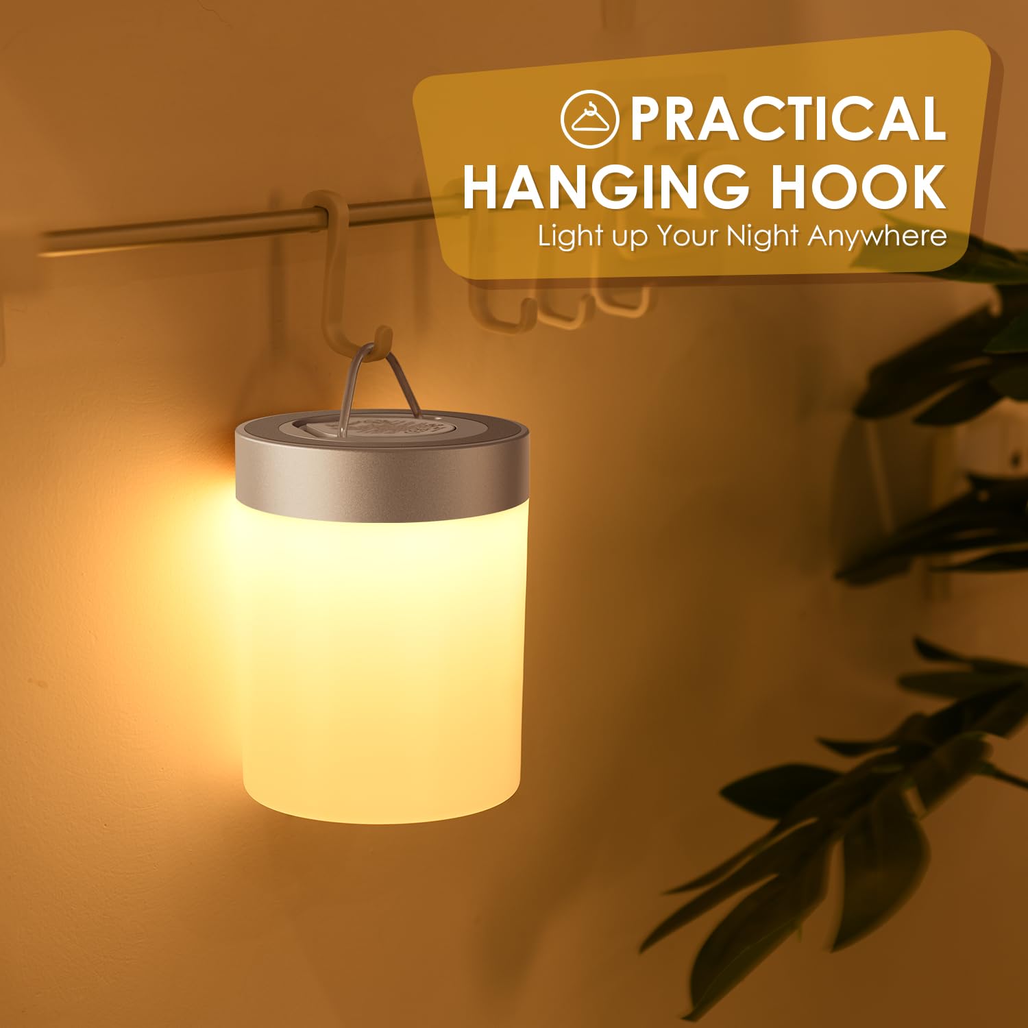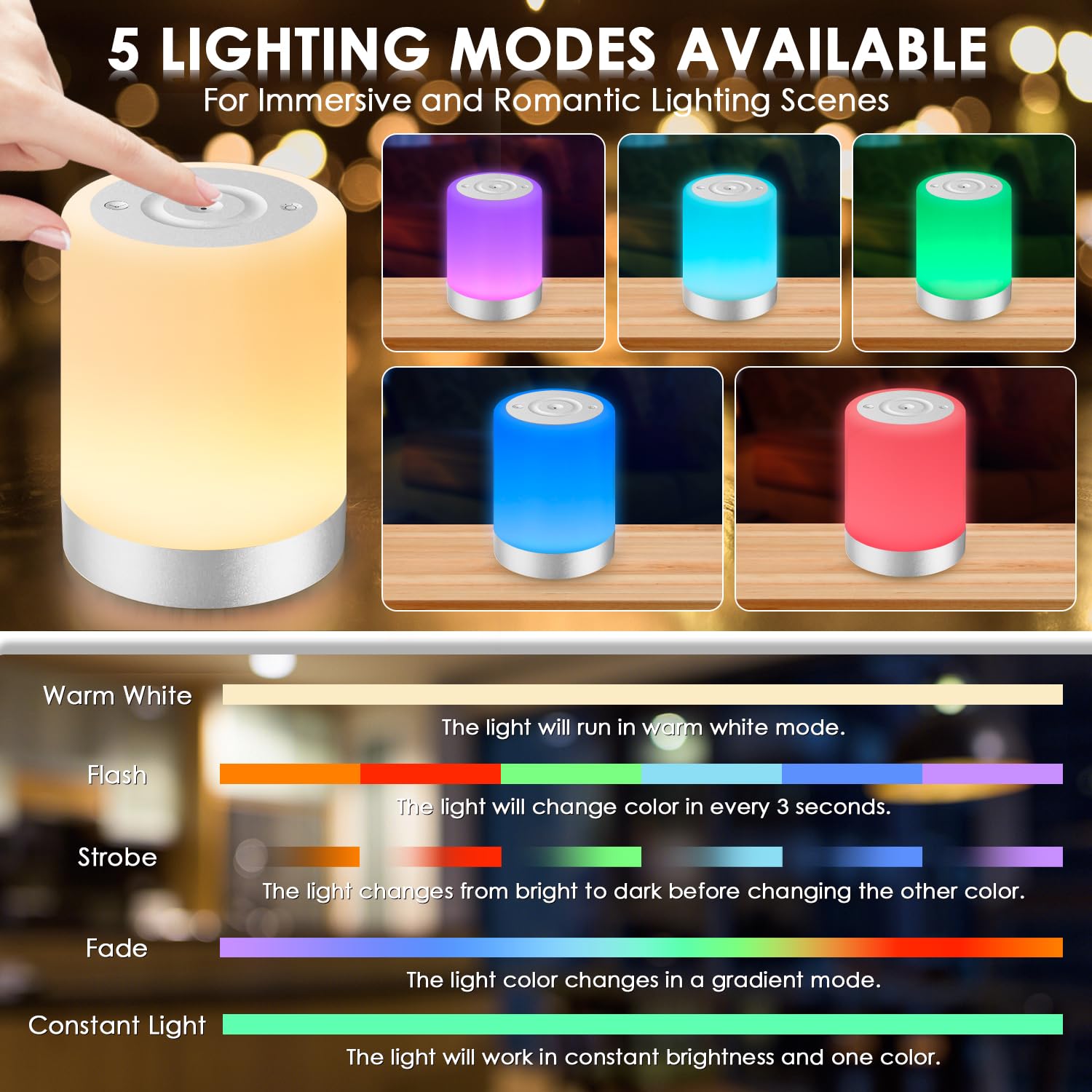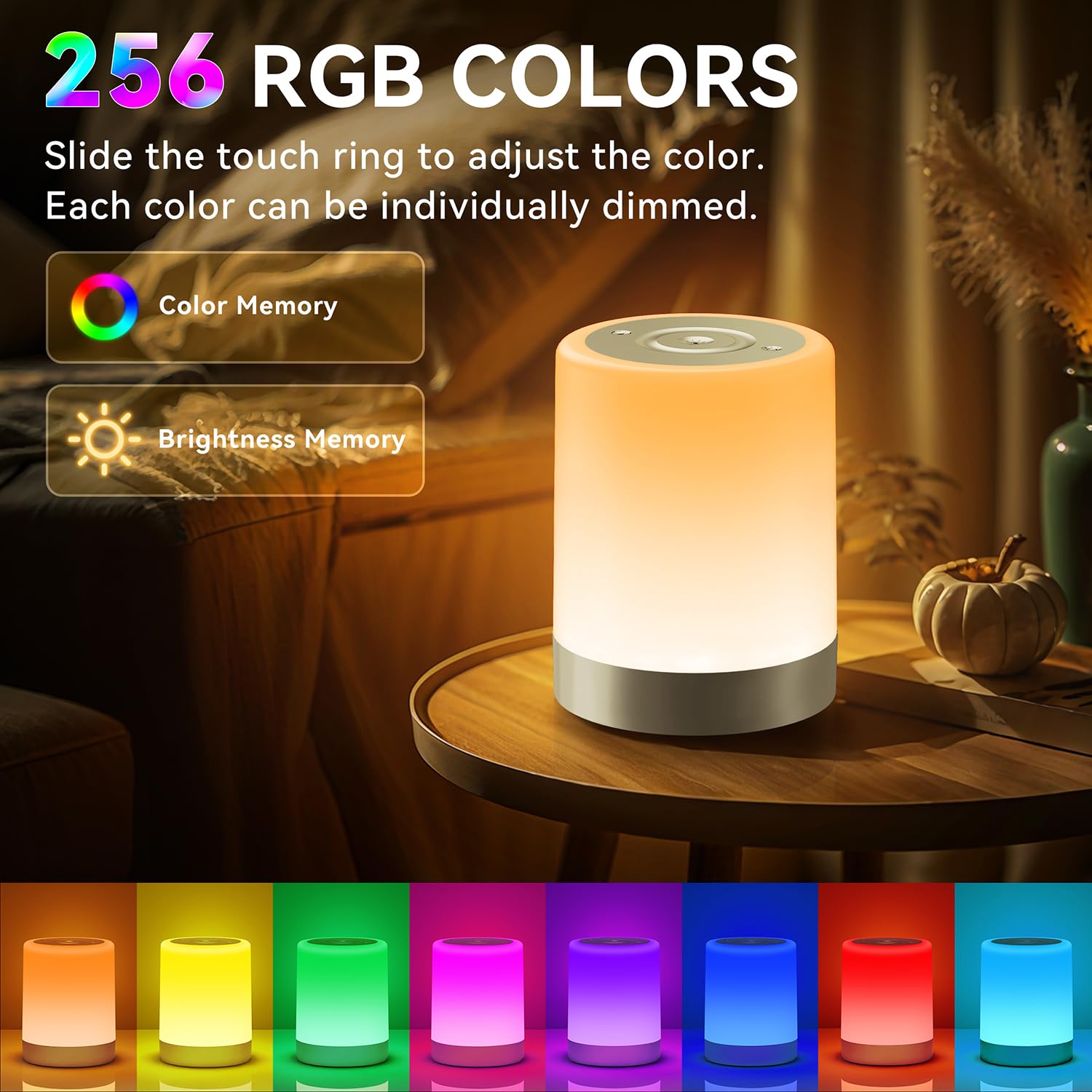 Auxmir Nachttischlampe Nachtlicht Touch Dimmbar, 3000mAh Tischlampe Kabellos USB Aufladbar mit 256 RGB Farben 5 Modi, Timing Funktion, LED Stilllicht Lampe für Kinder Deko Schlafzimmer Camping, Silber