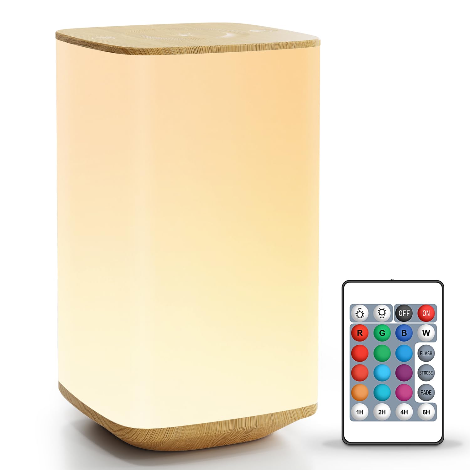 Auxmir Nachttischlampe, LED-Tischlampe, kabellos, 256 RGB-Farben und 4 Lichtmodi, Nachtlampe, 4000 mAh, USB wiederaufladbar, Holzmaserung
