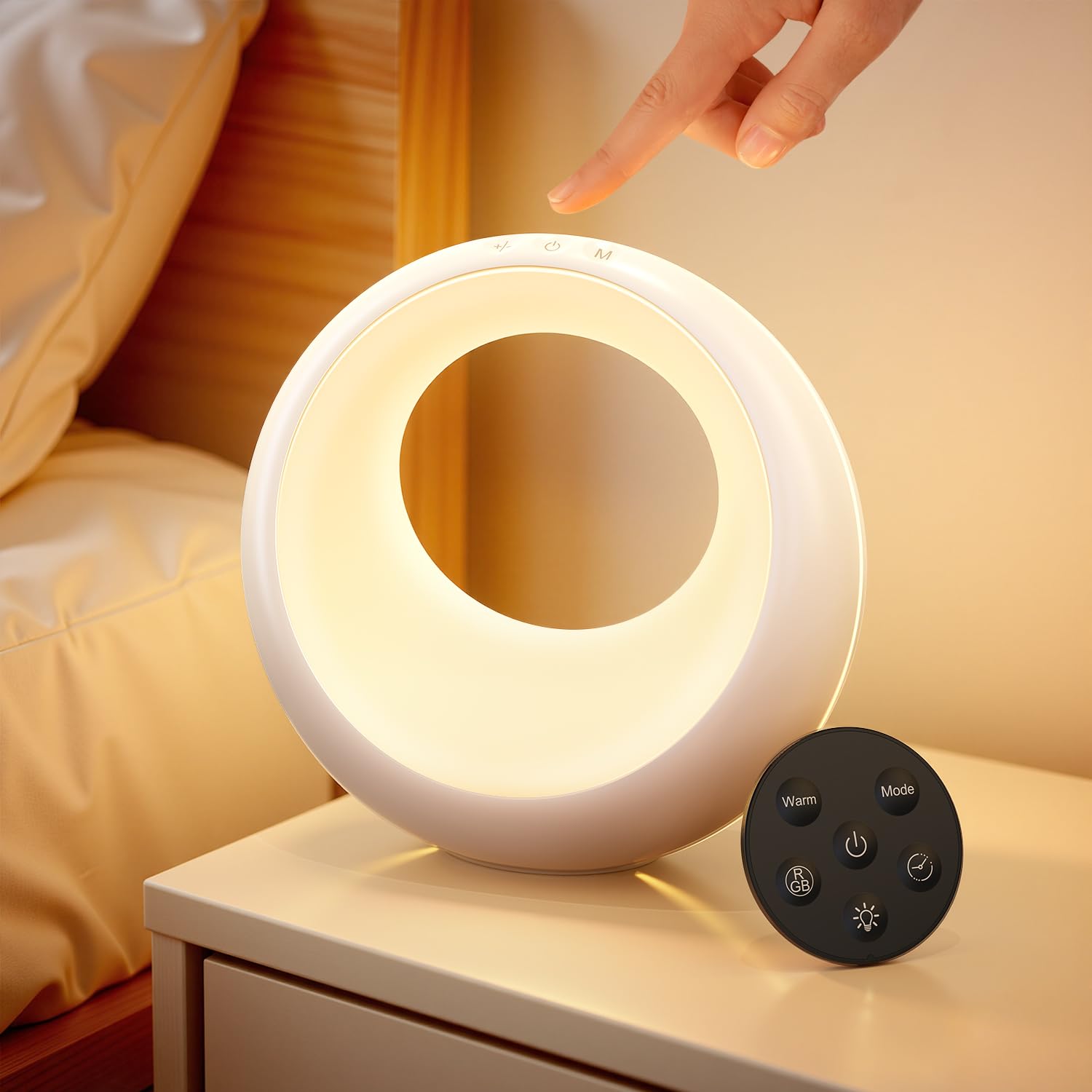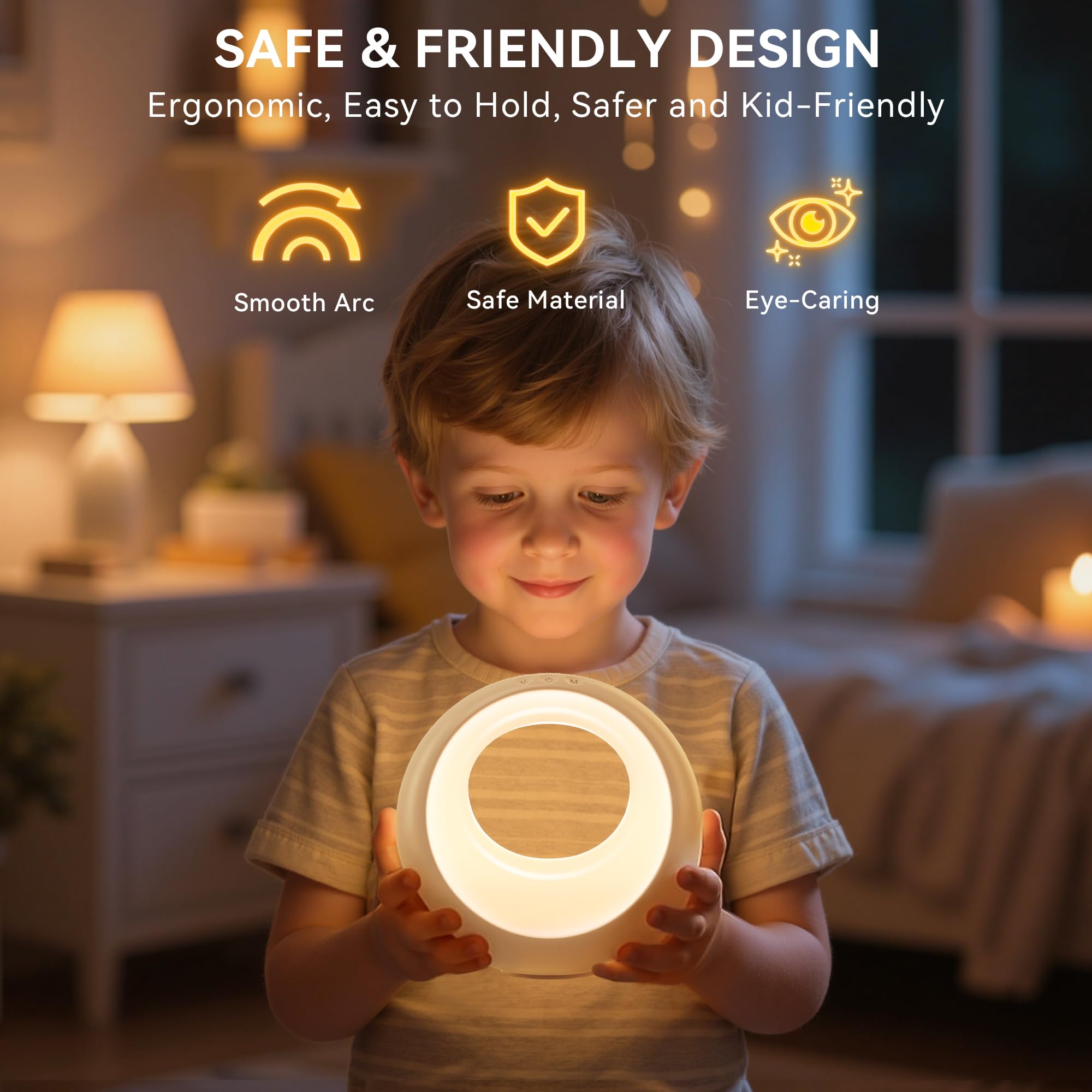 - ????【Rundes Design & Perfektes Geschenk】Die Nachttischlampe überzeugt durch ihr modernes Design – minimalistisch, stilvoll und praktisch zugleich. Der elegante Look fügt sich harmonisch in jedes Wohnambiente ein. Dank der vielseitigen Funktionen und der hochwertigen Verarbeitung ist sie ein ideales Geschenk für Kinder, Partner, Eltern oder Freunde