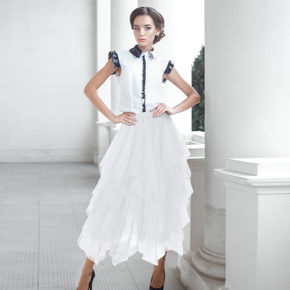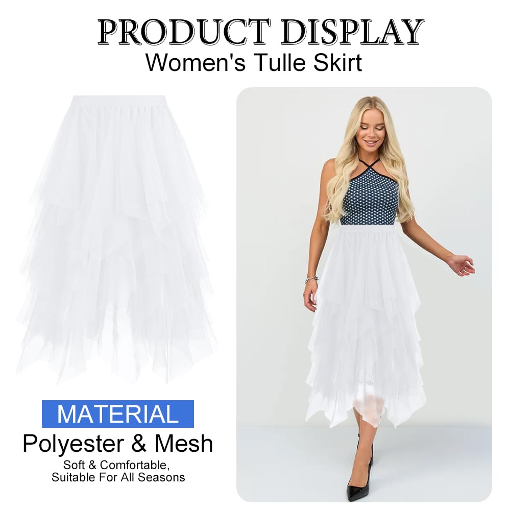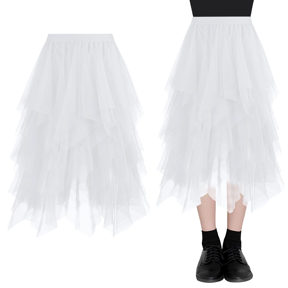 AUYAO Damen Tüllrock Klassisch Mittellanger Ballett Tutu Rock Unregelmässige Tütü Tutu Rock Damen Mesh Nähte Tutu Röcke Elastische Tüll Rock High Waisted Rock A-Linie Midirock Lagenrock Sommerrock