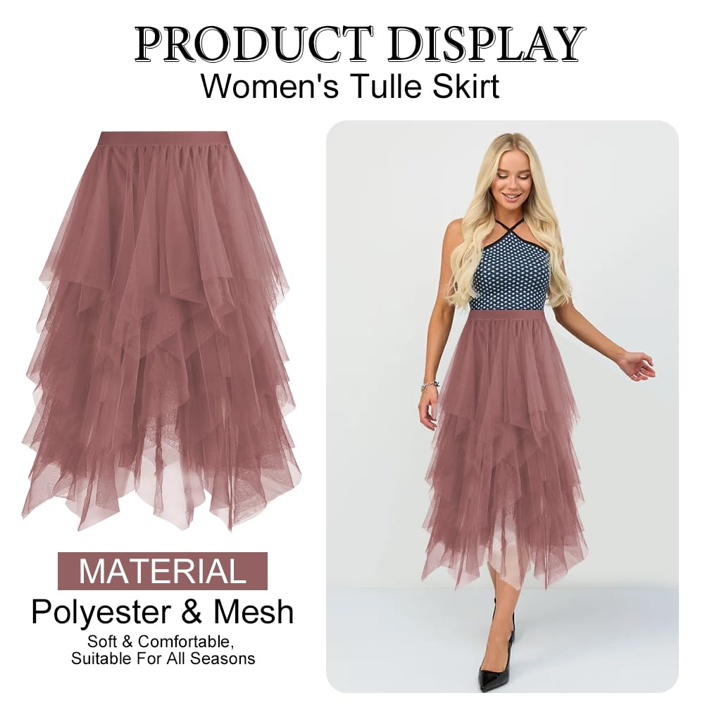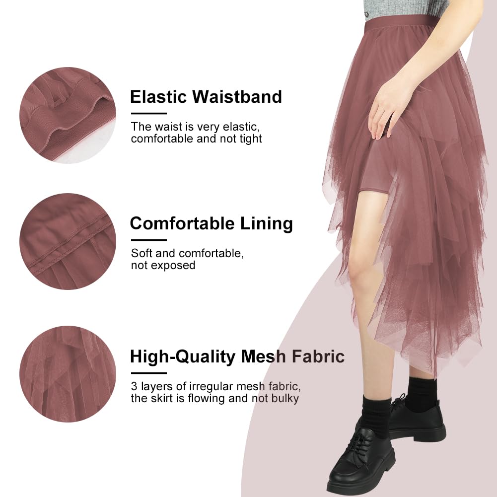 AUYAO Damen Tüllrock Klassisch Mittellanger Ballett Tutu Rock Unregelmässige Tütü Tutu Rock Damen Mesh Nähte Tutu Röcke Elastische Tüll Rock High Waisted Rock A-Linie Midirock Lagenrock Sommerrock