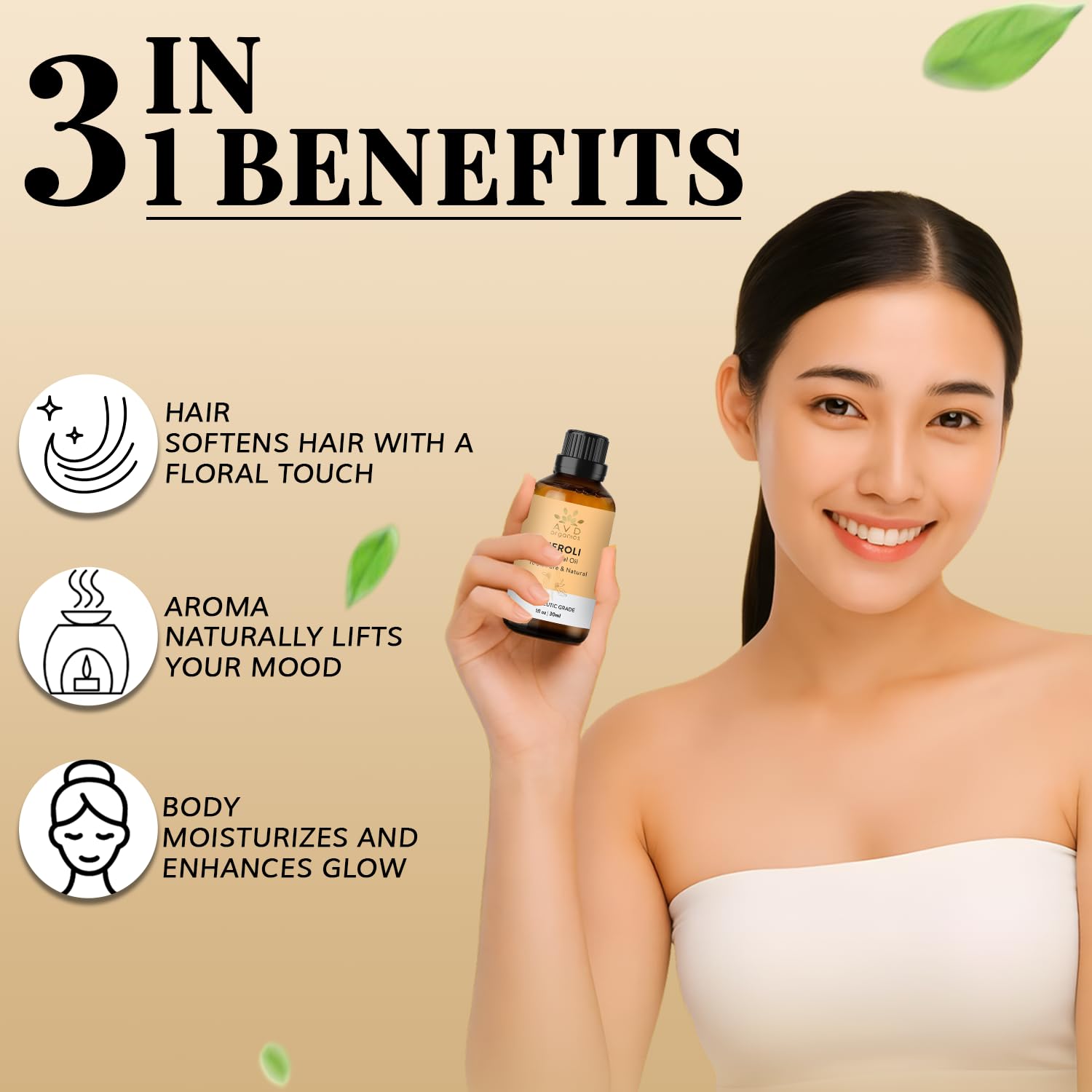 Entdecke die wohltuende Kraft von AVD ORGANICS Neroli Ätherisches Öl 30 ml. Dieses 100% reine und natürliche Neroli Essential Oil wird aufgrund seines blumigen, beruhigenden Duftes und seiner hautfreundlichen Eigenschaften geschätzt. Ob für die Haut, Aromatherapie, Entspannung oder als ätherische Öle für Diffuser – unser Öl bietet vielseitige Anwendungsmöglichkeiten. Das Neroli ätherisches Öl wesentlich unterstützt innere Ruhe, fördert emotionale Balance und sorgt für eine angenehme Wohlfühlatmosphäre.