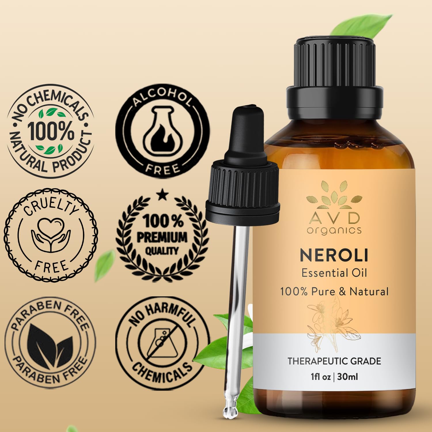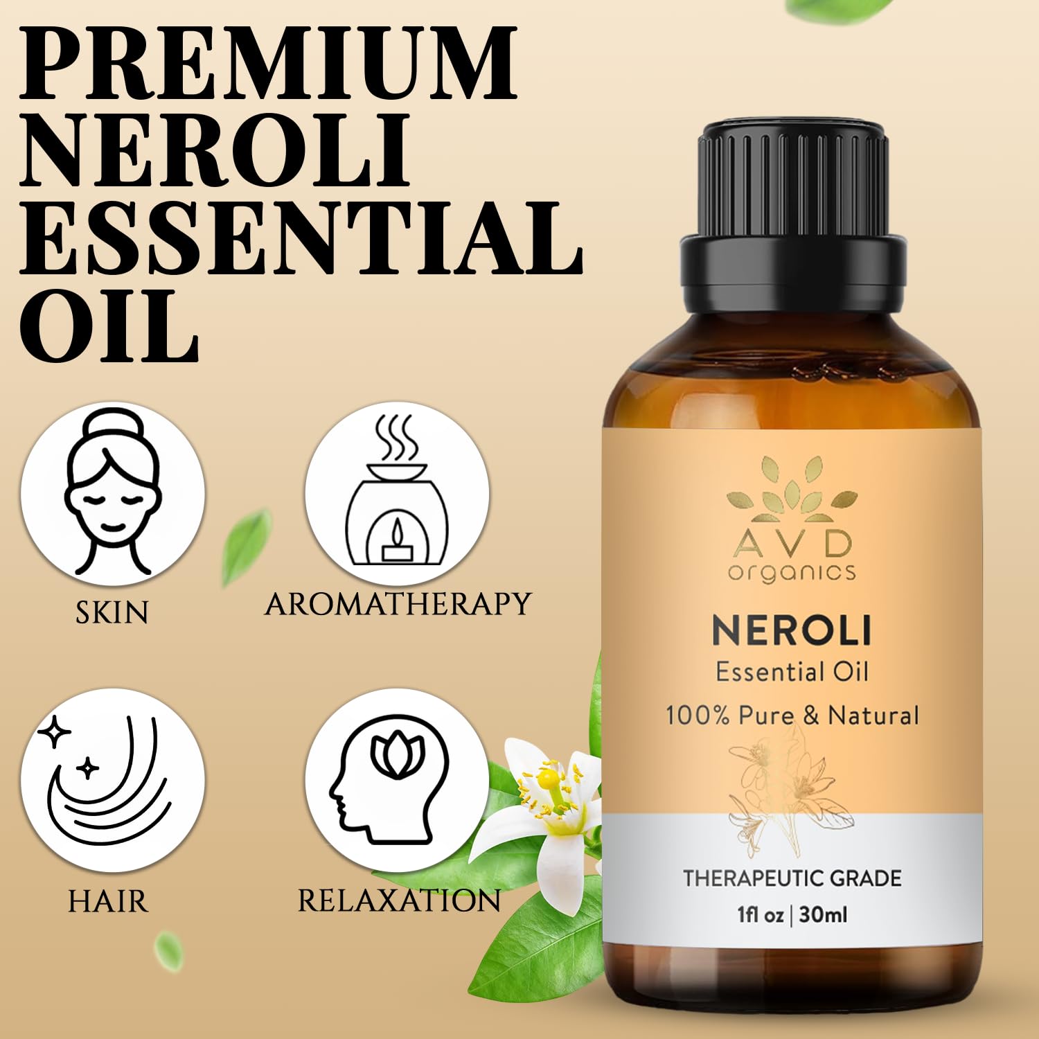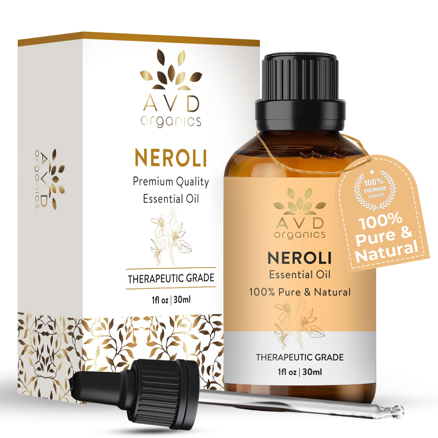 AVD ORGANICS Neroli Ätherisches Öl 30 ml | 100% rein & natürlich | Neroli Essential Oil für Haut, Aromatherapie, Massage & Diffusor – Premium ätherisches Neroliöl