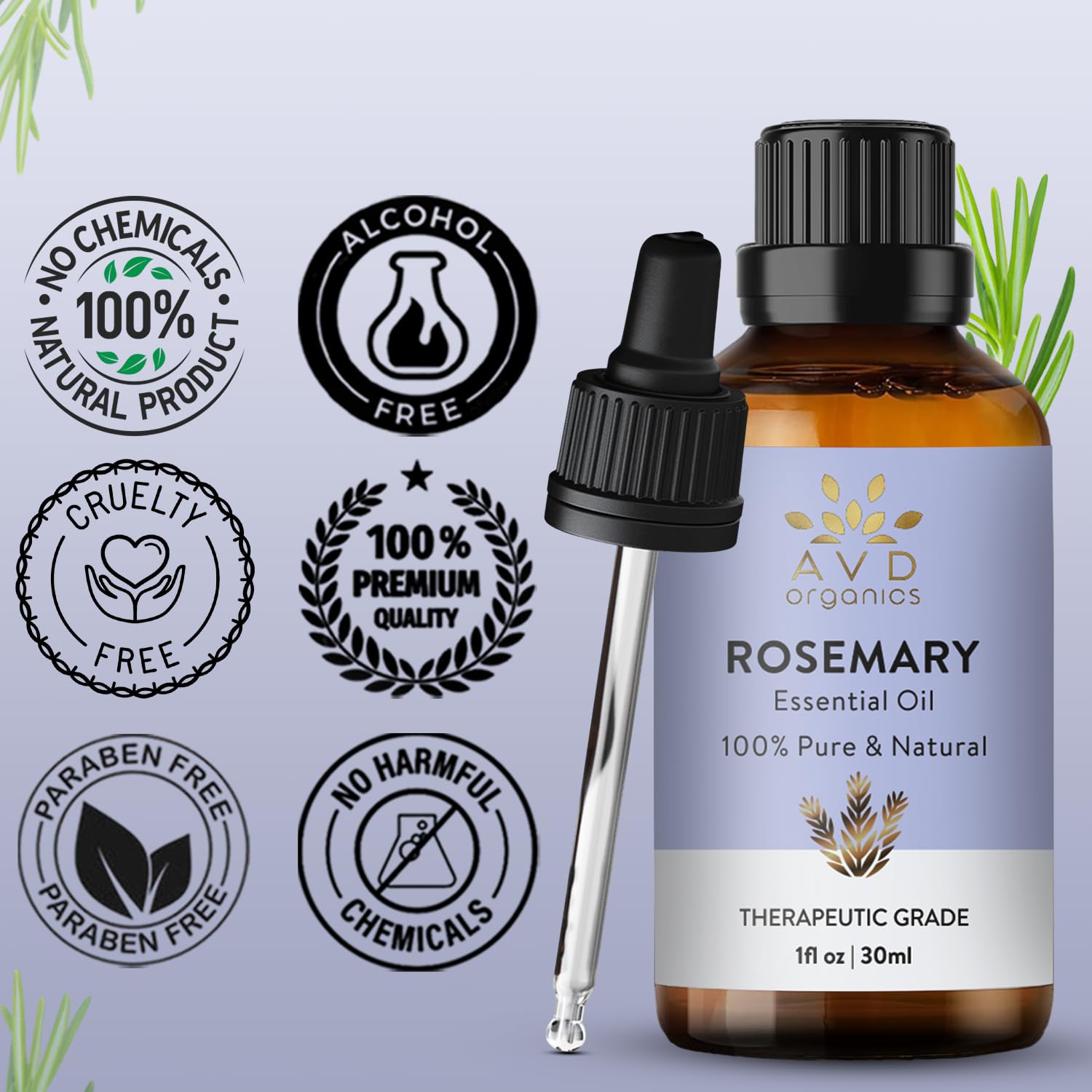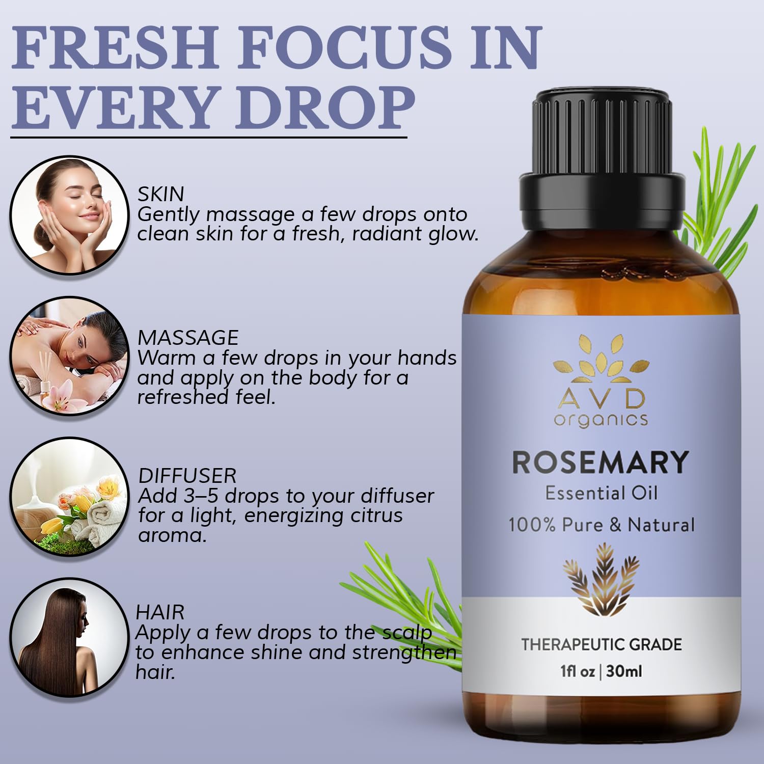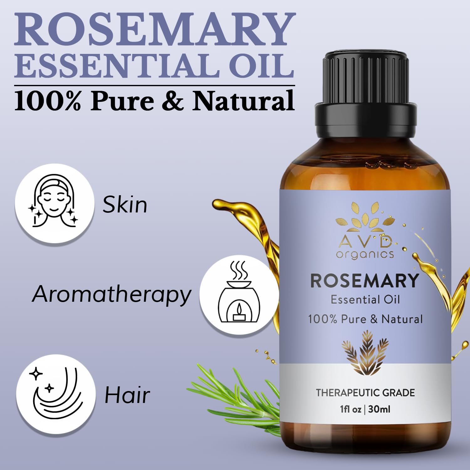 AVD ORGANICS Rosmarinöl haare – 100% reines und natürliches rosemary oil in therapeutischer Qualität | für Haare, Haut und Entspannung, – 1 fl. Unze