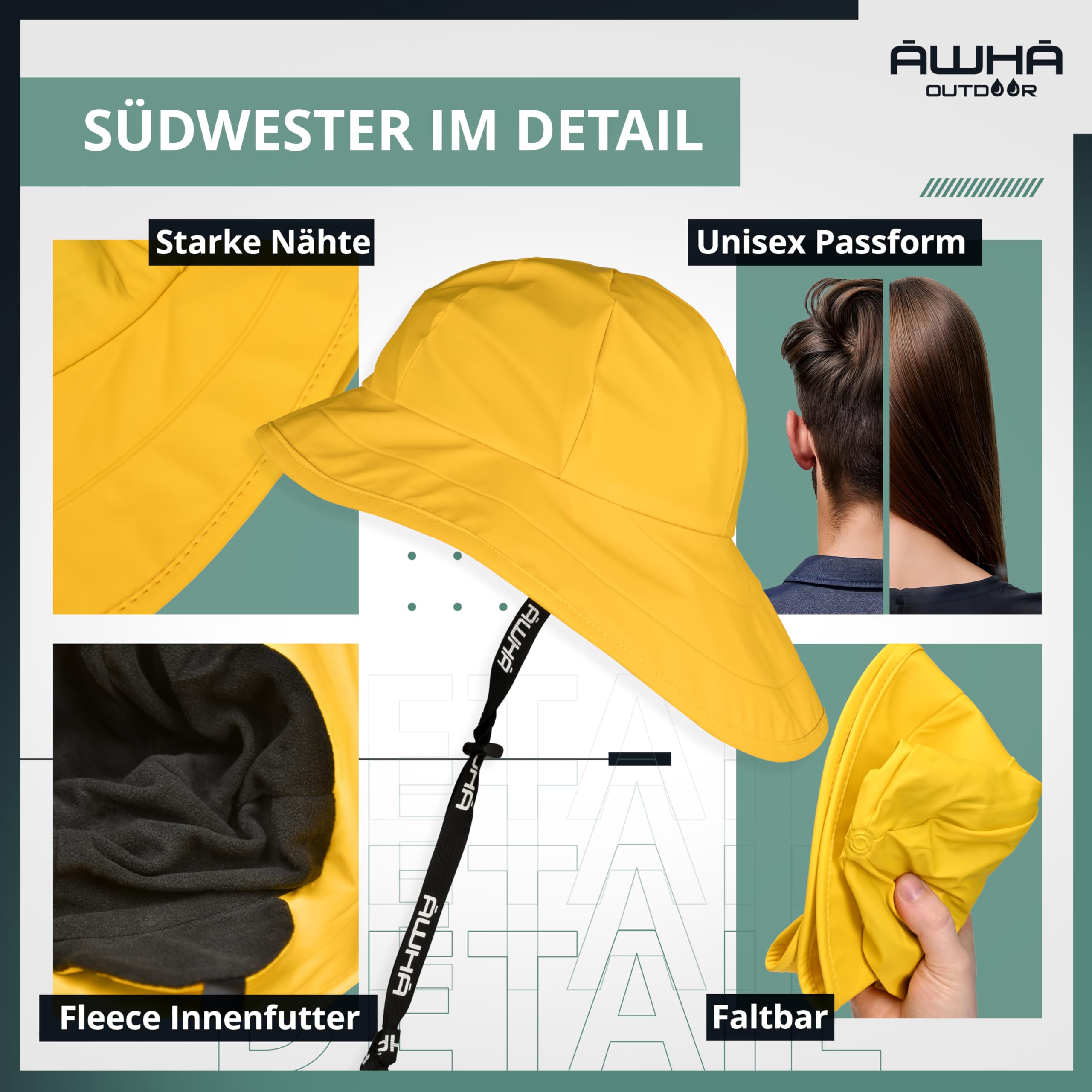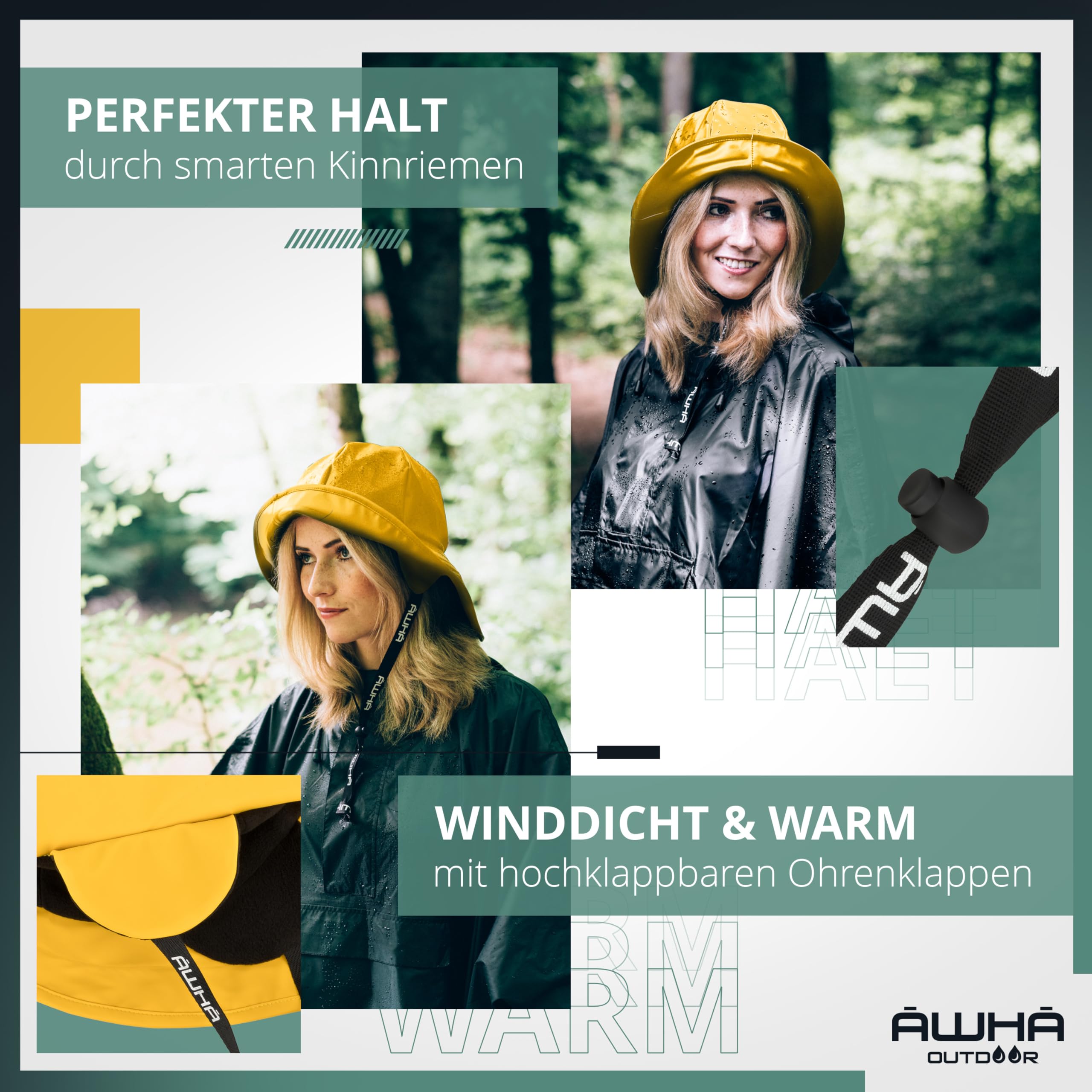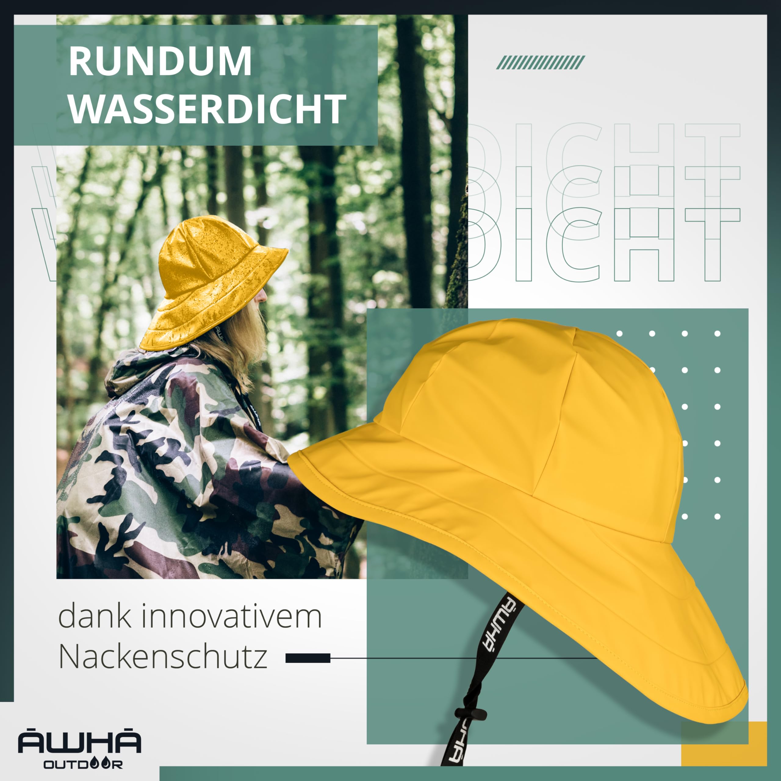 AWHA Südwester Regenhut Unisex - wasserdichte Mütze mit breiter Krempe und Ohrenklappen