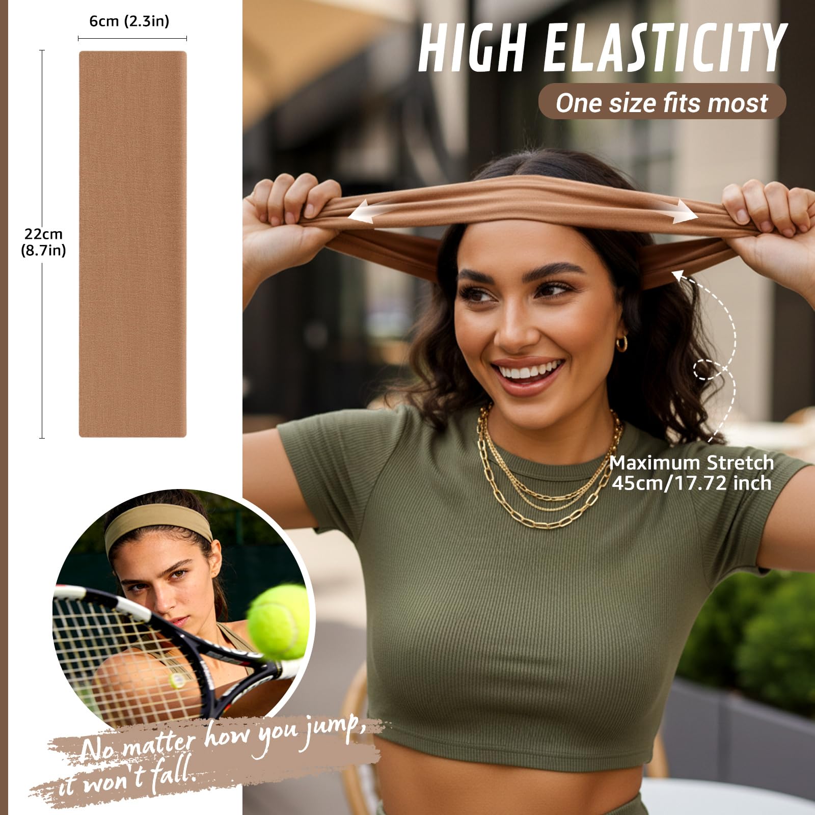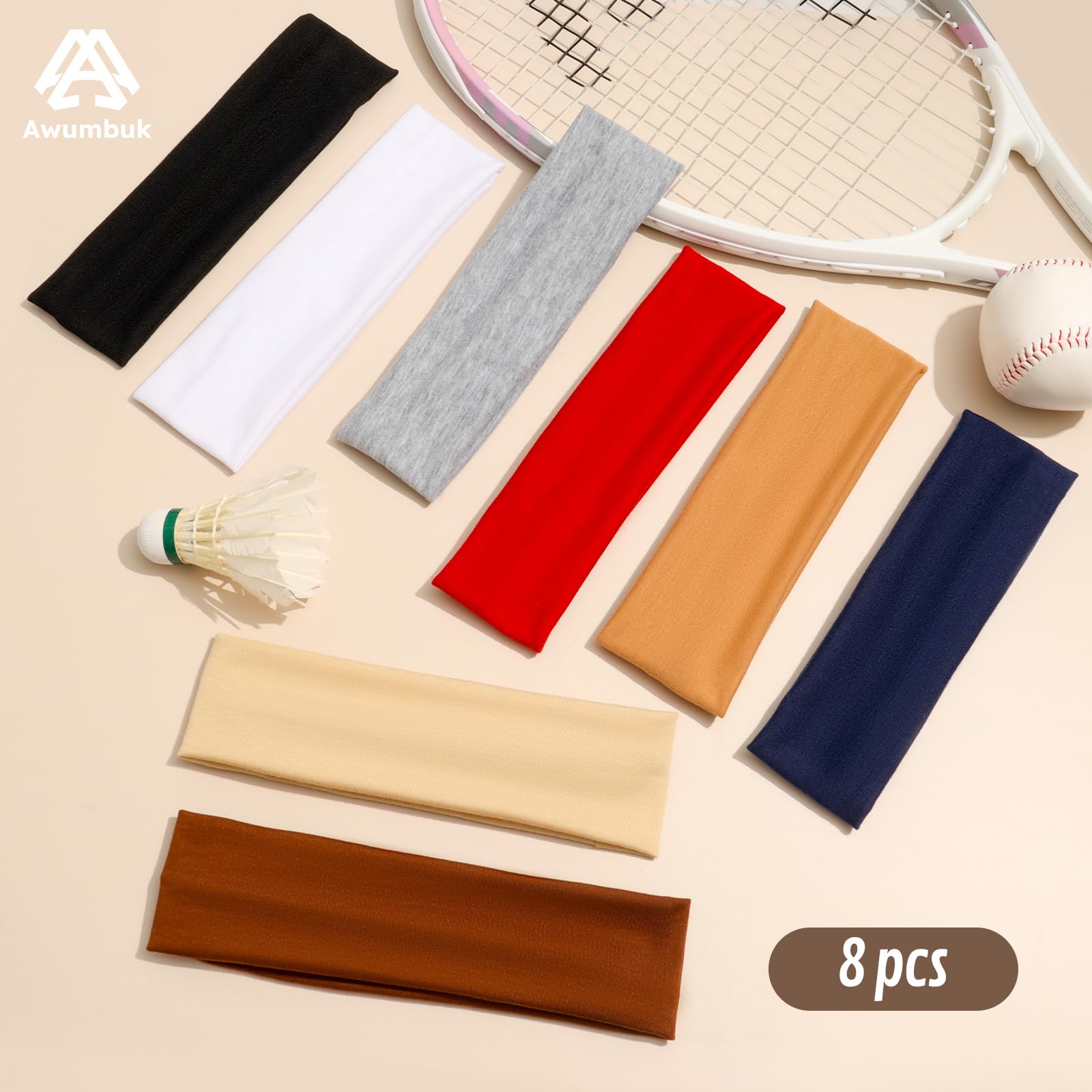 AWUMBUK Stirnband Damen Sport, 8 Pack Haarband Schwarz Haarbänder Damen Herren Antirutsch Stirnbänder Elastisch Headband Unisex Hair Band Sport Yoga Workout Laufen Fitness Gym Haarschmuck
