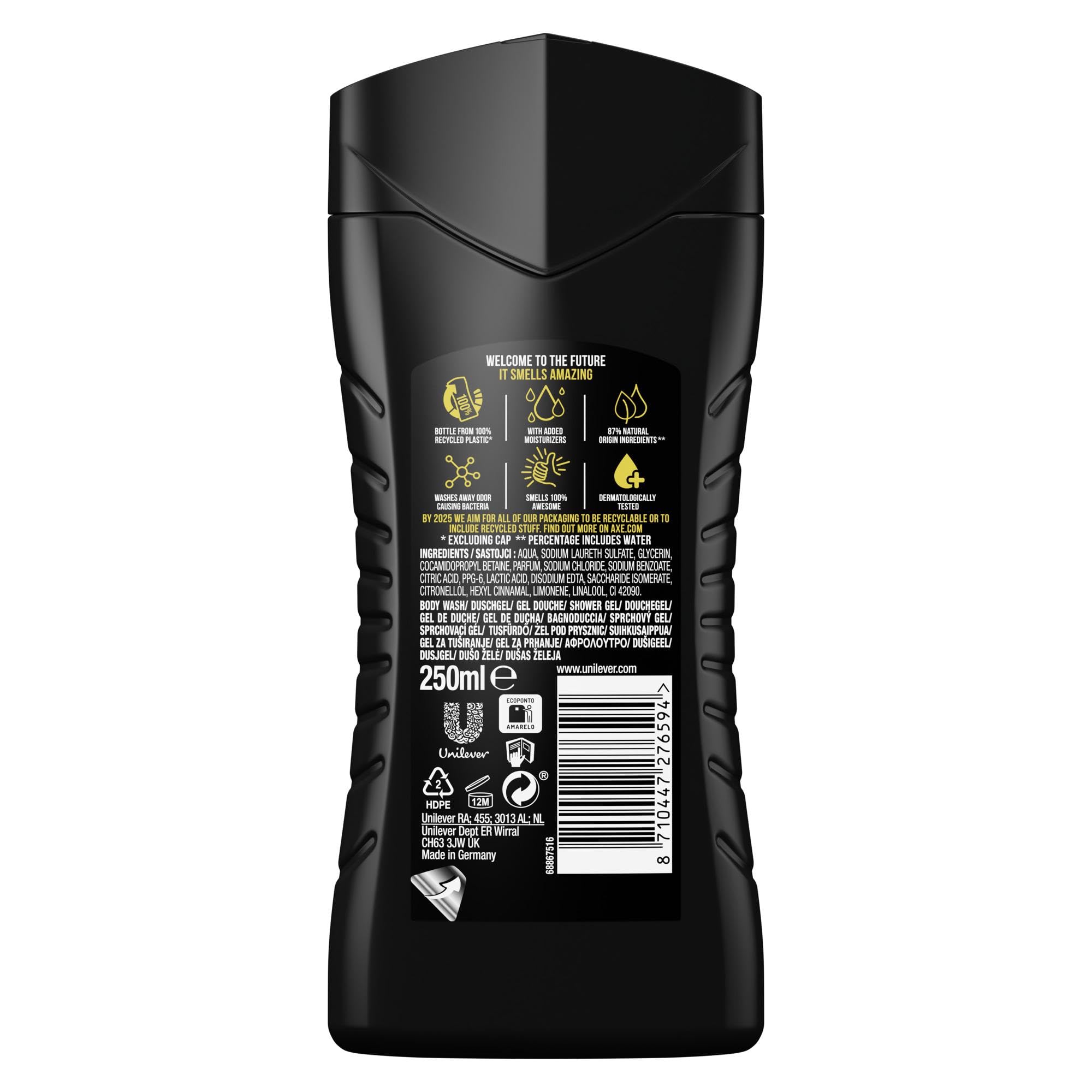 87 % natürliche Inhaltsstoffe, Flasche aus 100% recyceltem Plastik (ausser Deckel)