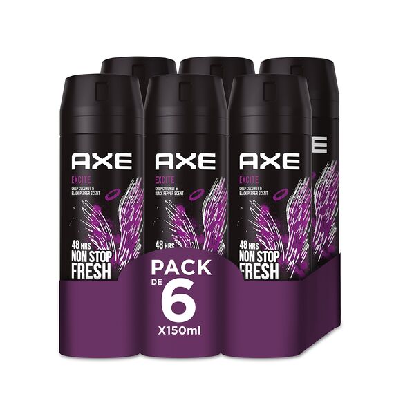 AXE Bodyspray Excite – 6 x 150 ml, Herren Deodorant, Aluminiumfrei, 48 h Schutz