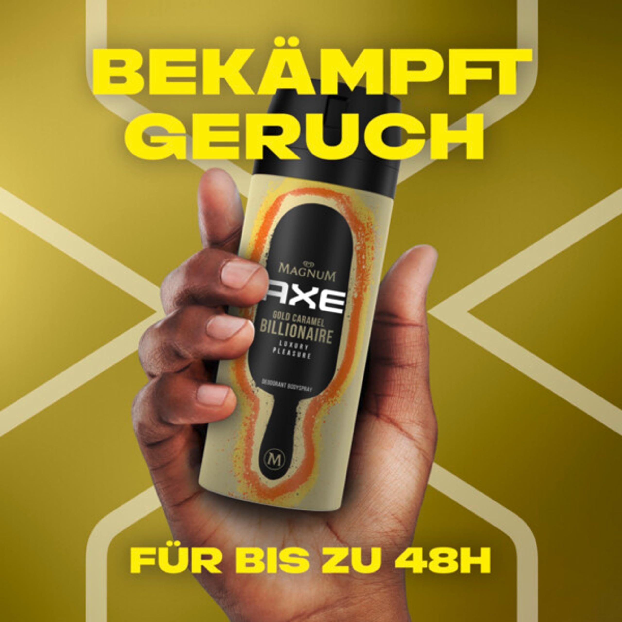 Axe Bodyspray Magnum Gold Caramel Billionaire Limited Edition Deo ohne Aluminiumsalze bekämpft geruchsbildende Bakterien und unangenehme Gerüche 8x 150 ml