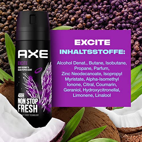 AXE Bodyspray Excite – Männerdeo ohne Aluminiumsalze, 6 x 150 ml, wirksamer Schutz gegen Körpergeruch