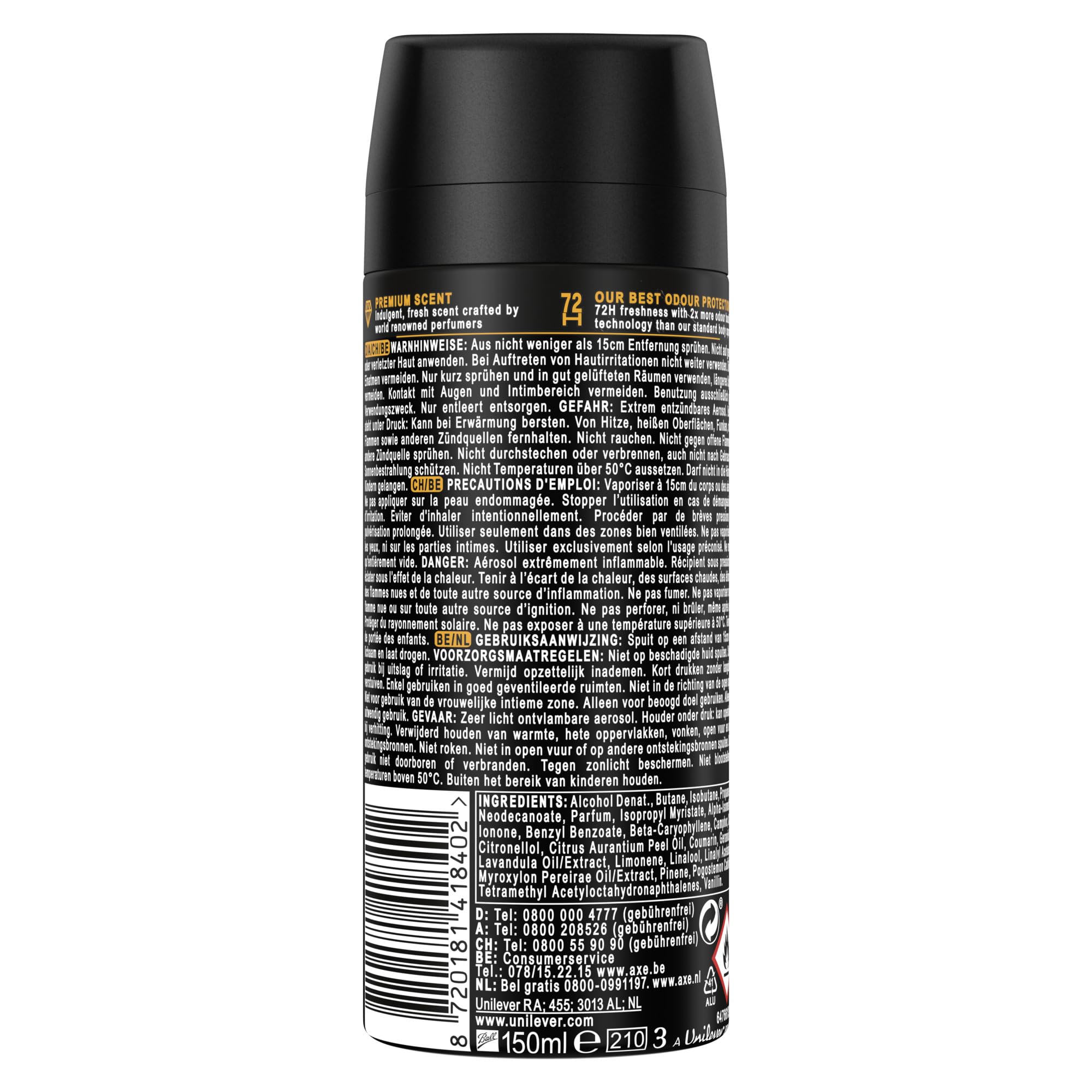 AXE Premium Black Vanilla aus der AXE Fine Fragrance Collection ist ein aluminiumfreies Bodyspray, das Männer jeden Tag wie mit ihrem Lieblingsparfüm duften lässt. Die Formel bietet zuverlässigen Schutz vor Körpergeruch, während der verführerische Duft für Selbstbewusstsein und Eleganz sorgt.