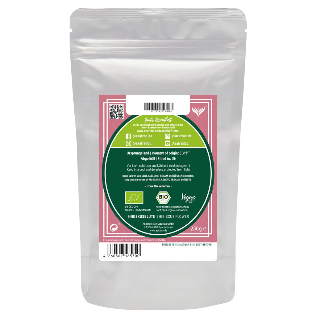 Mindestanzahl für die Bestellung von "Azafran BIO Hibiskusblüten, Hibiskus ganz getrocknet, ideal als Hibiscus Tee 1kg" ist 1.