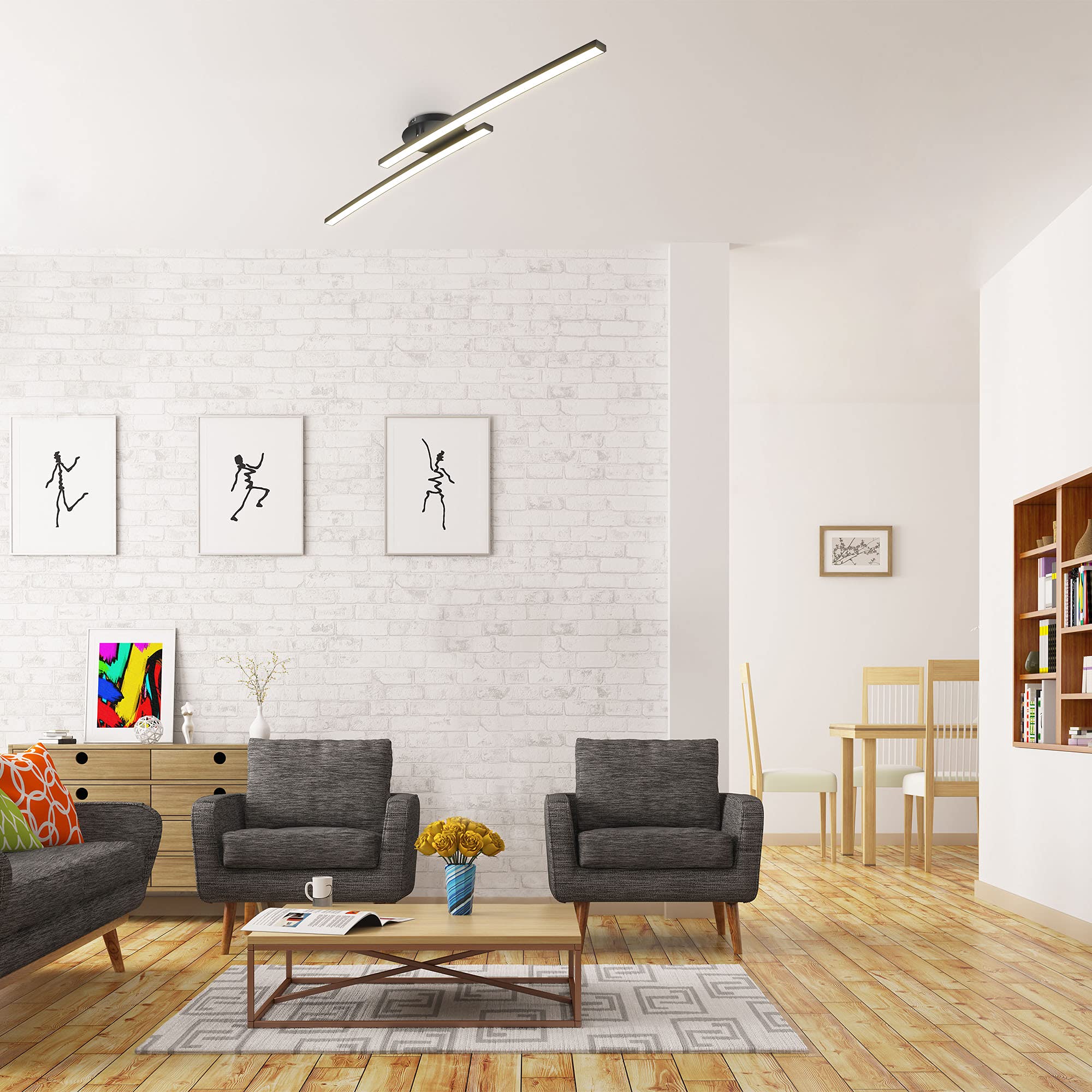 B.K.Licht - Deckenlampe mit warmweisser Lichtfarbe, 12 Watt, 1300 Lumen, LED Deckenleuchte, LED Lampe, Wohnzimmerlampe, Schlafzimmerlampe, Küchenlampe, Deckenstrahler, 57,5x12x8,3, Schwarz