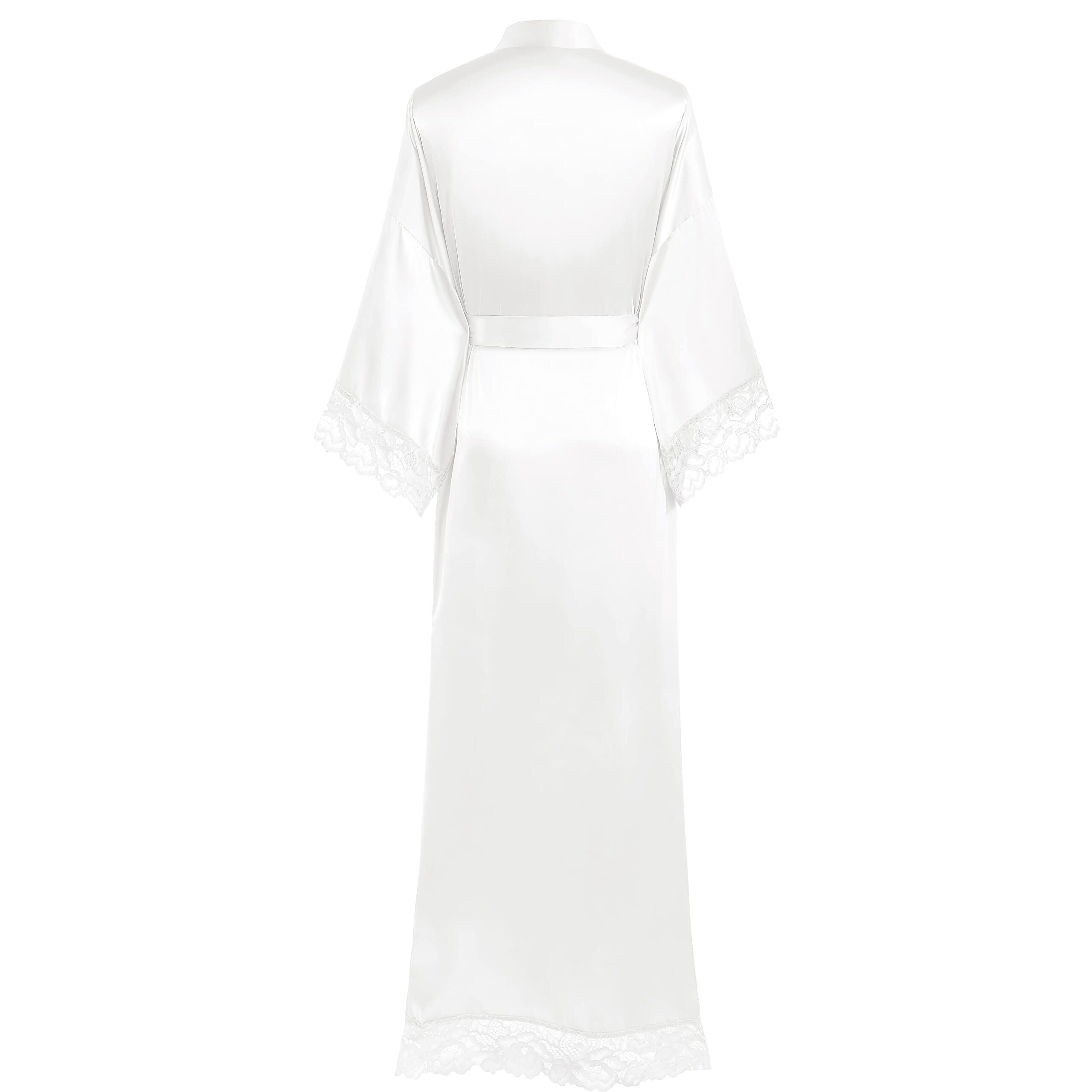 BABEYOND Damen Kimono Morgenmantel Satin Kimono Bademantel Lange Kimono Brautjungfer Bademantel mit Spitzensaum für Nachtwäsche Mädchen Bonding Party Hochzeit Pyjama Party, weiß, One Size Plus