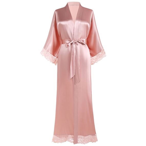 BABEYOND Damen Morgenmantel Lang Kurz Einfarbiger Bademantel Spitzen Ärmel Seide Satin Kimono Kleid Damen Sommer Robe Reine Farbe Schlafmantel