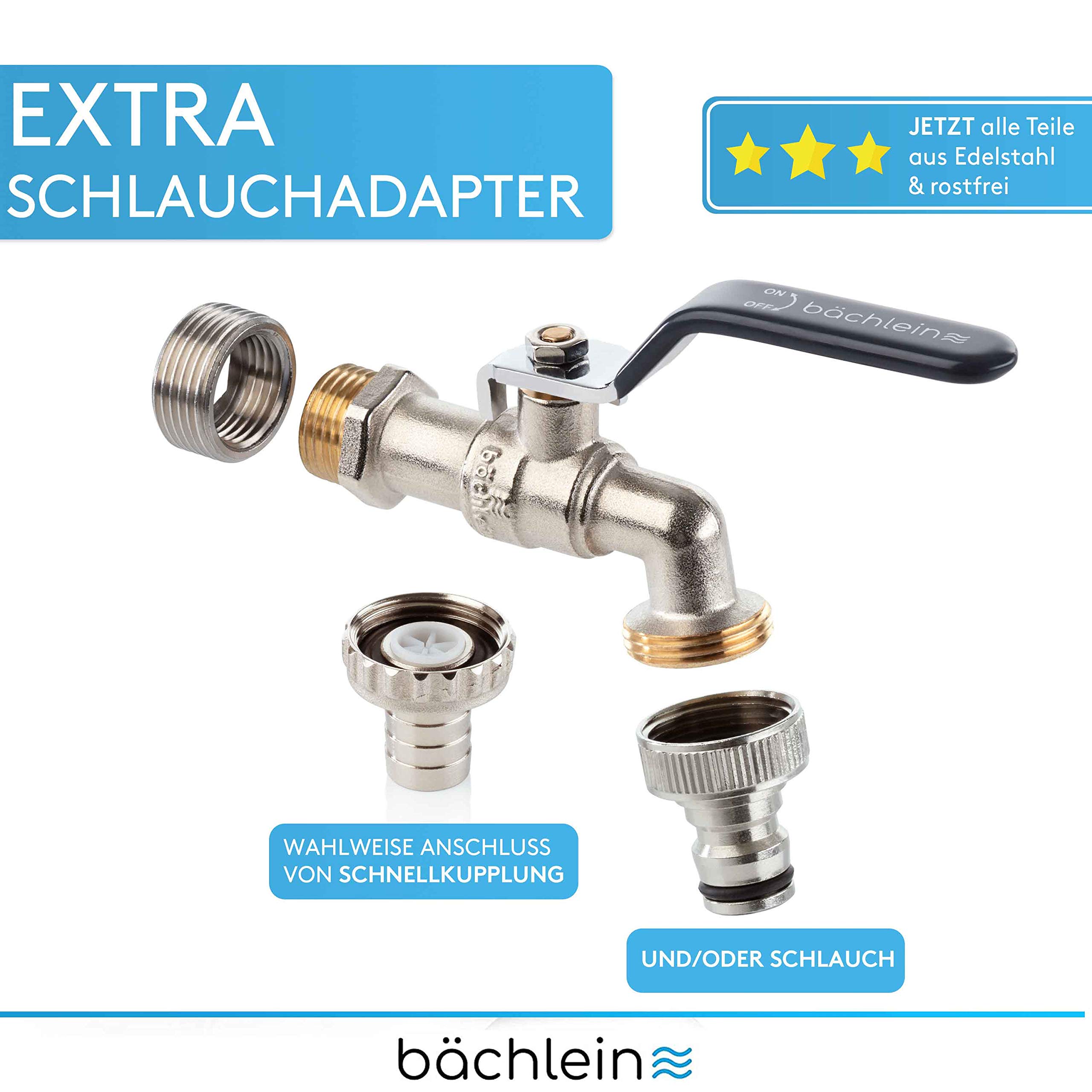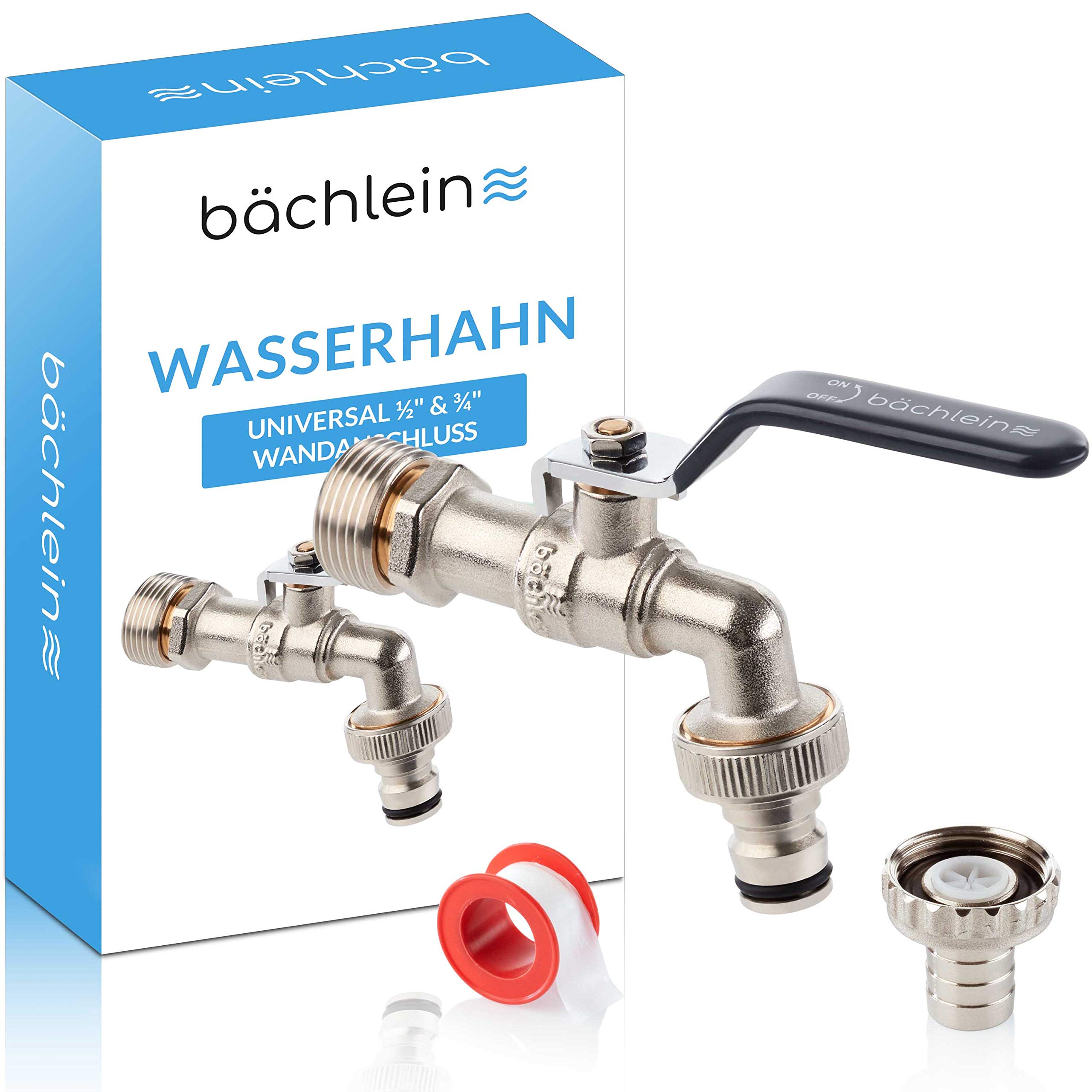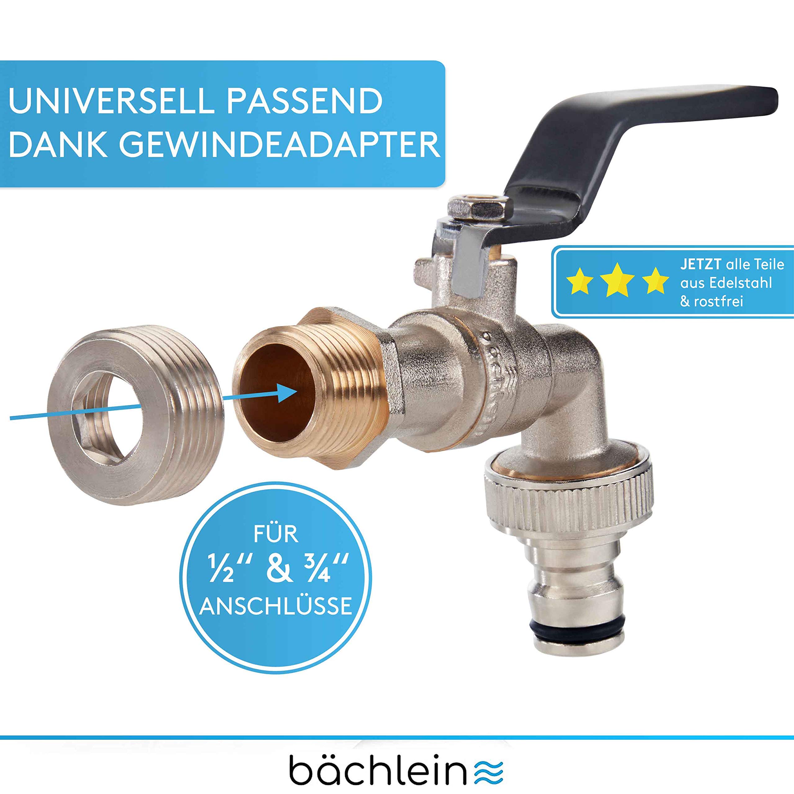 Bächlein Universal Wasserhahn für den Garten [anthrazit] inkl. 2 Schlauchanschlüssen - edler Kugelhahn mit 1/2 Zoll Anschluss und 3/4 Zoll Adapter, Auslaufhahn aussen