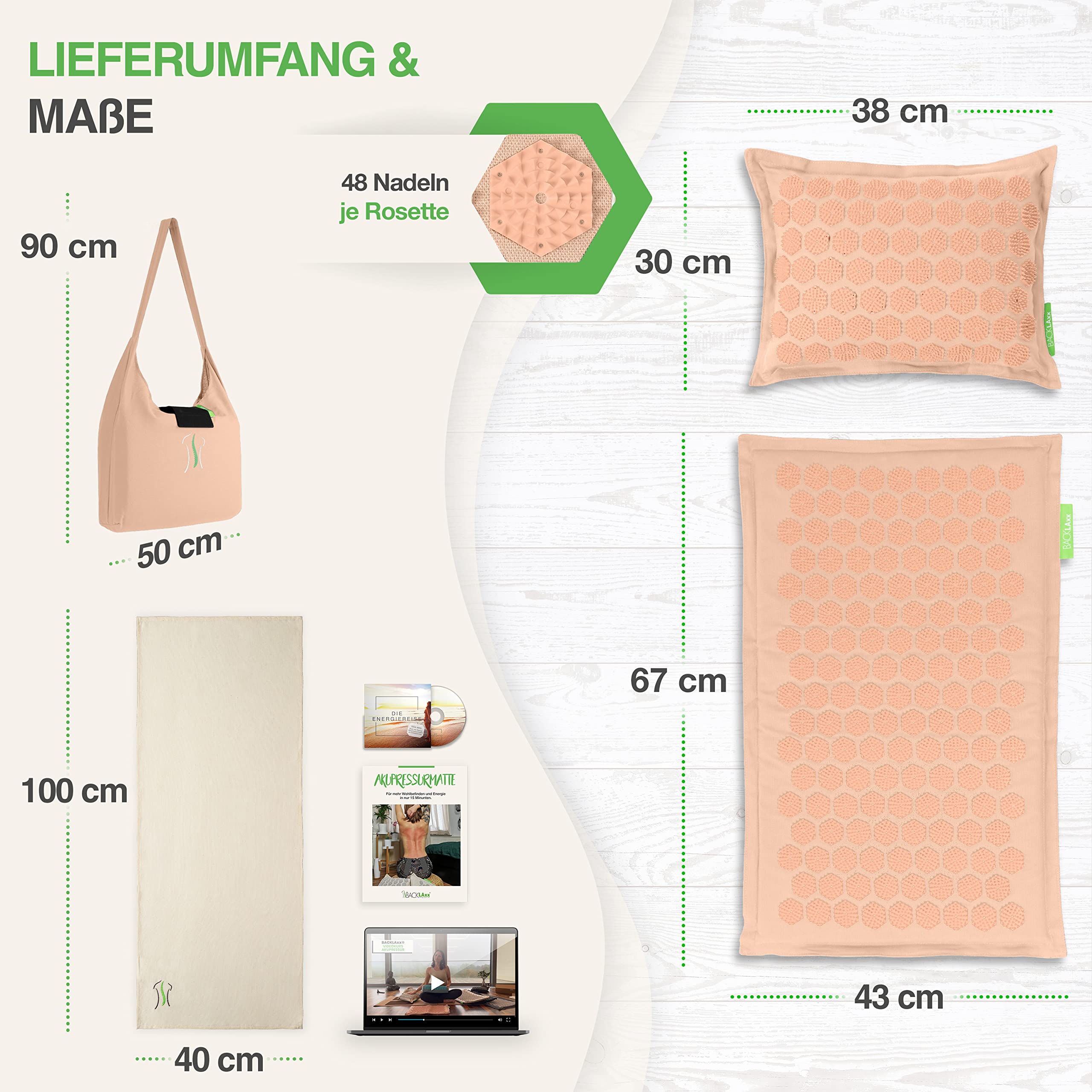 • ???? UMFANGREICHES SET: Deutscher E-Mail- und Telefonservice | Fakirmatte | Akupressur Kissen | Tasche | Tuch. GRATIS-Download: 1x Videokurs, 2x Hörbuch mit 110 Minuten Entspannung und 1x eBook.