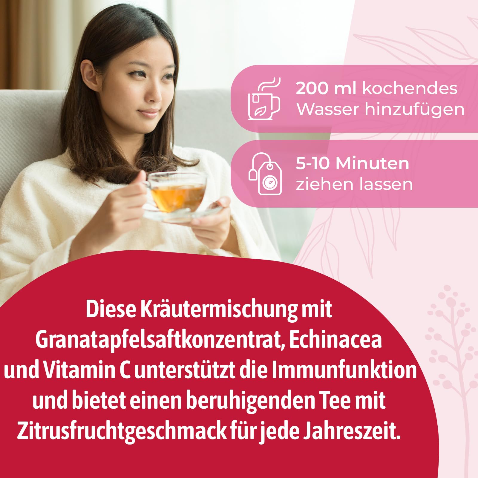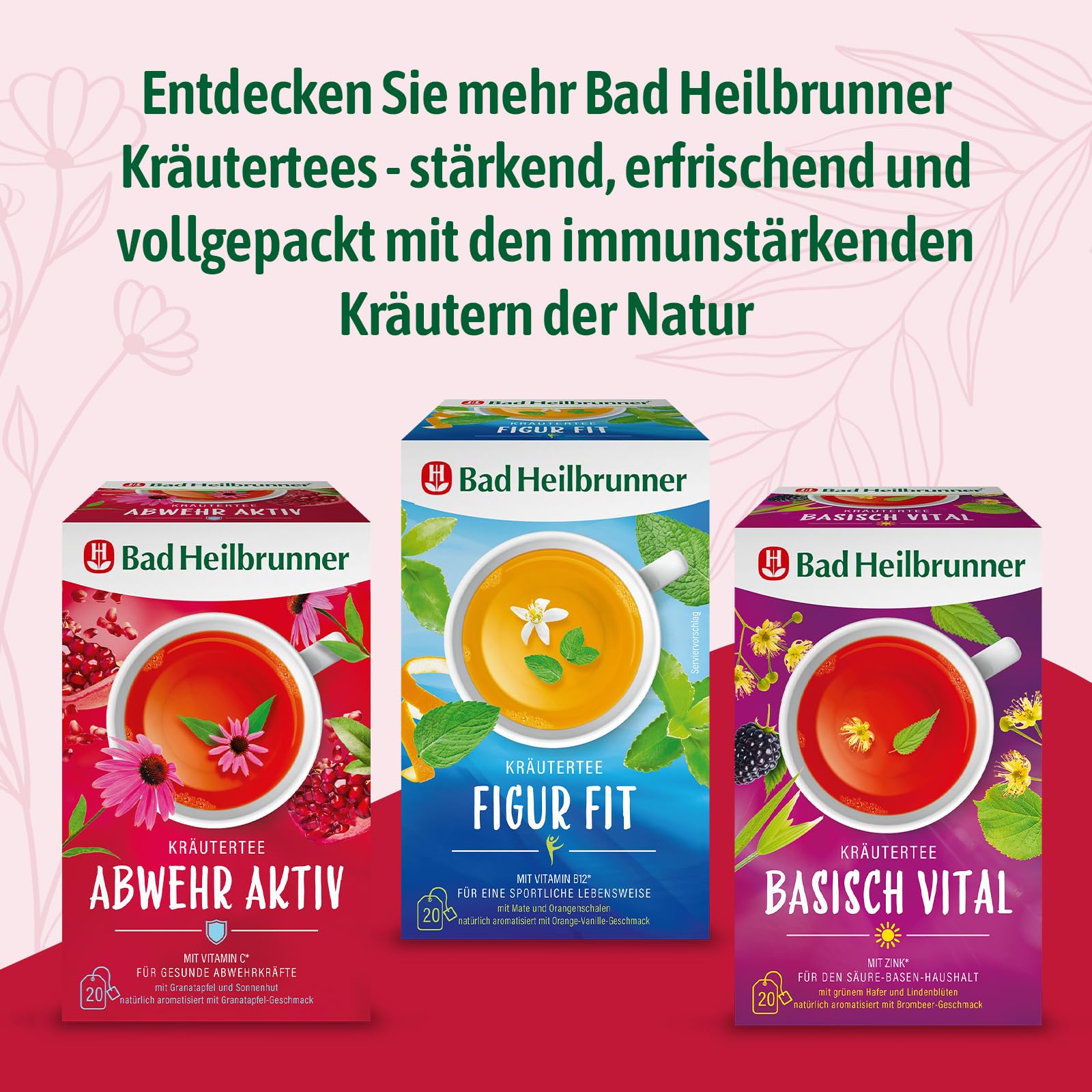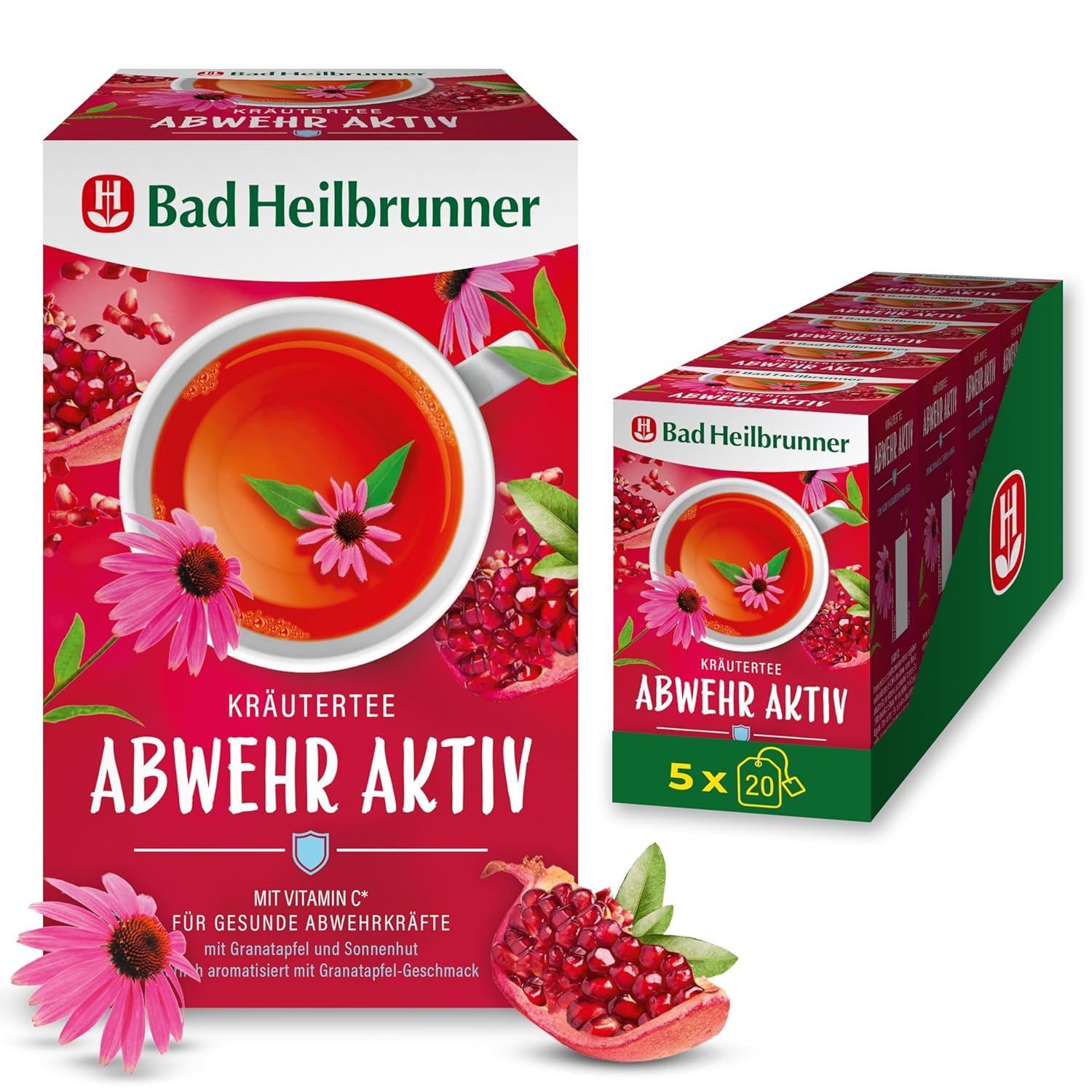 Bad Heilbrunner Abwehr Aktiv Kräutertee – Mit Vitamin C zur Unterstützung des Immunsystems, Hibiskus, Orangenblättern und Zitronengras (5 x 20 Filterbeutel)