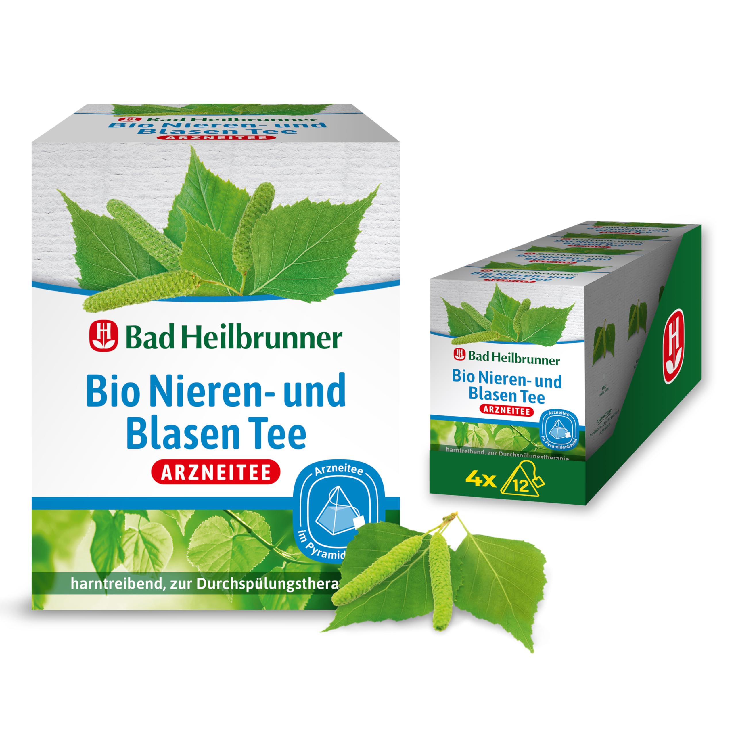 Bad Heilbrunner Bio Nieren- & Blasen Tee - Arzneitee im Pyramidenbeutel - Birkenblätter - bei Anzeichen einer Blasenentzündung - harntreibend - natürliche Linderung (4 x 12 Pyramidenbeutel)