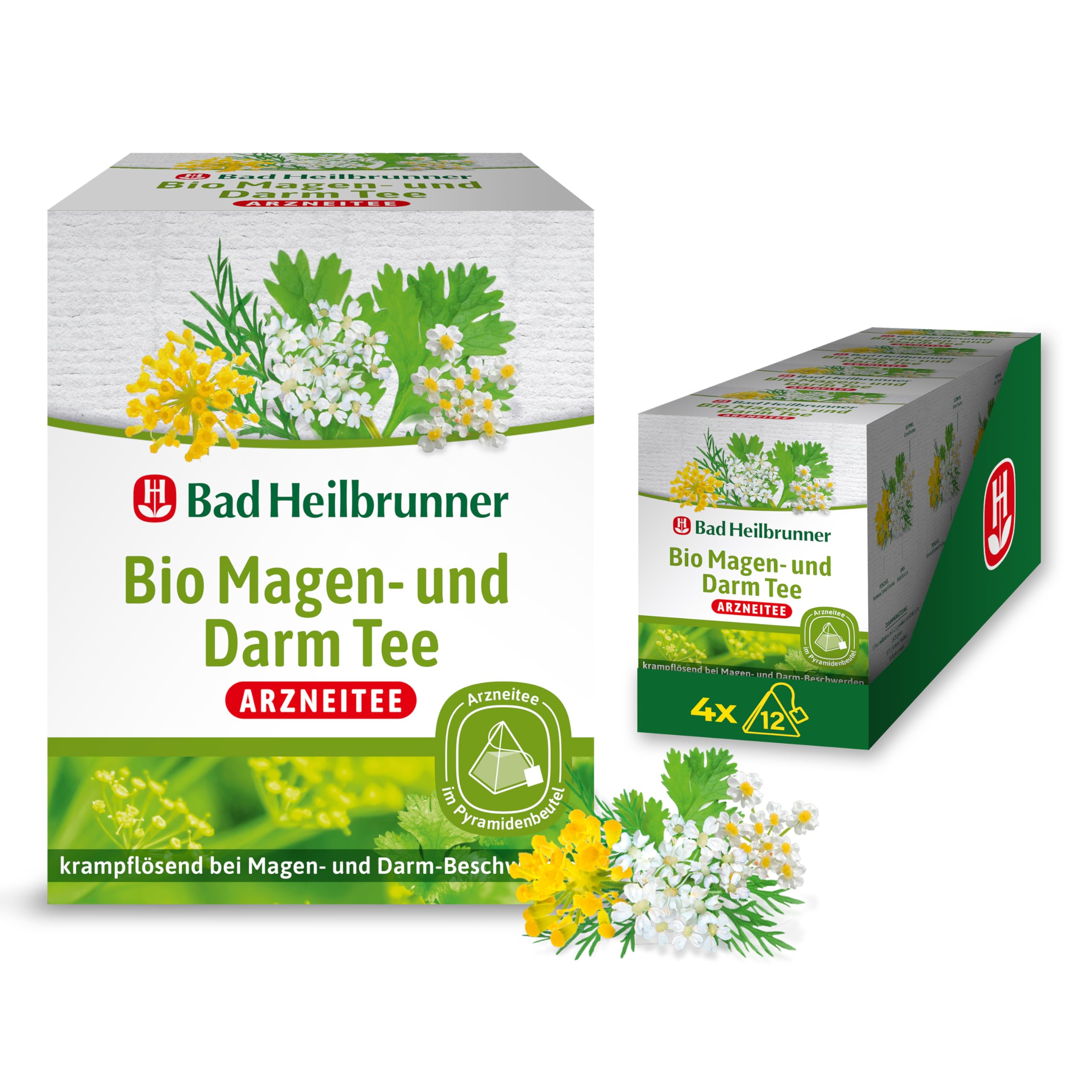 Bad Heilbrunner Bio Magen- & Darm Tee - Arzneitee im Pyramidenbeutel - Anis, Bitterer Fenchel, Koriander, Kümmel - krampflösend bei Magen- & Darm-Beschwerden (4 x 12 Pyramidenbeutel)