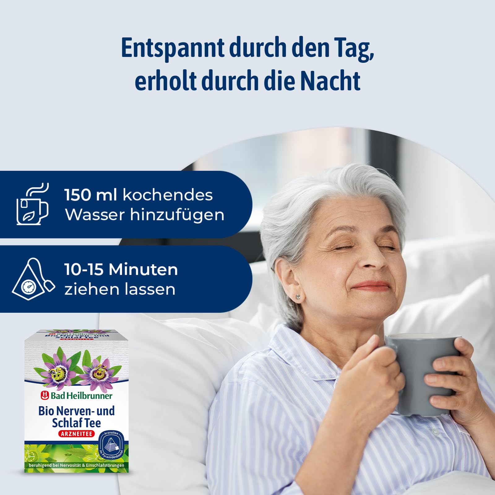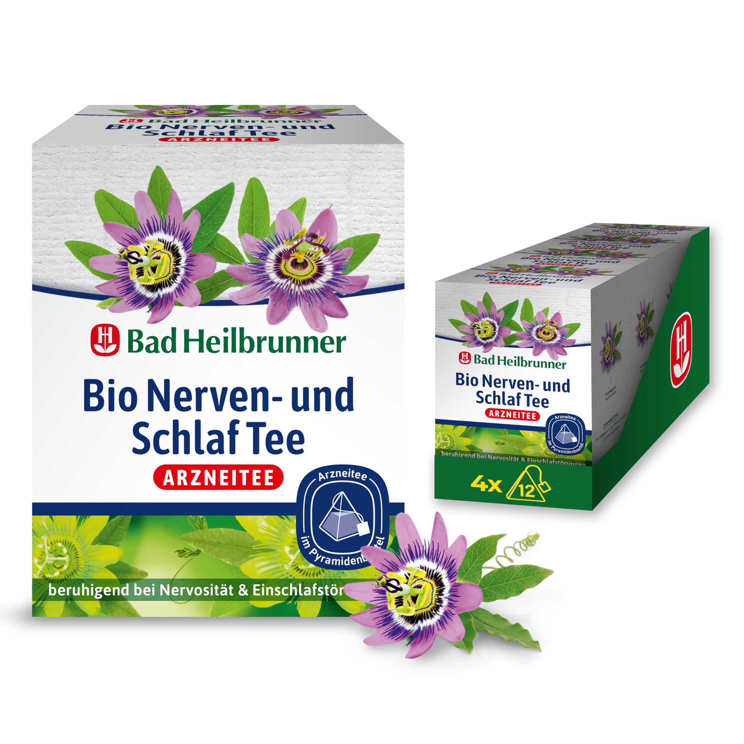 Bad Heilbrunner Bio Nerven- & Schlaftee - im Pyramidenbeutel - Melisse, Lavendel & Hopfen - beruhigt bei Nervosität & Einschlafstörung - für überreizte Nervenbündel (4 x 12 Pyramidenbeutel)