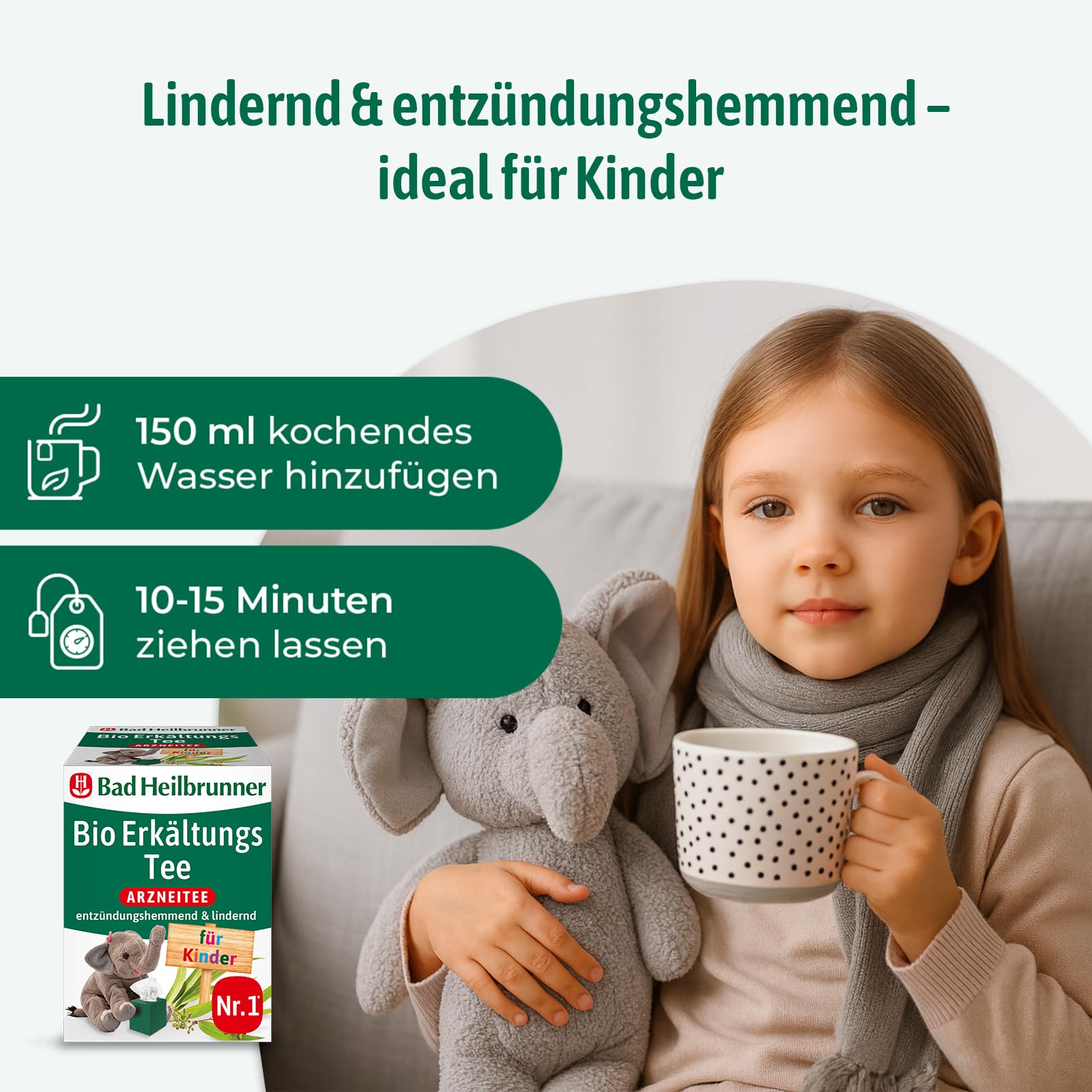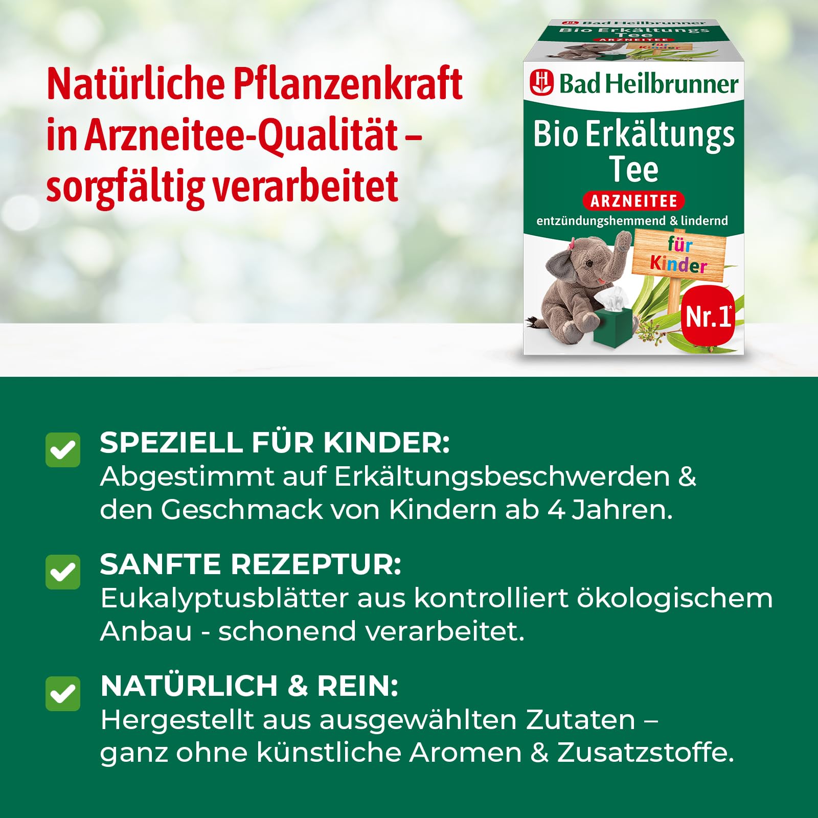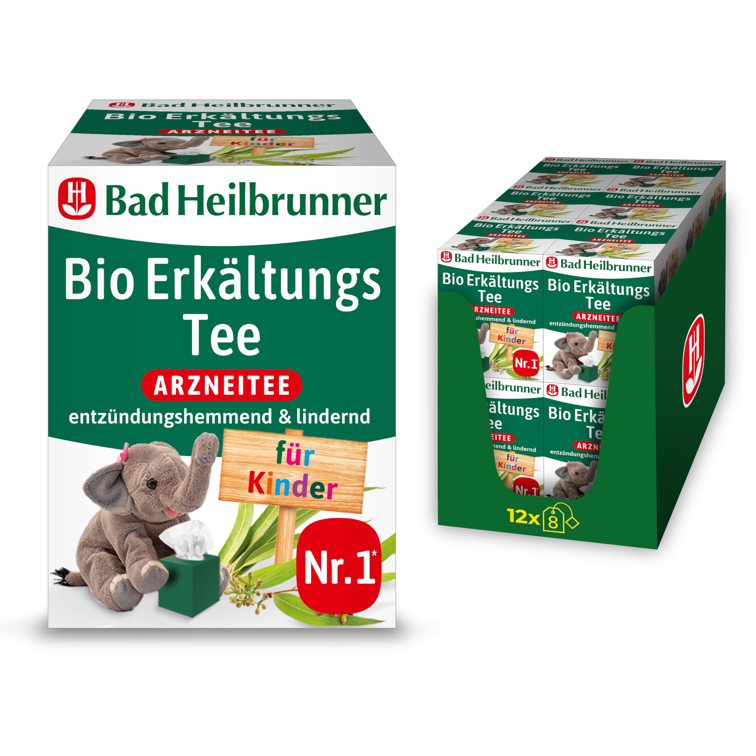 Bad Heilbrunner Bio Erkältungs Tee für Kinder – Arzneitee mit Eucalyptusblättern zur Unterstützung bei Erkältungskrankheiten der Atemwege, (12 x 8 Filterbeutel)