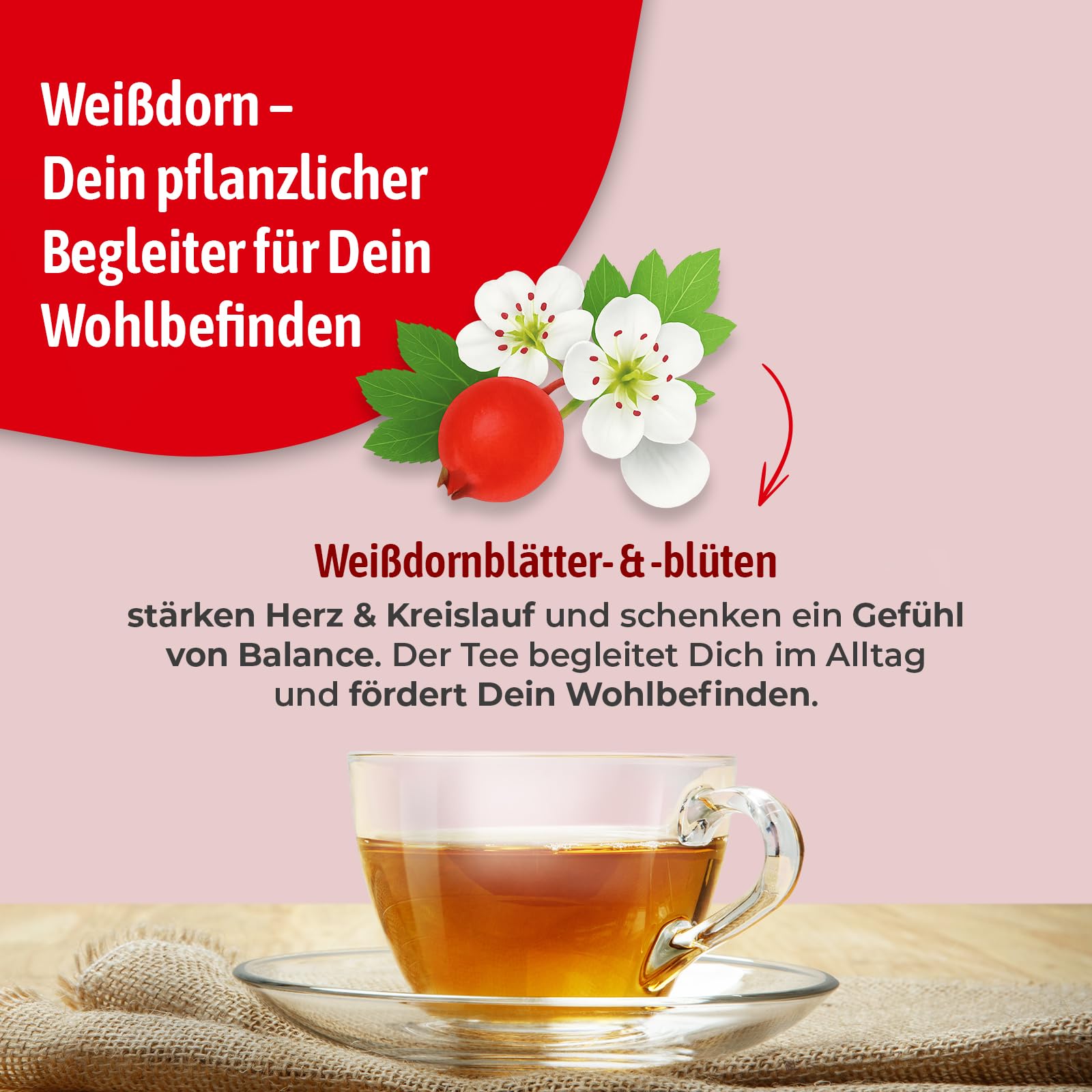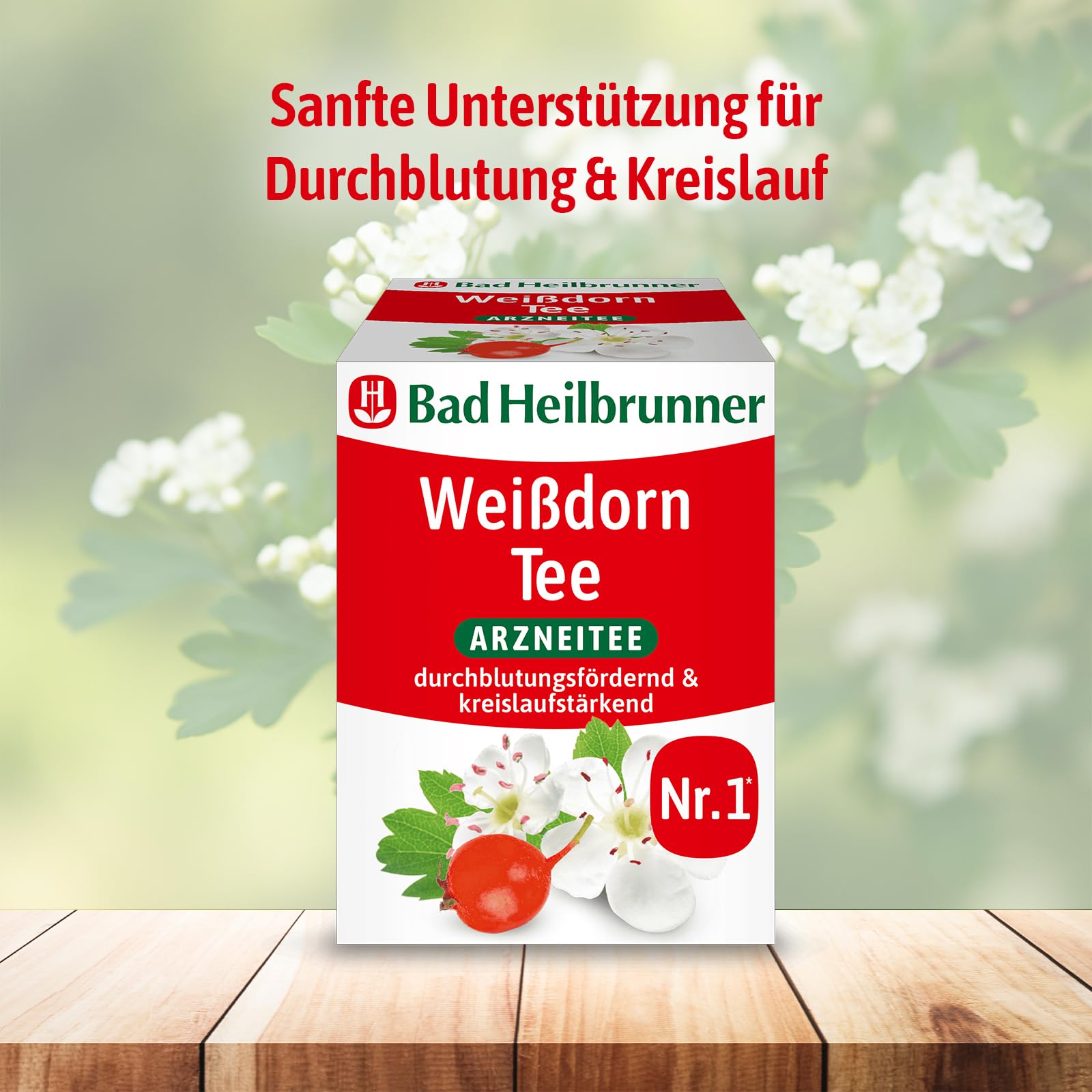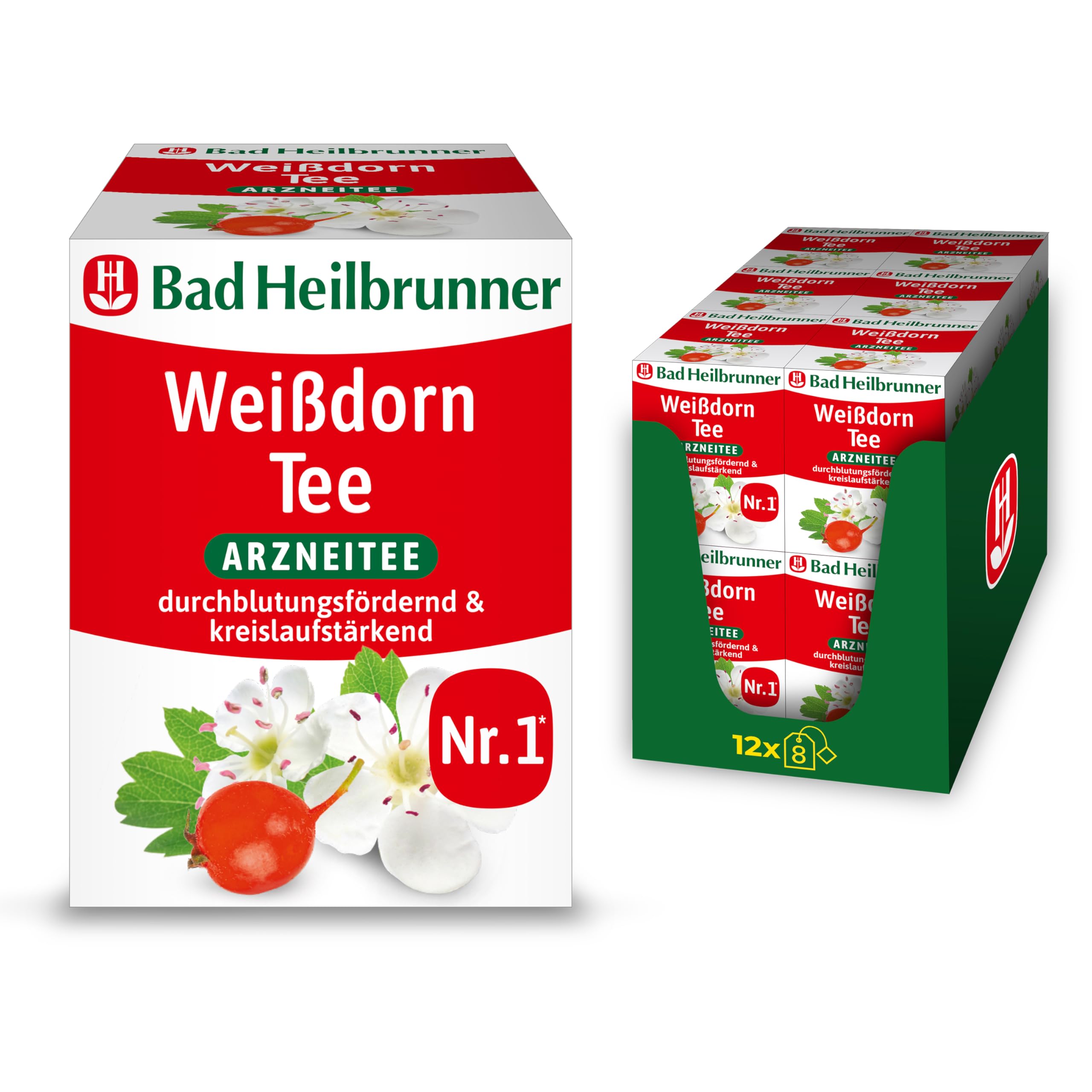 Bad Heilbrunner Weissdorn Tee - Arzneitee im Filterbeutel - Weissdornblätter & -blüten - Herzstärker aus Tradition - durchblutungsfördernd & kreislauffördernd (12 x 8 Filterbeutel)