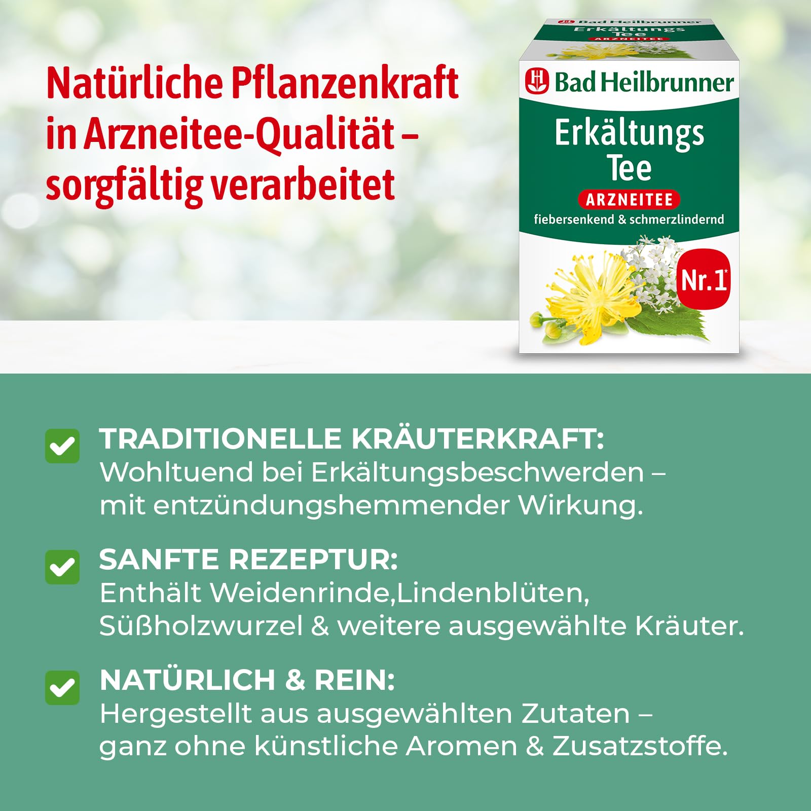 Bad Heilbrunner Erkältungstee - Arzneitee im Filterbeutel - Eukalyptus - lindernd & entzündungshemmend bei Erkältungen, Husten oder Schnupfen (12 x 8 Filterbeutel)