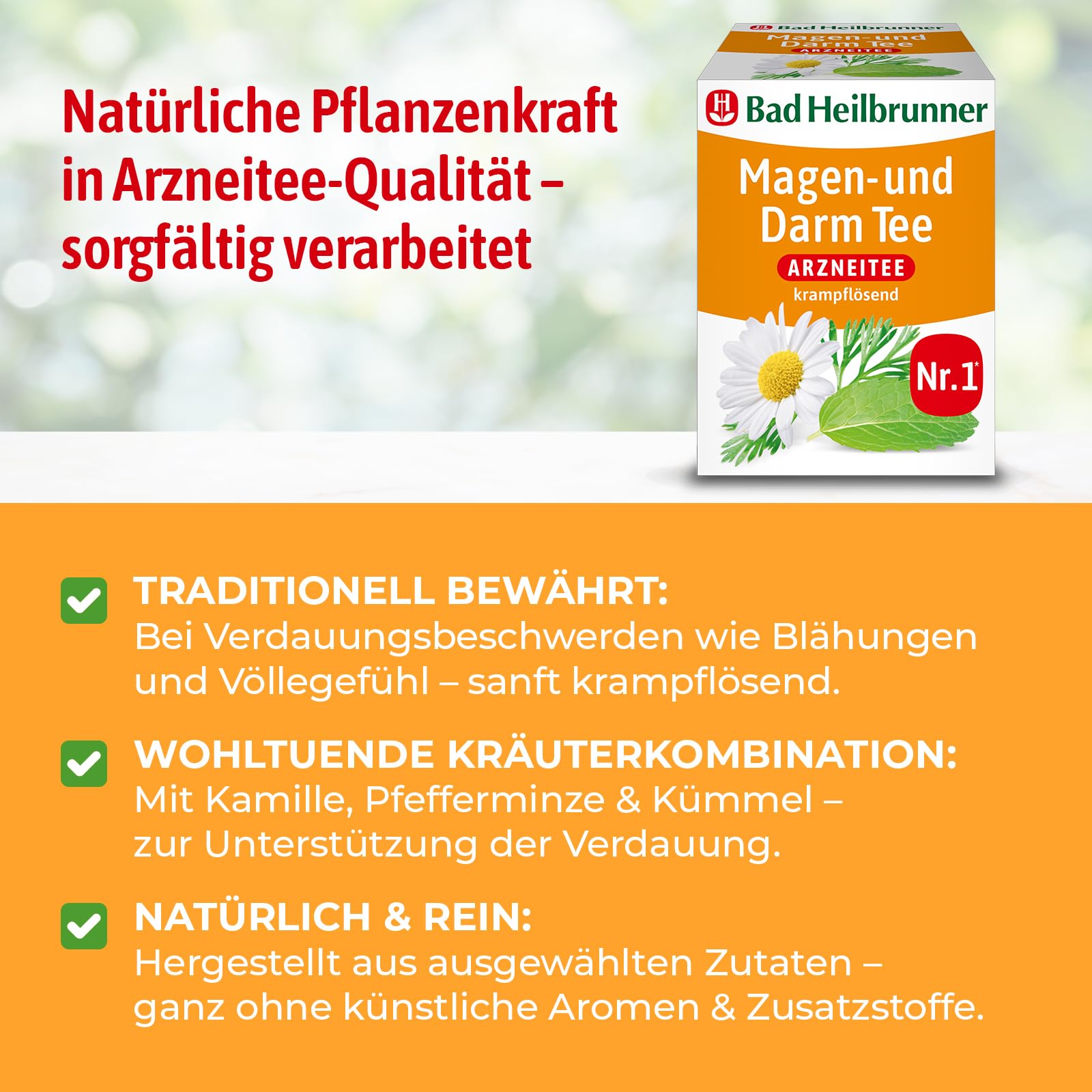 Bad Heilbrunner Magen- & Darm Tee - Arzneitee im Filterbeutel- Anis, Bitterer Fenchel, Koriander, Kümmel - krampflösend bei Magen- & Darm-Beschwerden (12 x 8 Filterbeutel)