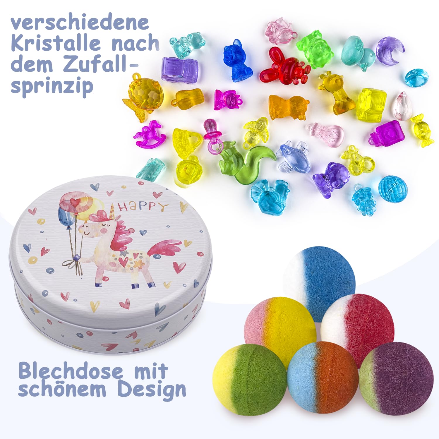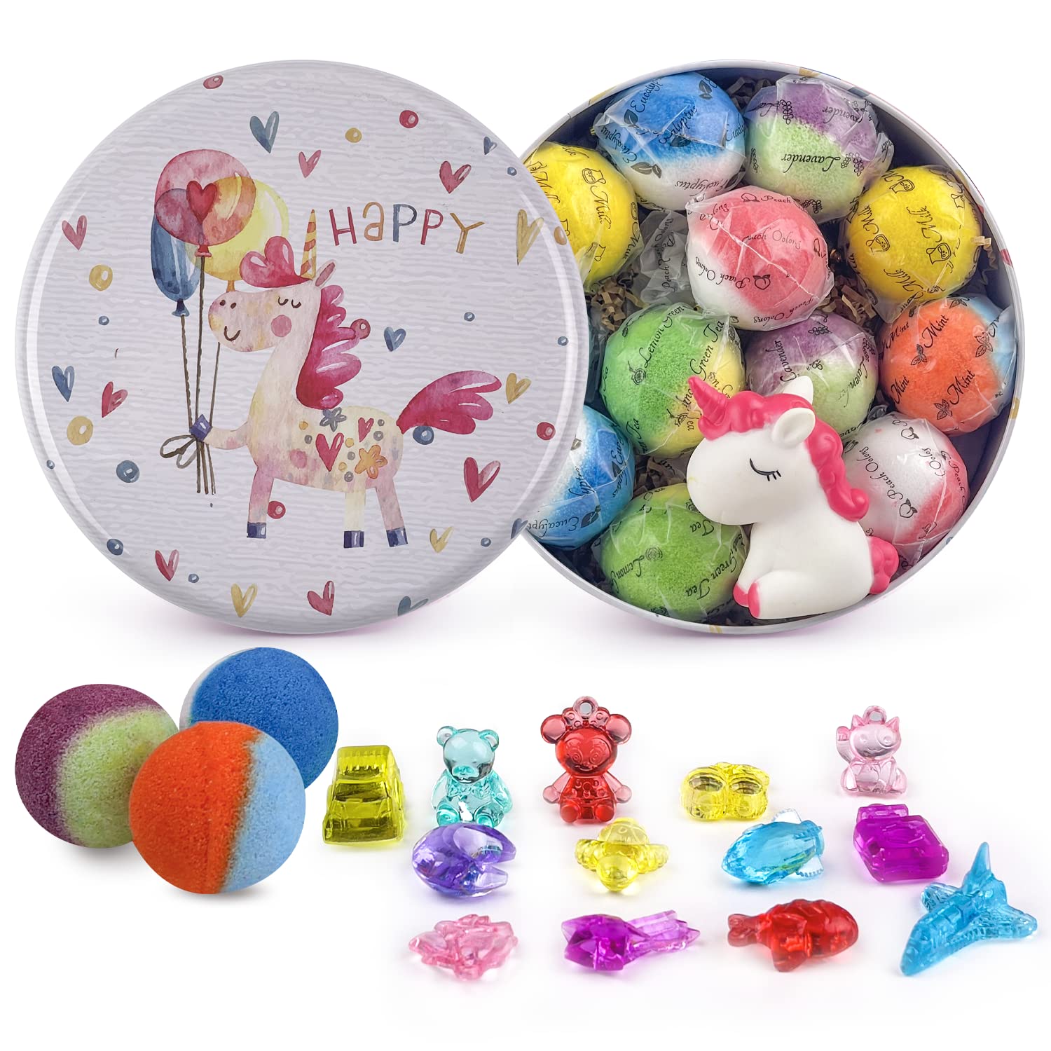 Badebomben für Kinder, 12pcs Badebomben mit Überraschungskristallspielzeug im Inneren, handgefertigte natürliche und organische Schaumbadebomben, Geburtstagsgeschenk für Mädchen und Jungen