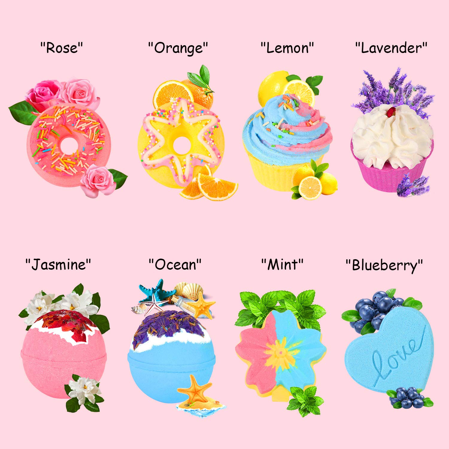 Badebomben Geschenkset,8 Stück Badebomben für Frauen.Organische natürliche handgemachte Aroma-reine ätherische Öl-Schaumbad-Kugeln.Geburtstagsgeschenkidee für Mädchen, Frauen, Kinder