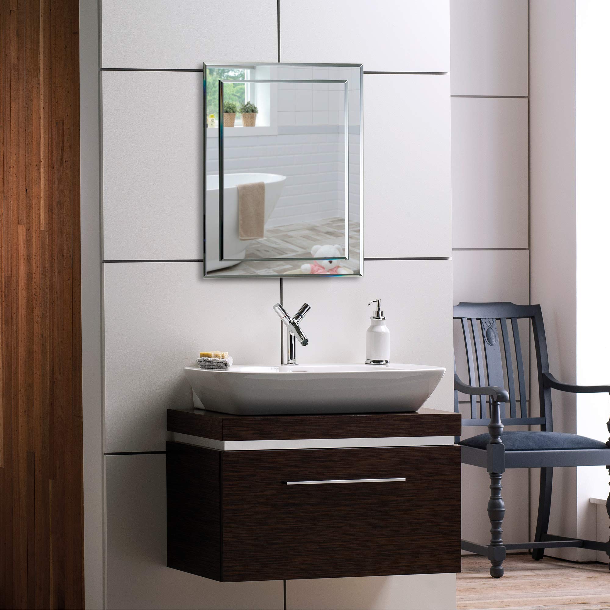Neue Design Schöner rechteckiger Badezimmerspiegel, modern und stylish, 2 Lagen Glass, mit abgerundeten Kanten, Wandbefestigung, Badspiegel, Wandspiegel, Spiegel 50cm x 40cm