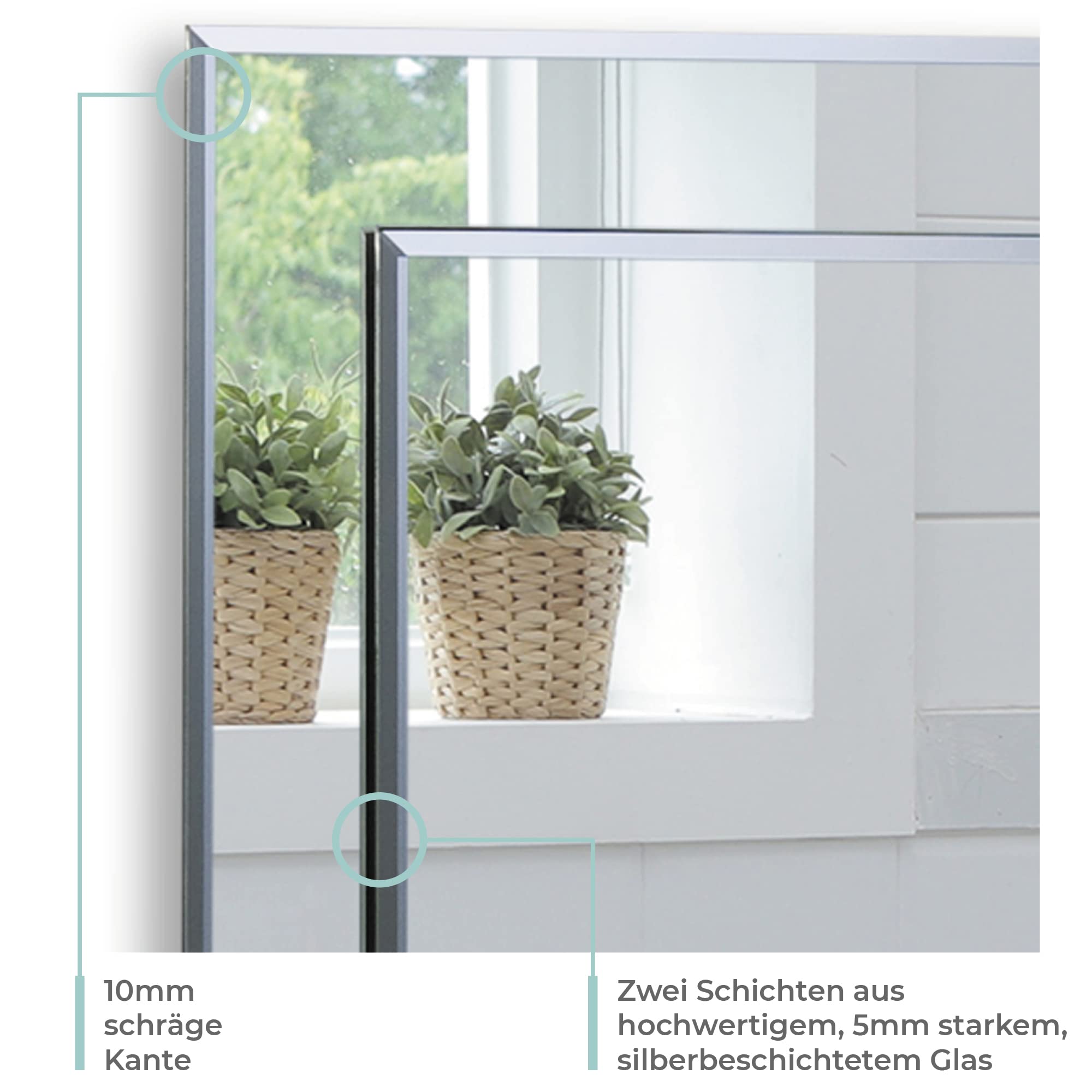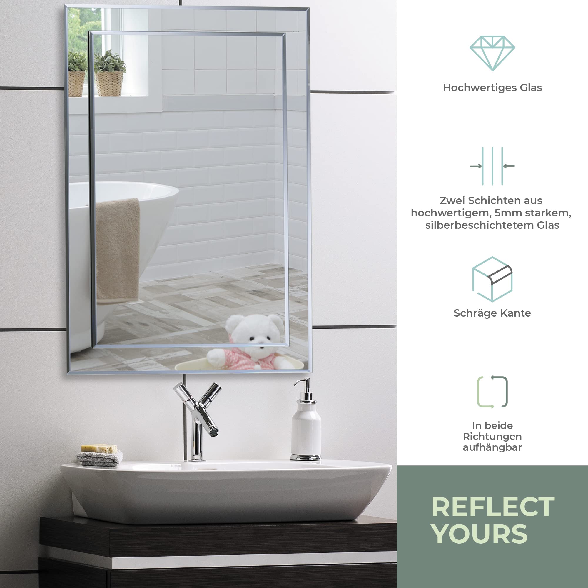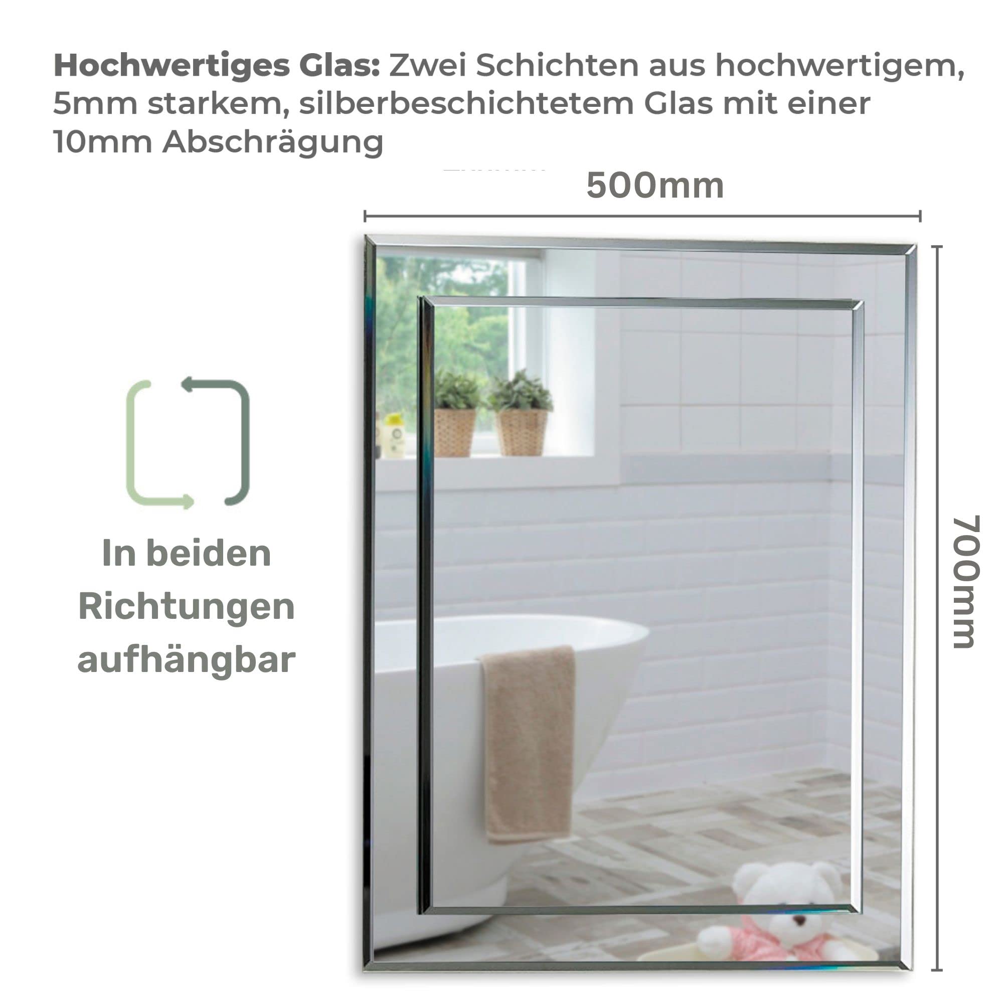 Badezimmerspiegel, Badspiegel, Wandspiegel, Spiegel, Zwei Schichten aus Glas rechteckig - Schöne Qualität Spiegel für Ihr Bad, Schlafzimmer, Halle oder andere Räume in Ihrem Zuhause - 70cm x 50cm