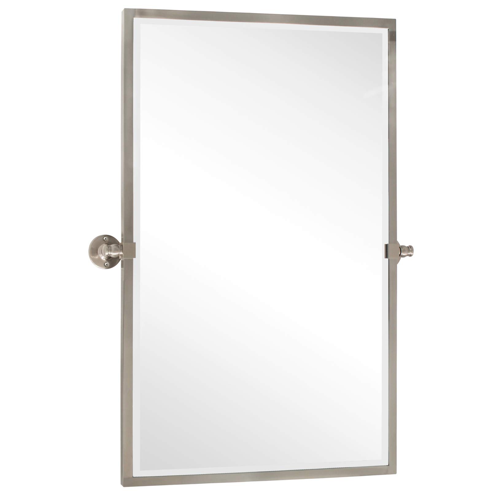 TEHOME Badezimmer-Spiegel aus gebürstetem Nickel mit Metallrahmen, rechteckig, schwenkbar, 72,4 x 91,4 cm