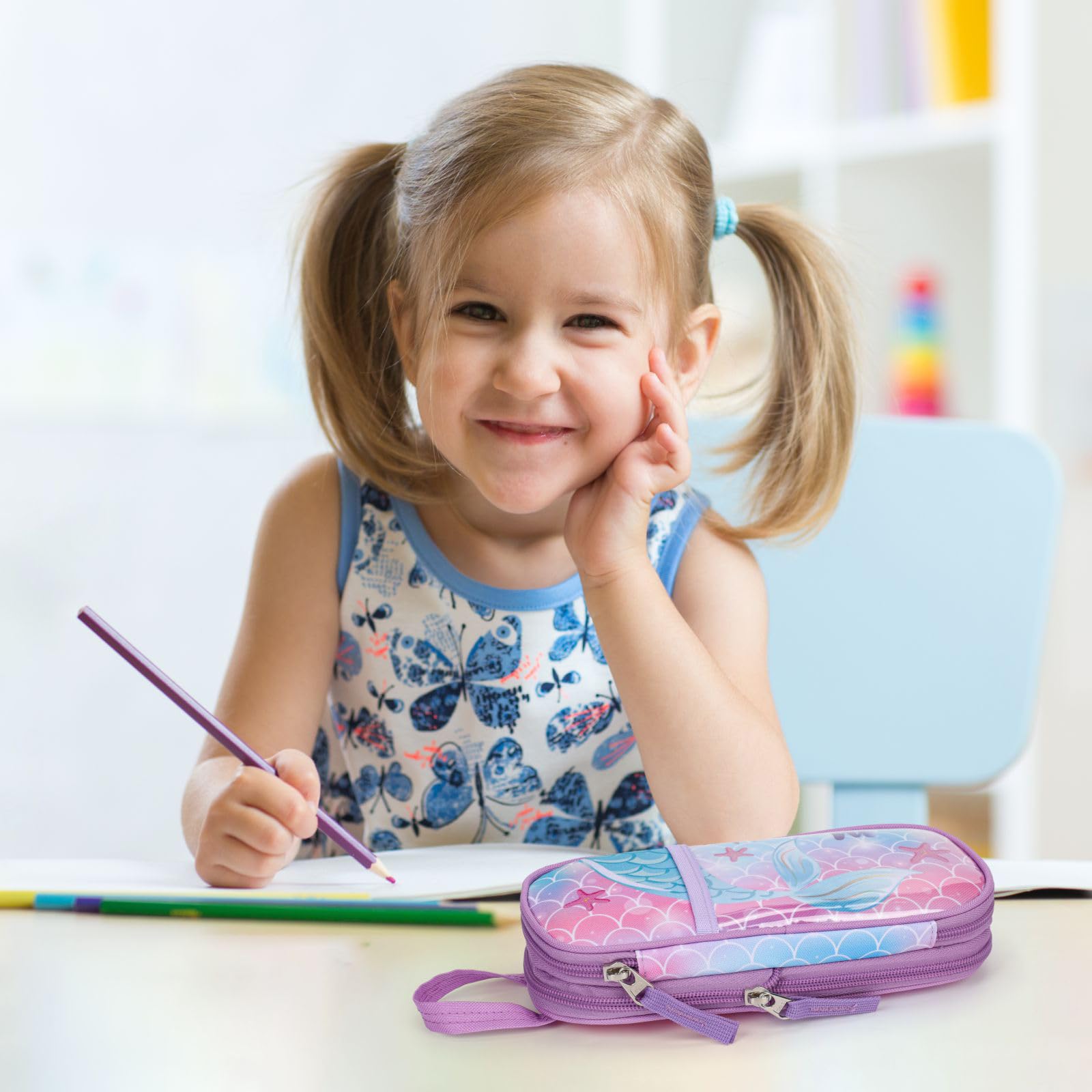 Bagseri Erweiterbar Federmäppchen Mädchen - Grosse Kapazität Mäppchen Mädchen für Schule, Niedlich Federmäppchen für Kinder, Nur Federtasche (Lila Traumhafte Meerjungfrau)