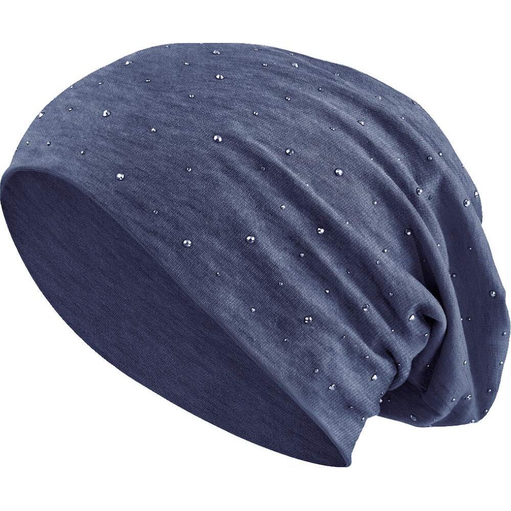 Balinco Long Slouch Beanie für Damen, Herren & Teens mit Strass Nieten, Weiche 100 % Baumwoll-Jersey Mütze, Elastische Einheitsgrösse im Heather Style Winter mütze