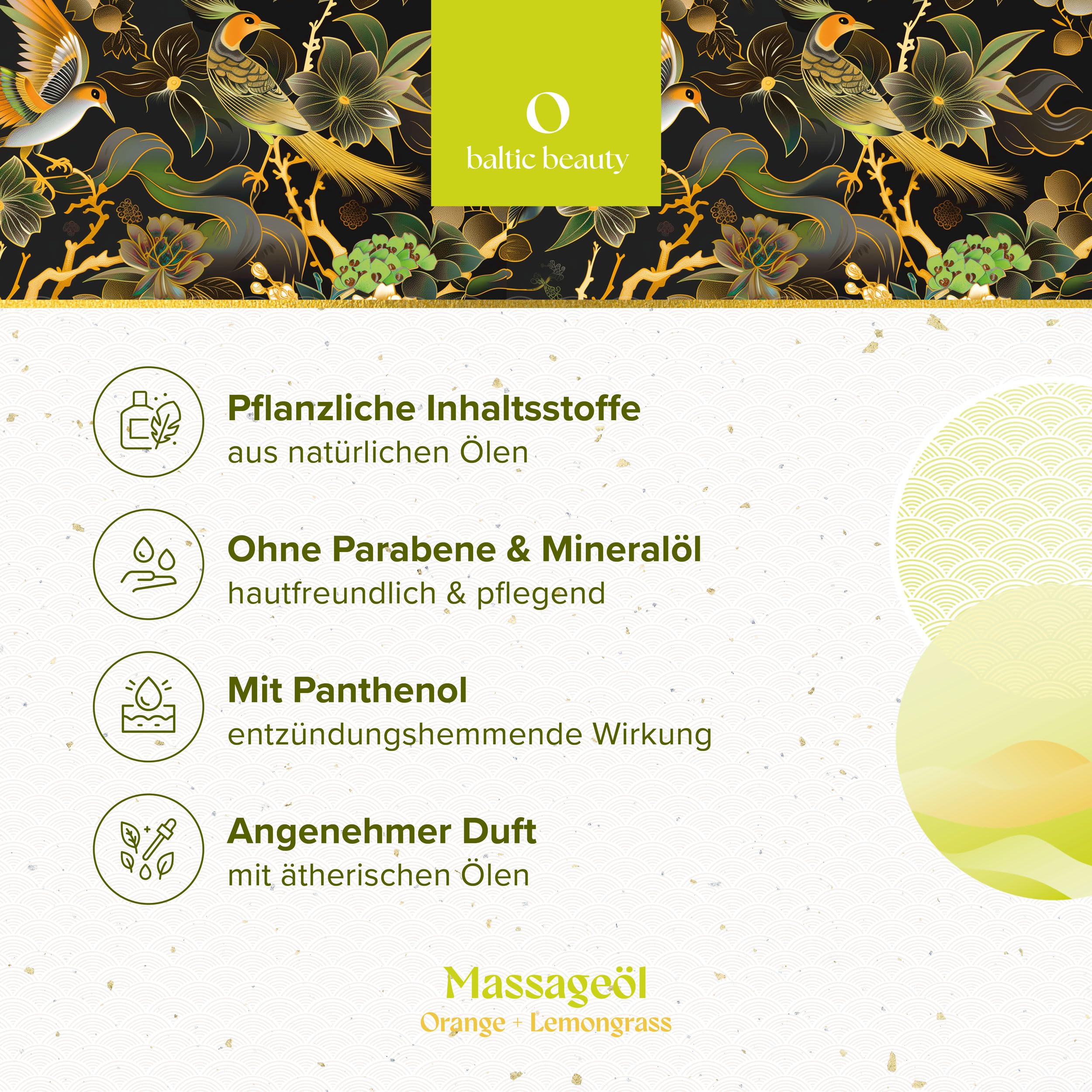 Baltic Beauty Exklusives Massageöl - Orange Lemongrass - Aromatisches Massageöl für sinnliche Massagen mit frischem Duft und pflegenden, natürlichen Inhaltsstoffen