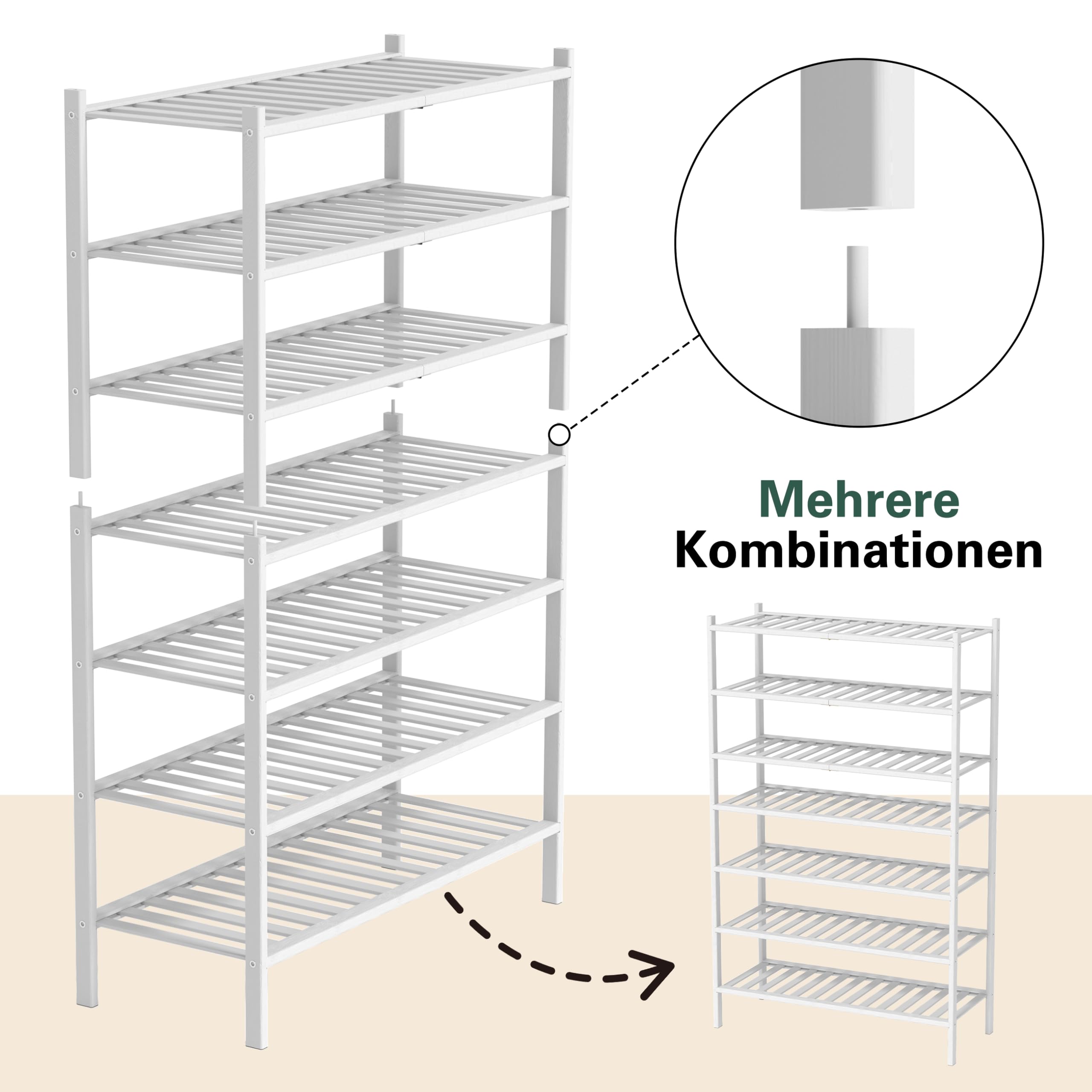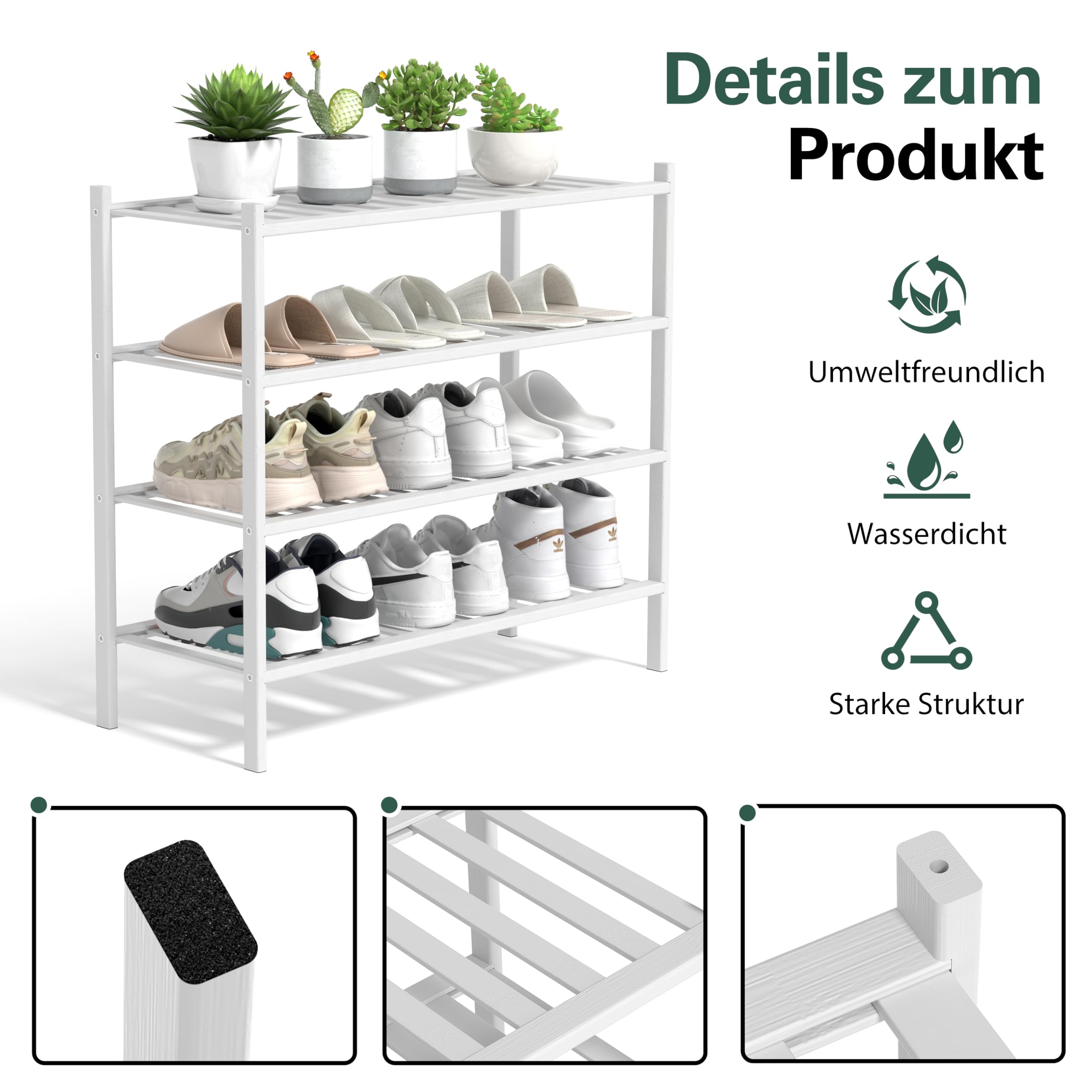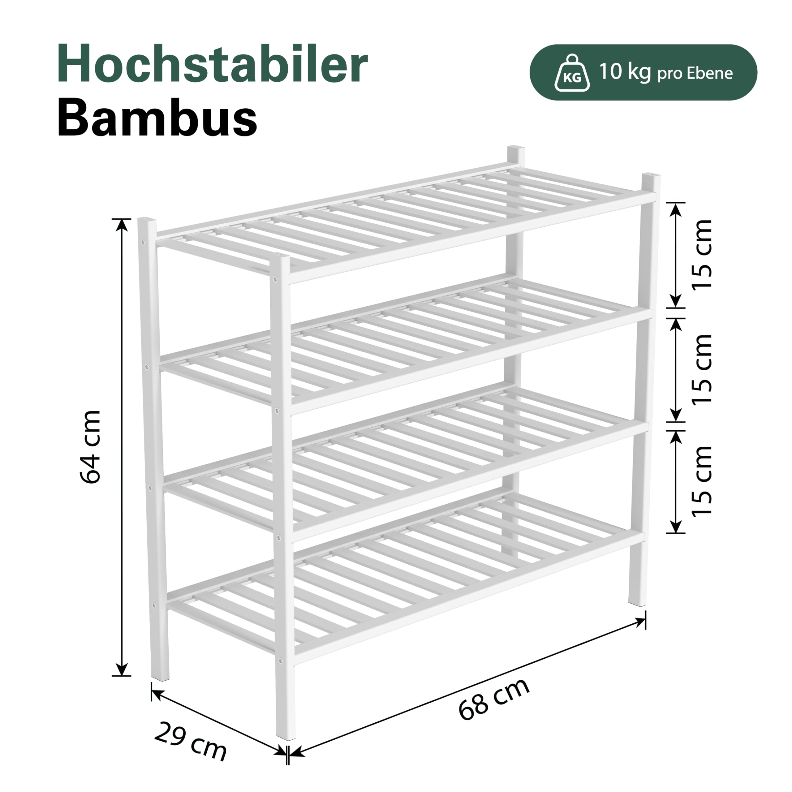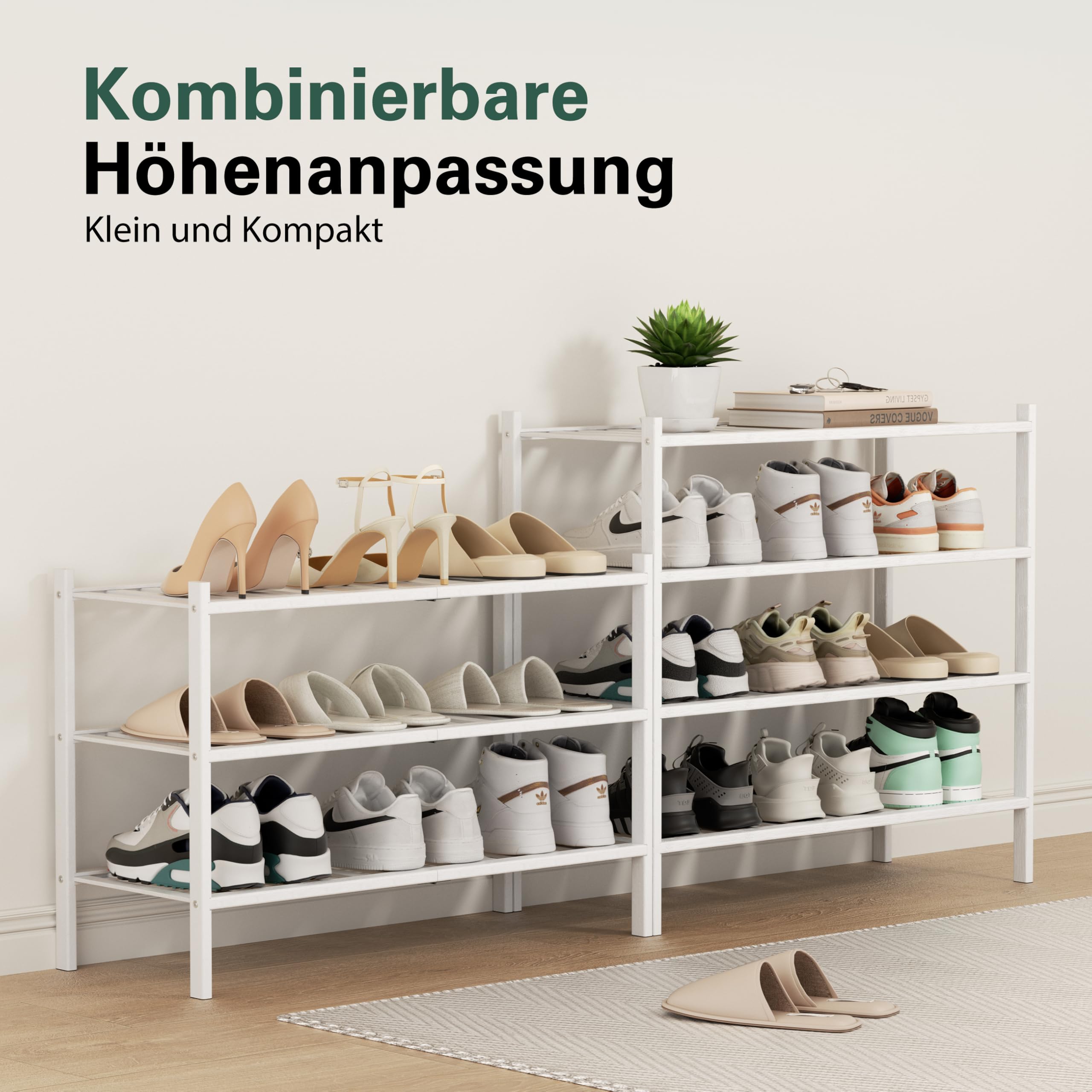 BAM BOO BOX - Schuhregal aus Bambus, Schuhablage mit 4 Ebenen, 68 x 28 x 64 cm, Erweiterbar Stapelbar, Schuhschrank Holz, Shoe Rack, Regal für Wohnzimmer oder Flur (Weiss)
