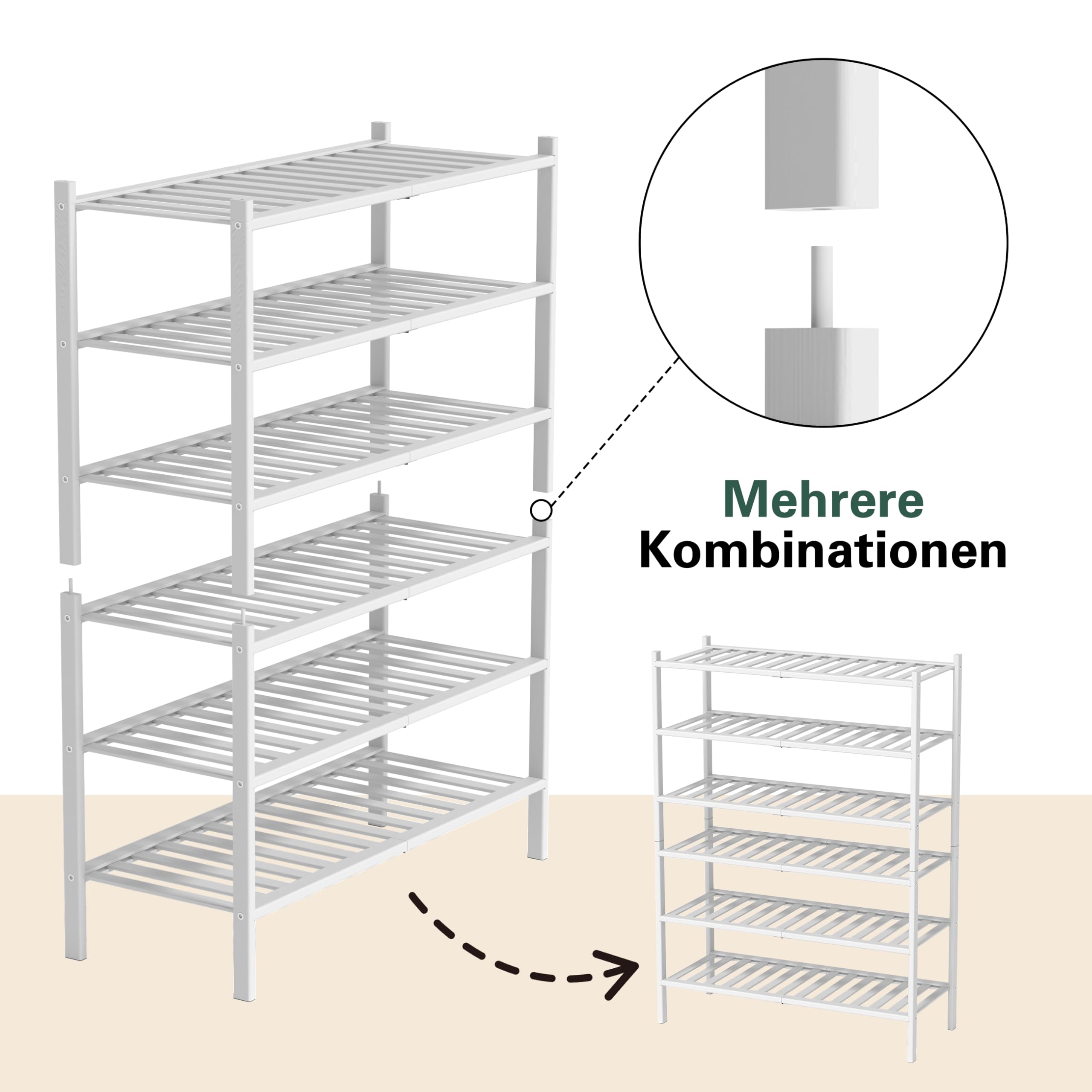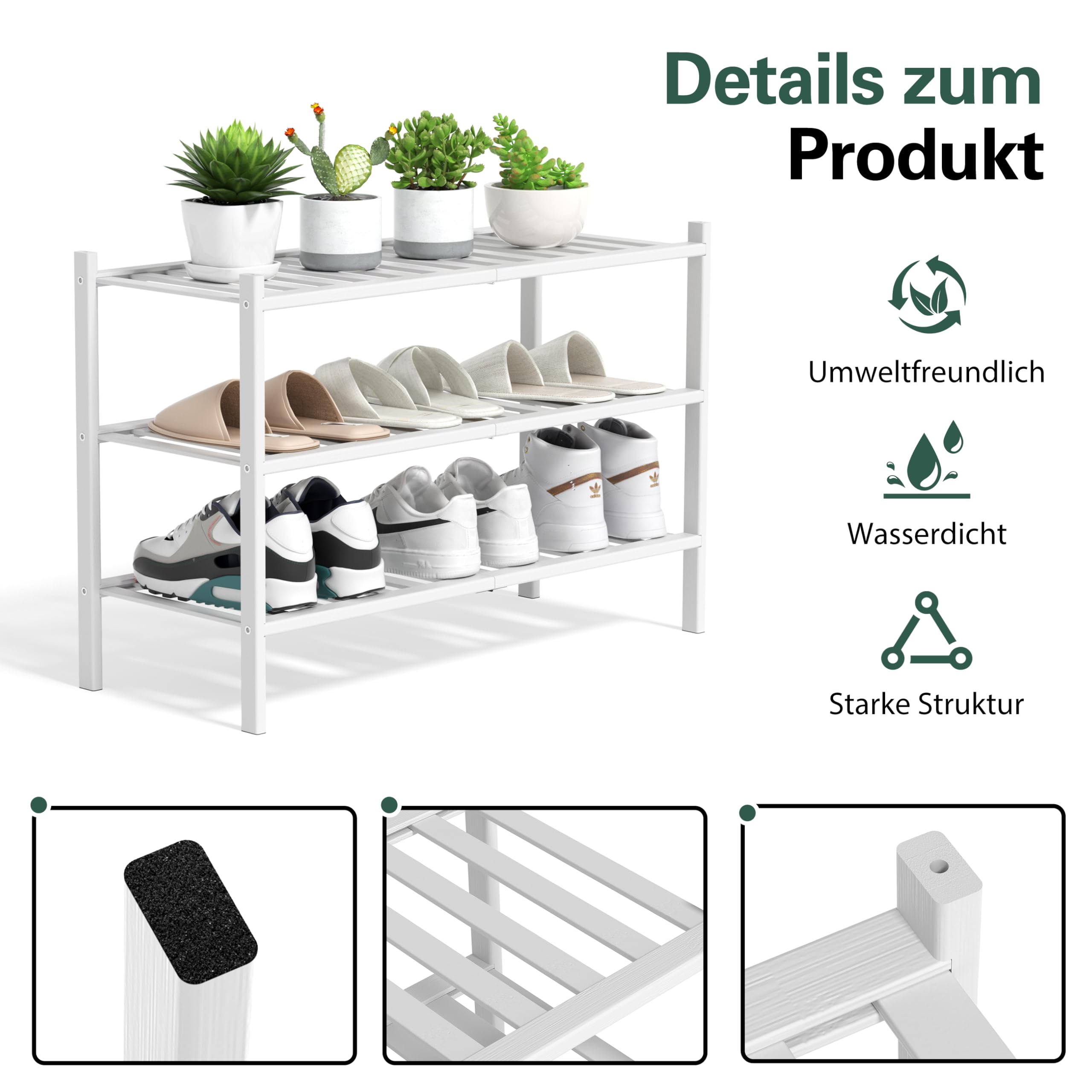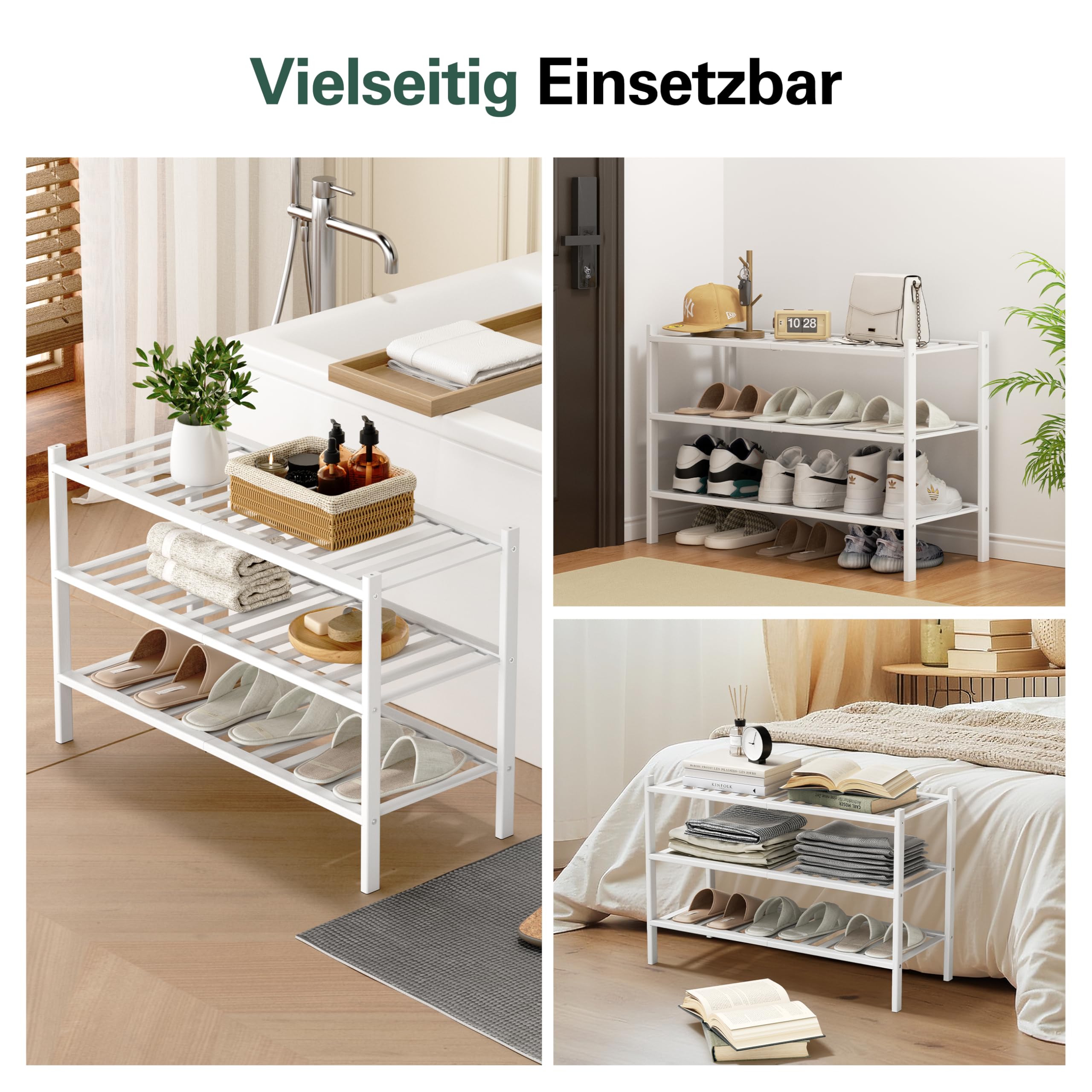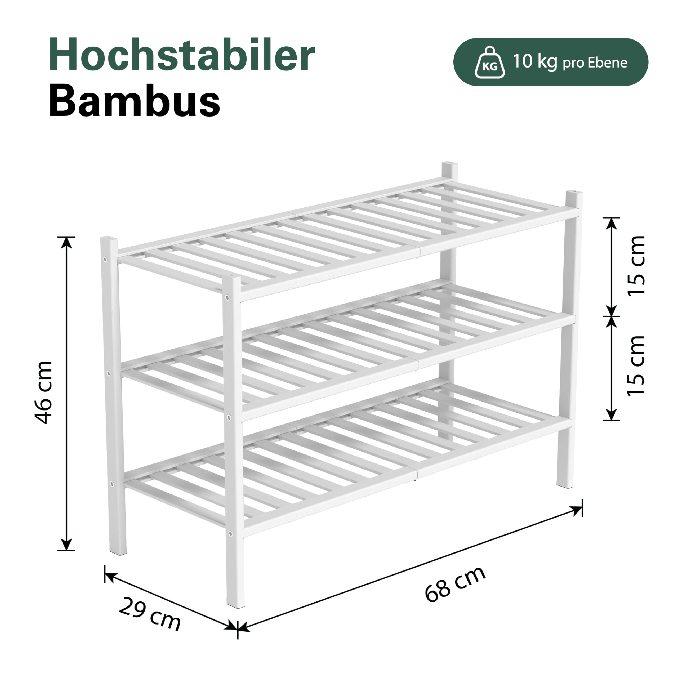 BAM BOO BOX - Schuhregal aus Bambus, Schuhablage mit 3 Ebenen, 68 x 28 x 46 cm, Erweiterbar Stapelbar, Schuhschrank Holz, Shoe Rack, Regal für Wohnzimmer oder Flur (Weiss)