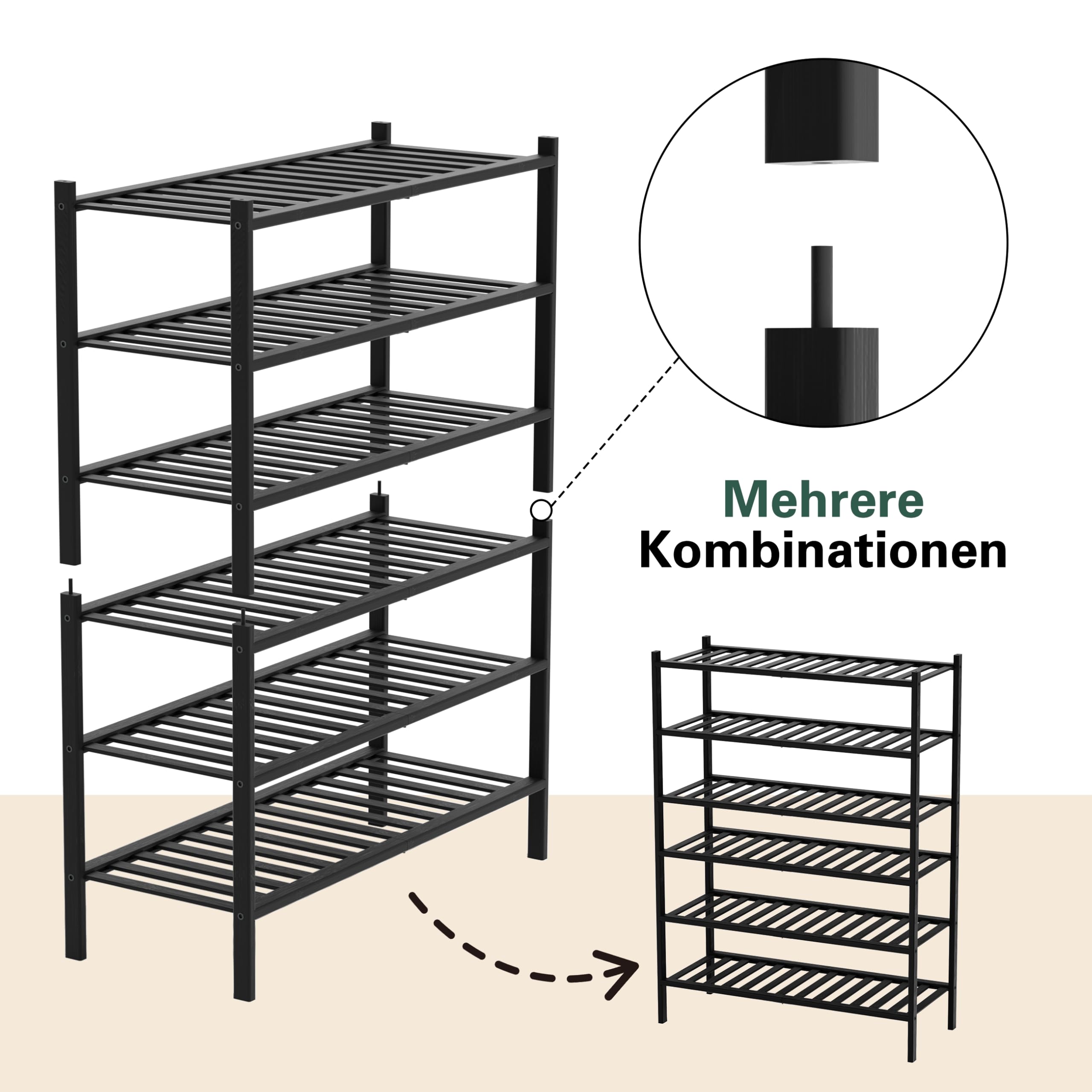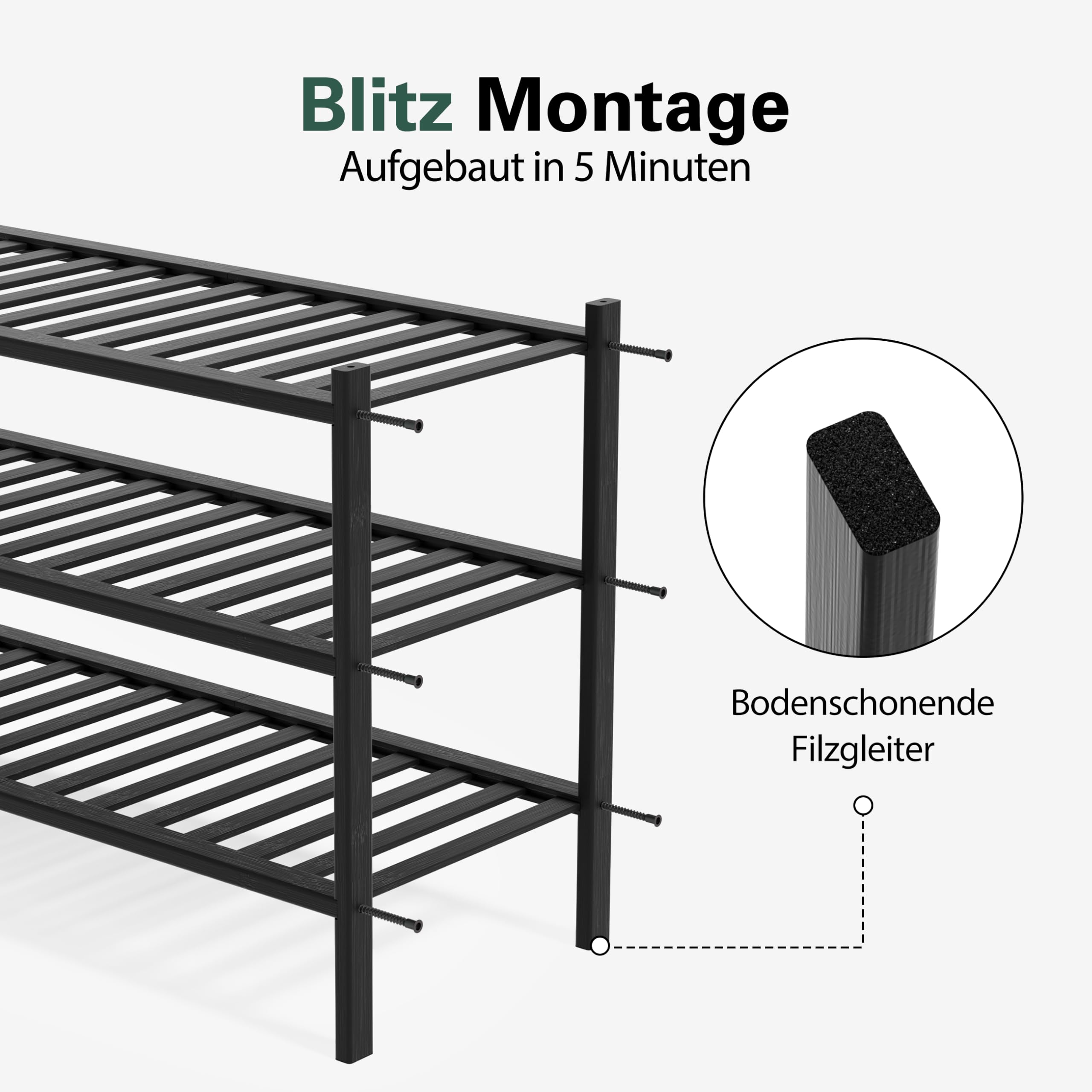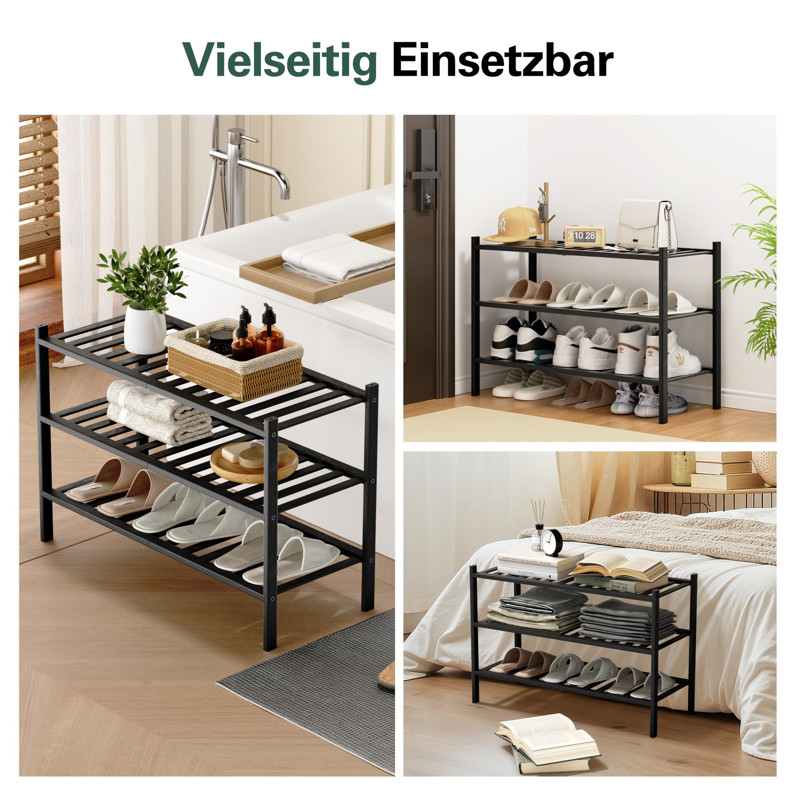 BAM BOO BOX - Schuhregal aus Bambus, Schuhablage mit 3 Ebenen, 68 x 28 x 46 cm, Erweiterbar Stapelbar, Schuhschrank Holz, Shoe Rack, Regal für Wohnzimmer oder Flur (Schwarz)