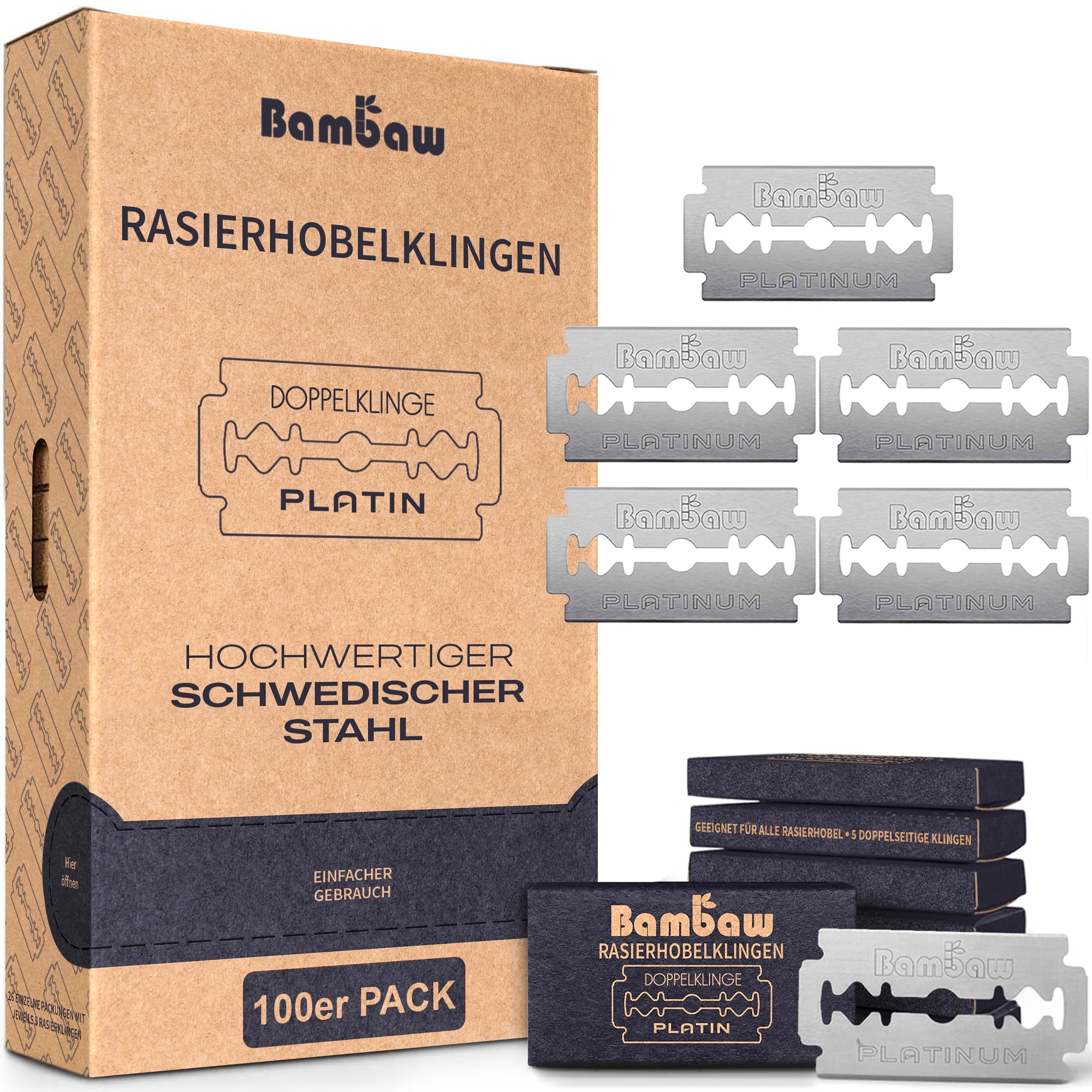 Rasierhobel Klingen | 100 universale Rasierklinge - Vorrat für 18 bis 24 Monate | Damen & Herren für Hobel & Rasierer | Double Edge Safety Razor Blades | Bambaw