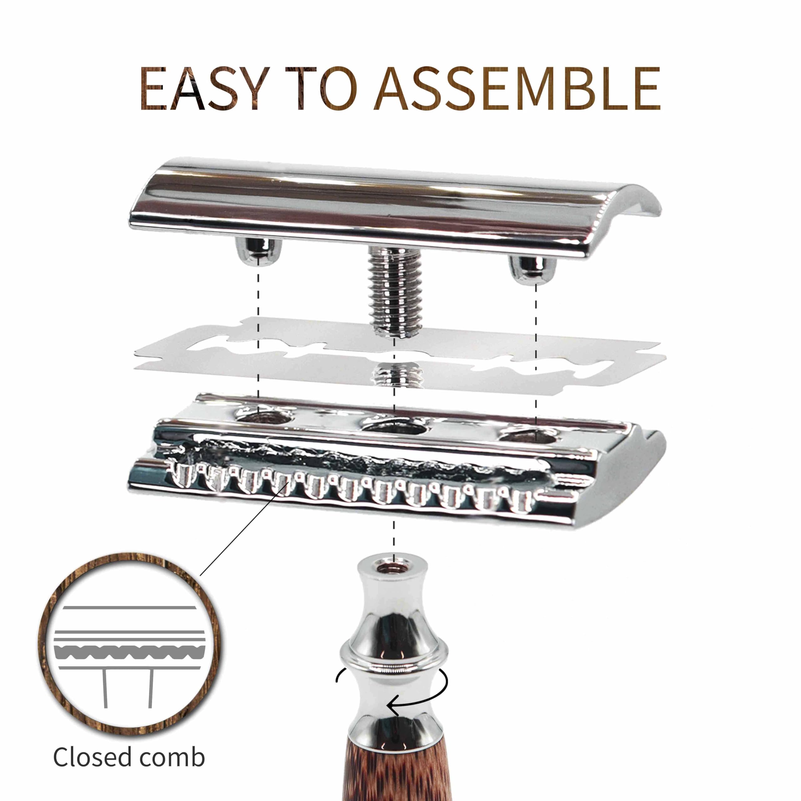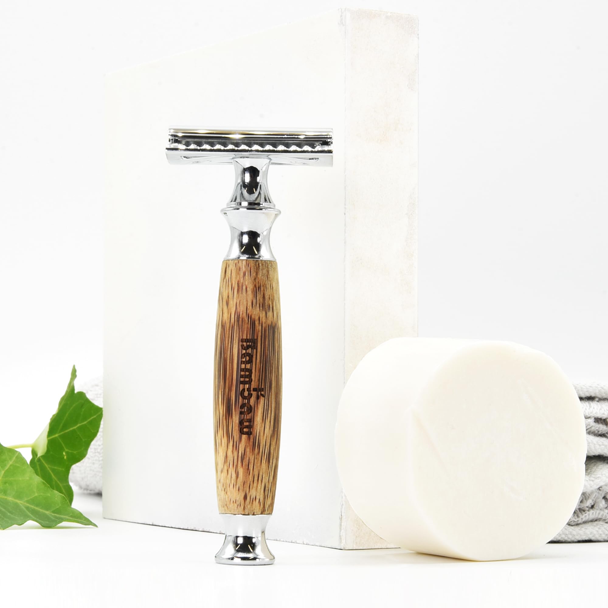 Bambaw Rasierhobel Männer & Frauen mit 5 Rasierklingen, Nassrasierer Rasiermesser Wiederverwendbar & Sicher, Für Eine Präzise & Glatte Rasur, Geeignet für Alle Hauttypen (Bambus Breit Silber)